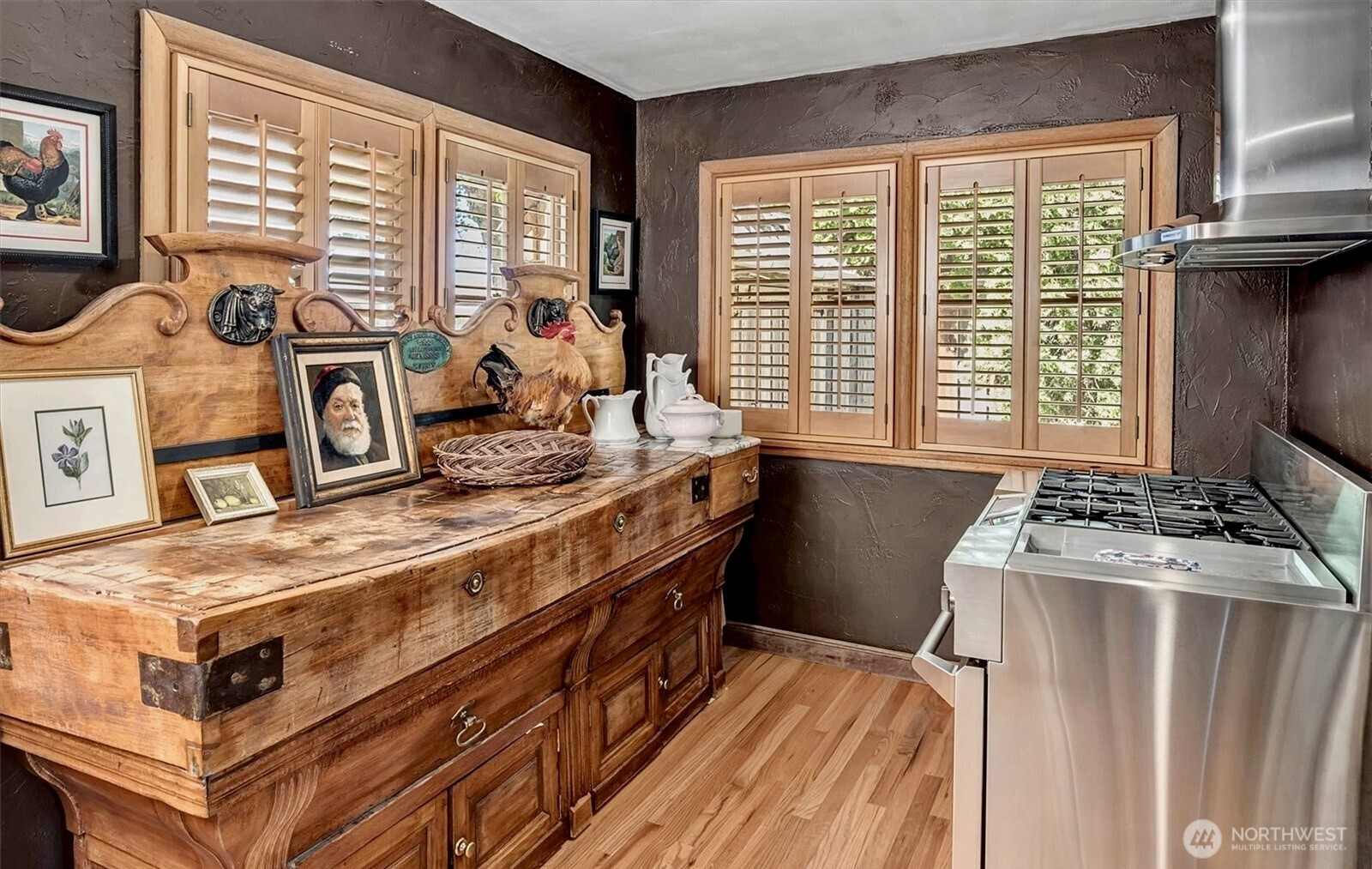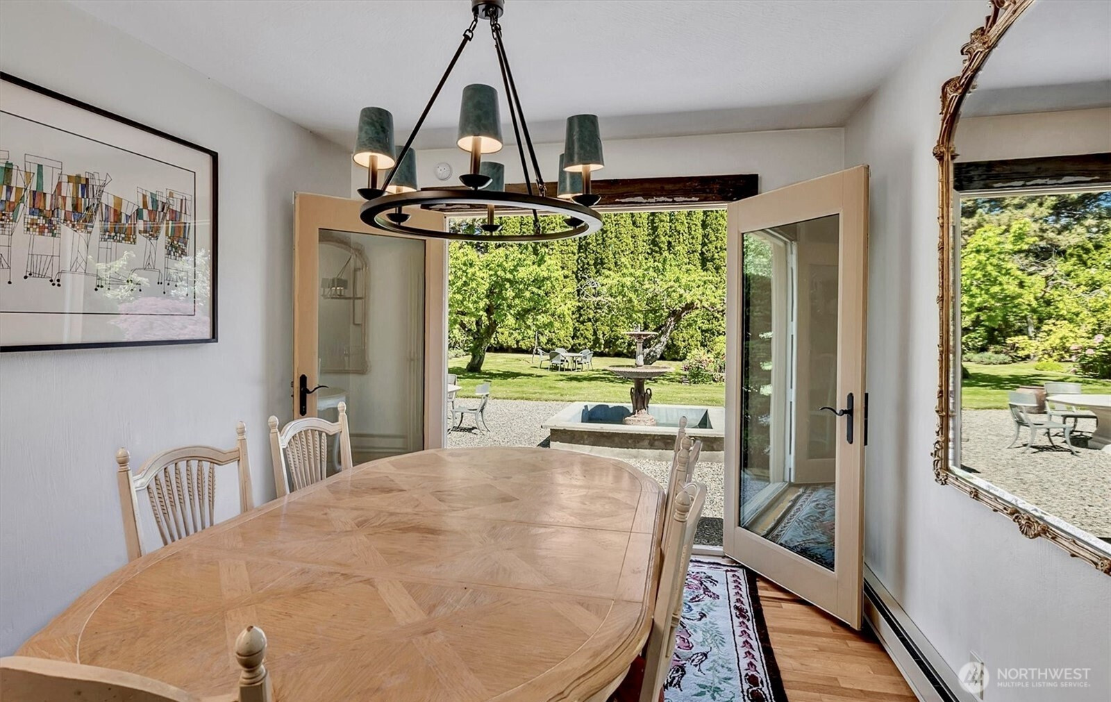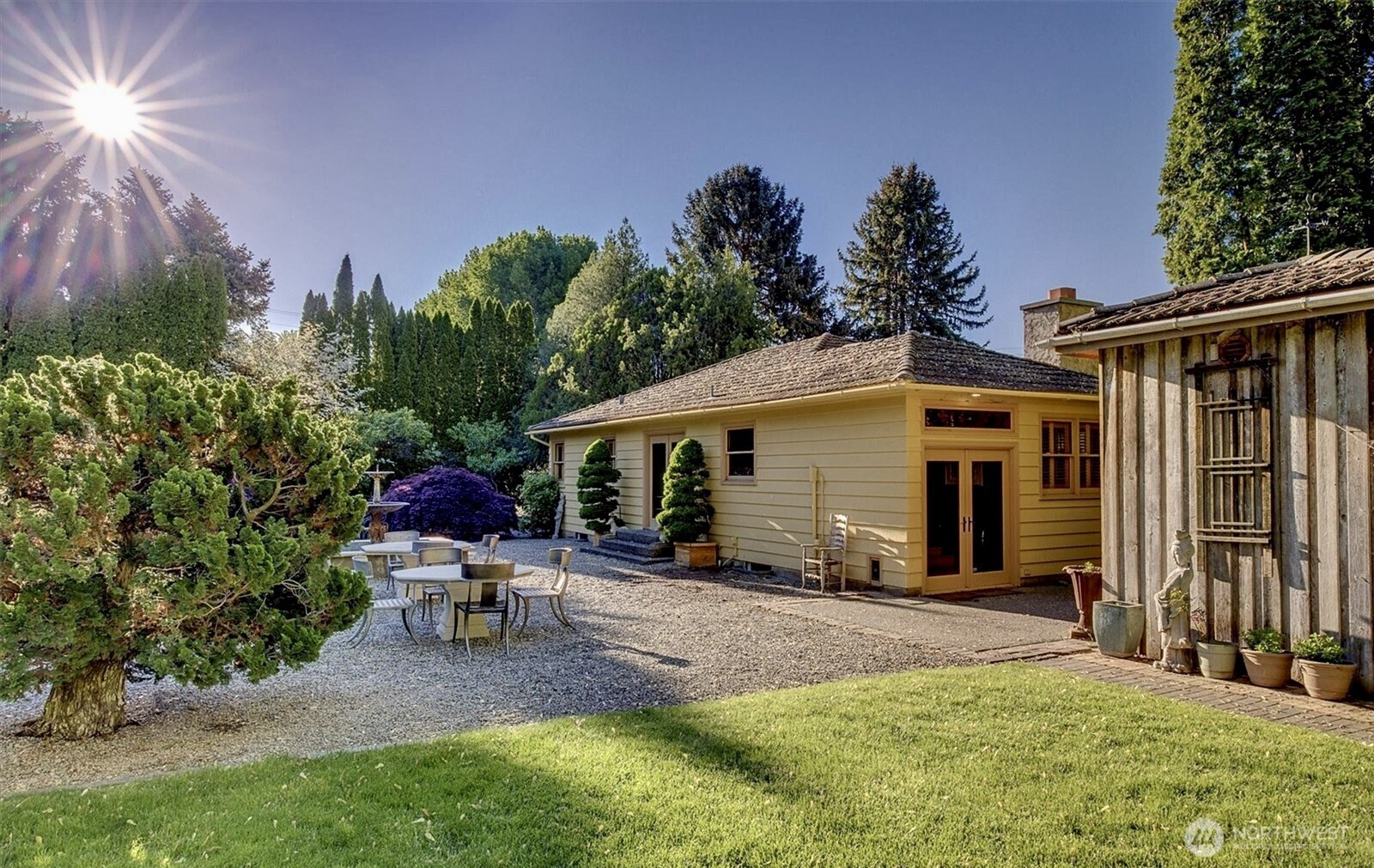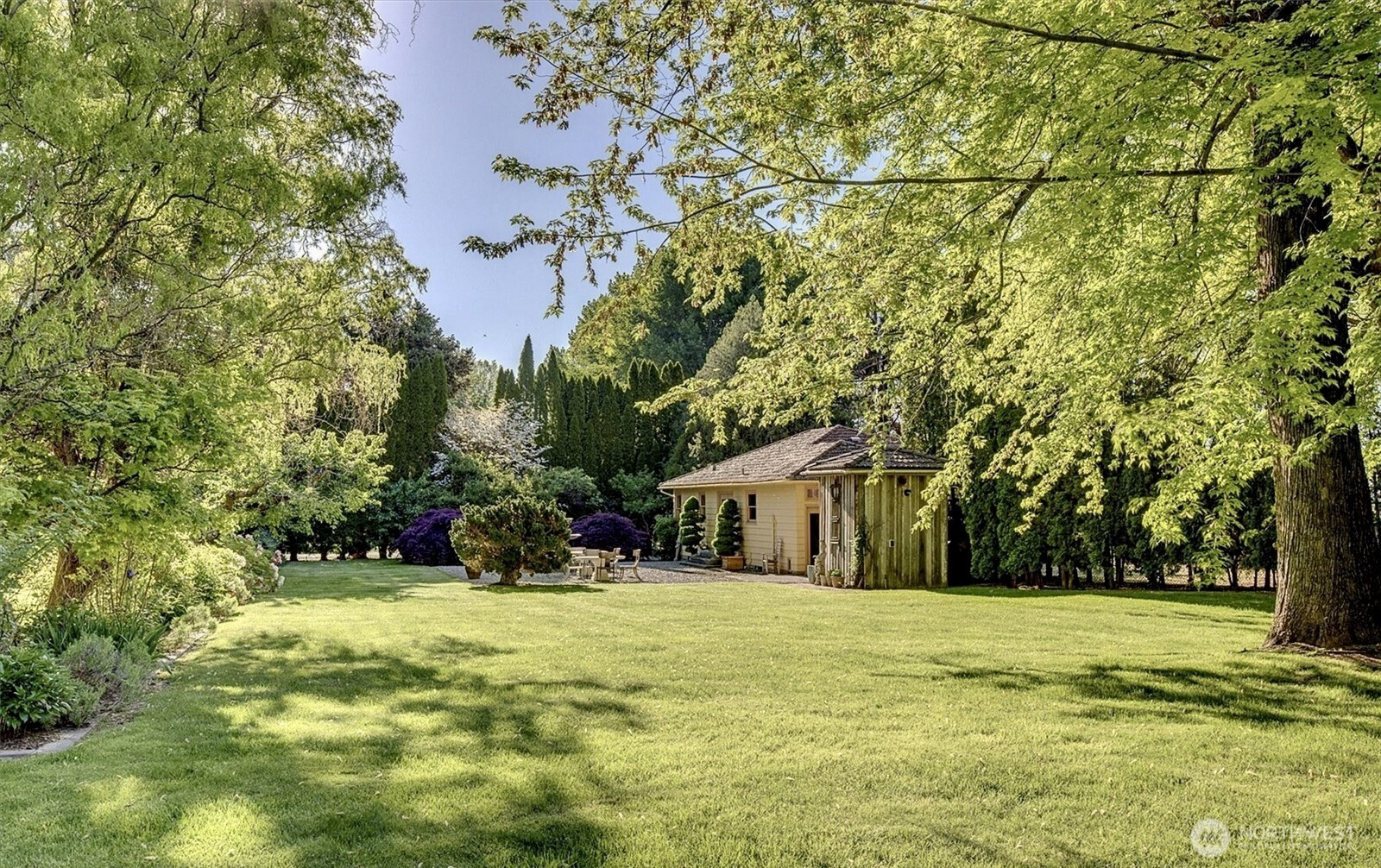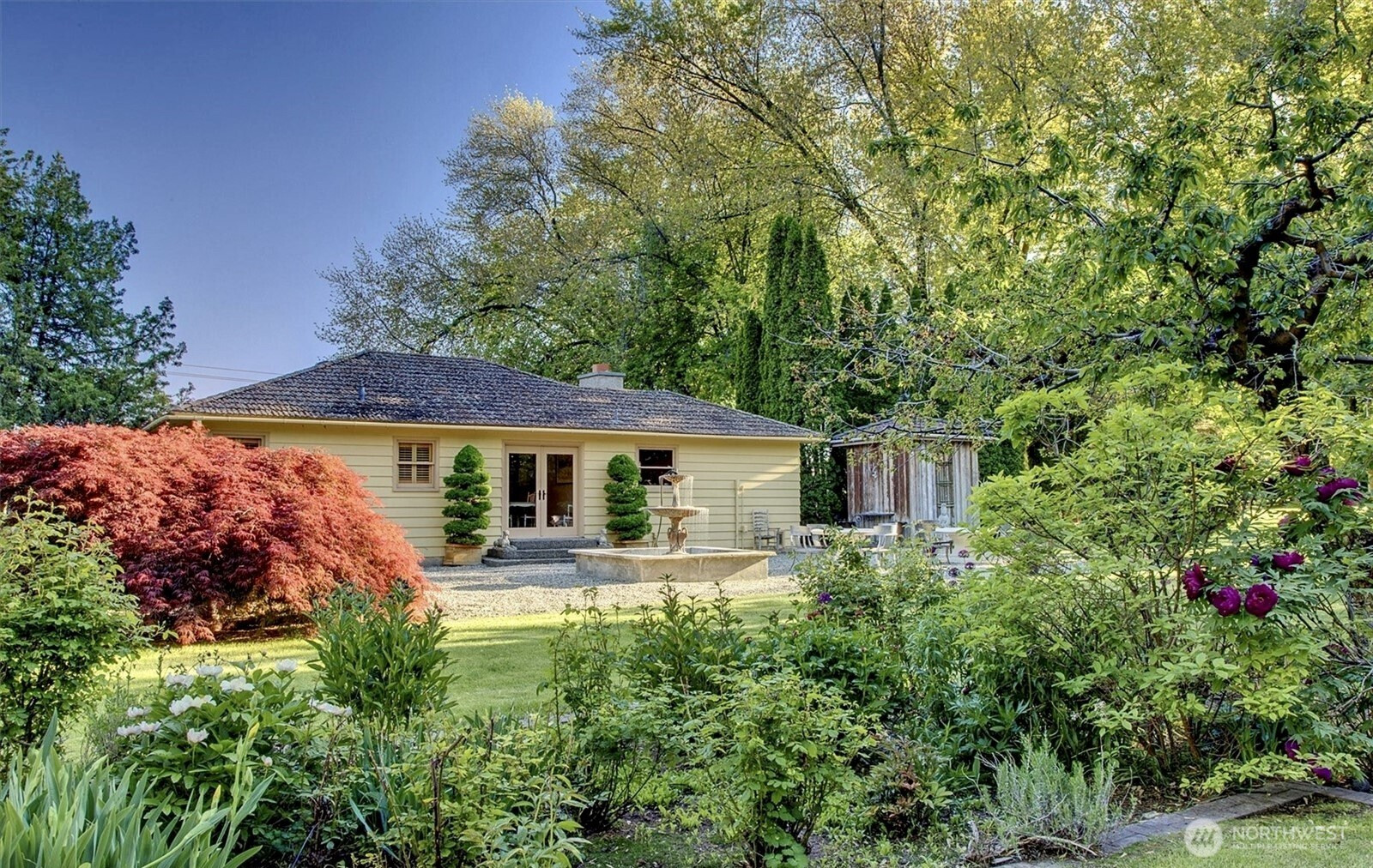 Set on an additional 1.8 acres and bordered by established plantings, the Fountain Villa offers a sense of space and privacy. The four-bedroom, two-bath home blends European charm with thoughtful updates. A generous kitchen, anchored by a six-burner gas range and French butcher block, opens to both formal and informal living areas. A centering fireplace with side lounging space for fireside reading makes this a special and cozy retreat during the winter months. French doors lead to a rear patio, where a central fountain and elegant landscaping create a quiet focal point. With two bedrooms on the main level and two below, the home allows for flexibility in living arrangements while maintaining a cohesive flow. The grounds are enclosed and framed by tall arborvitae, enhancing the sense of seclusion.