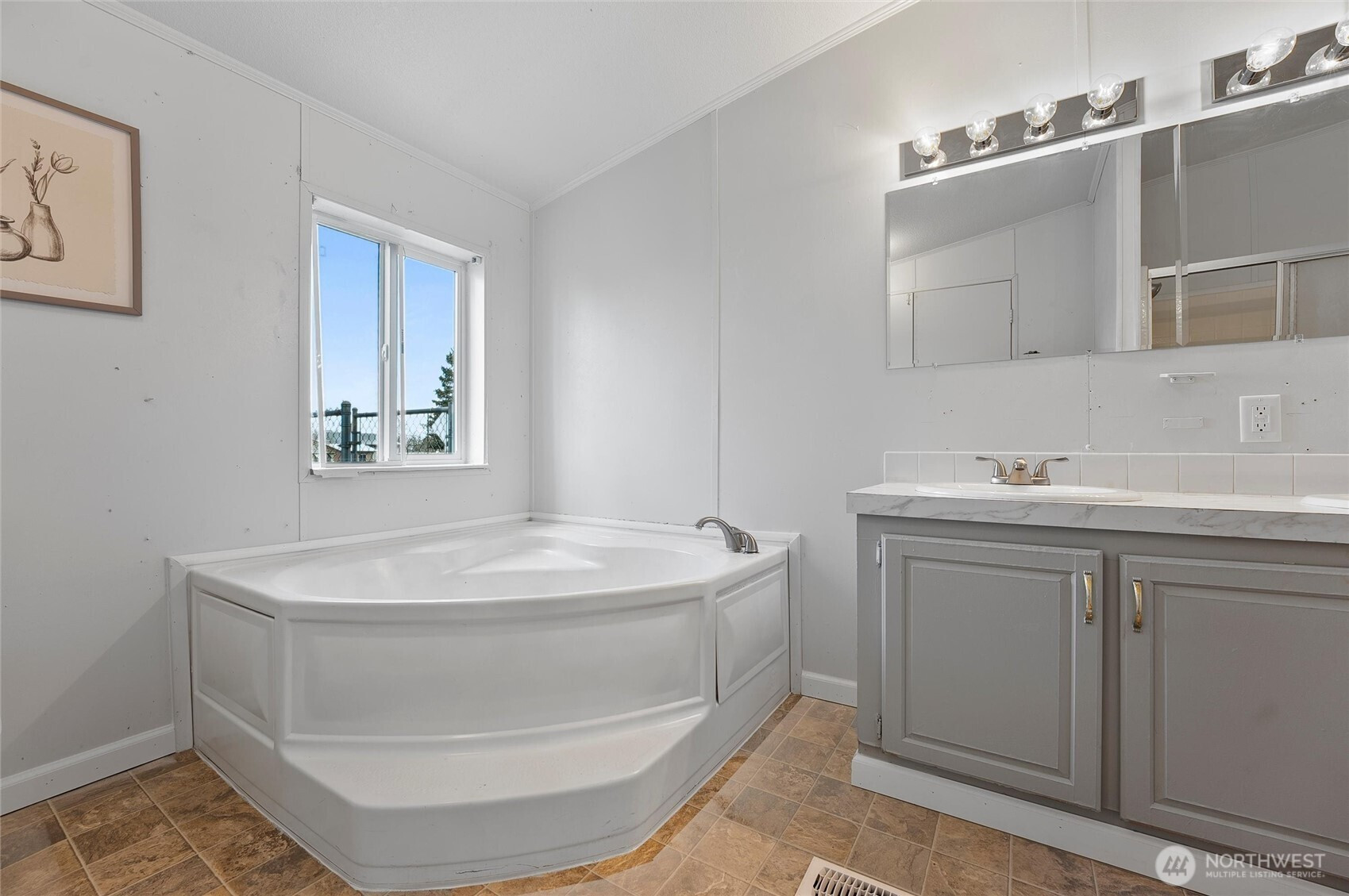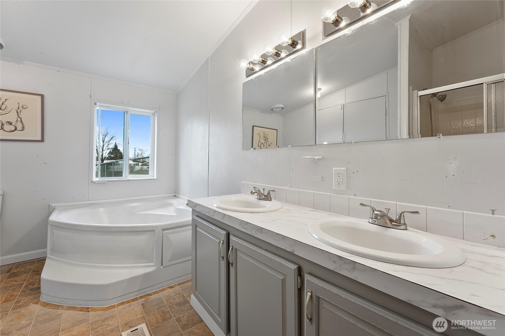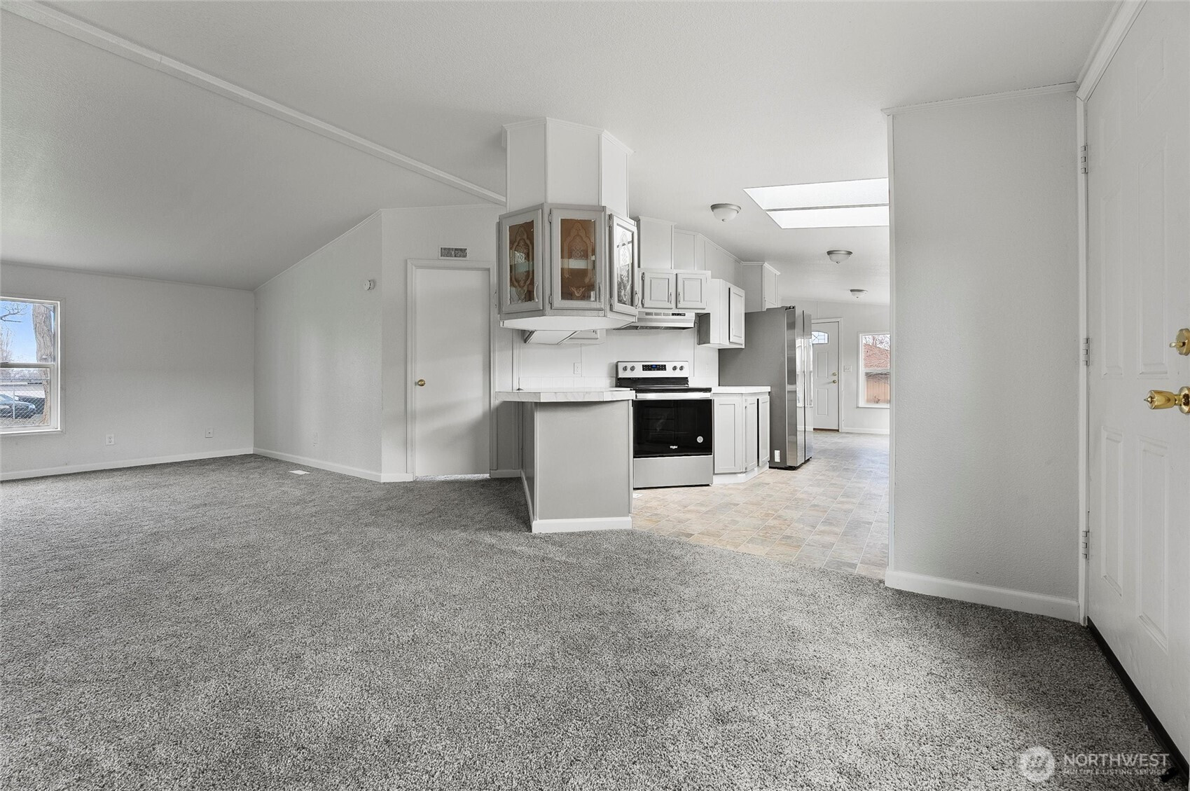 This beautifully updated 1456 sq. ft. home features a brand-new roof and stylish flooring throughout. The kitchen boasts sleek stainless steel appliances, perfect for any chef. With a neutral color palette and plenty of windows, the home is bright and airy. The split-bedroom layout includes a spacious primary suite with a luxurious en-suite bath, double sinks, and a soaking tub. French doors lead to a den or home office. Move-in ready and located in a prime Moses Lake area!