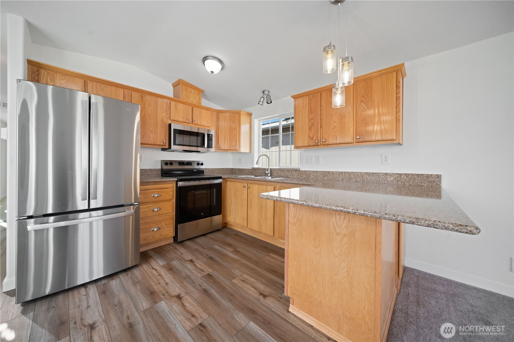 Welcome to this beautifully updated 1-bedroom, 1-bath home offering comfort, style, and modern living. Enjoy a bright, open layout with fresh paint, new trim, new carpet, and updated flooring throughout. The kitchen boasts a light-filled design, complemented by a convenient peninsula island that's perfect for casual dining or meal preparation. Outside, a spacious shed provides valuable extra storage. With access to amenities such as a golf course, pool, and clubhouse, this home offers easy and low-maintenance living in a welcoming community.