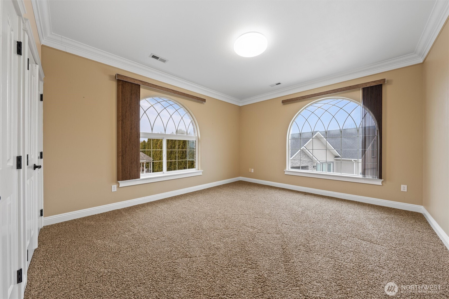 Stunning 2,600+/-sq ft two-story 3 bed 3 bath brick home nestled in a desirable golf course community. This beautifully crafted residence features expansive, light-filled living spaces, an inviting open layout, and a private primary suite designed for everyday comfort. Upstairs there is a large primary bedroom with beautiful crown molding and character, but when you step into the primary bathroom you can relax in the jetted tub then enjoy coffee out the French doors to the balcony. Don't miss the 2 additional spacious bedrooms down the hall. Timeless curb appeal, quality finishes, and a serene setting create an exceptional living experience, all just minutes from golf, dining, and shopping. A rare opportunity to enjoy elegant living in a sought-after neighborhood. The large double lot leaves space for RV parking, a pool, or adding an additional outbuilding. Keep your golf cart covered in an outdoor stucco shed with 220 power, or enjoy your craft room in the additional fully finished outbuilding ready for your personal touch. Enjoy the gorgeous evenings on the back deck, or covered patio area watching the sunset. Tvs stay with the home, making it an easy transition to entertain! The cherry on top, the 11+ foot ceilings throughout, gorgeous tile, high end cabinetry, central vacuum, 2 furnaces, 2 water heaters, and so much more. Call today and make this dream home your own.