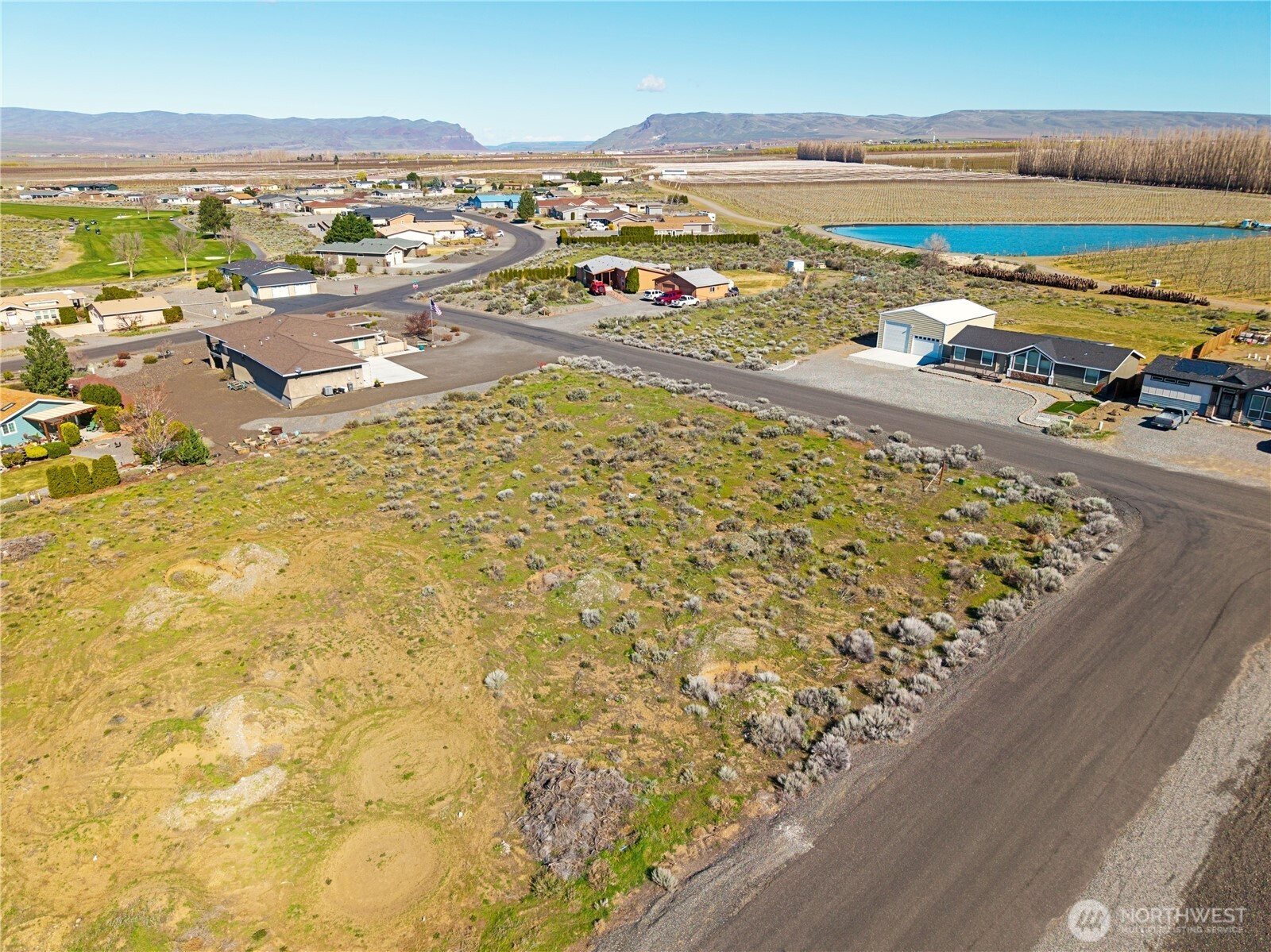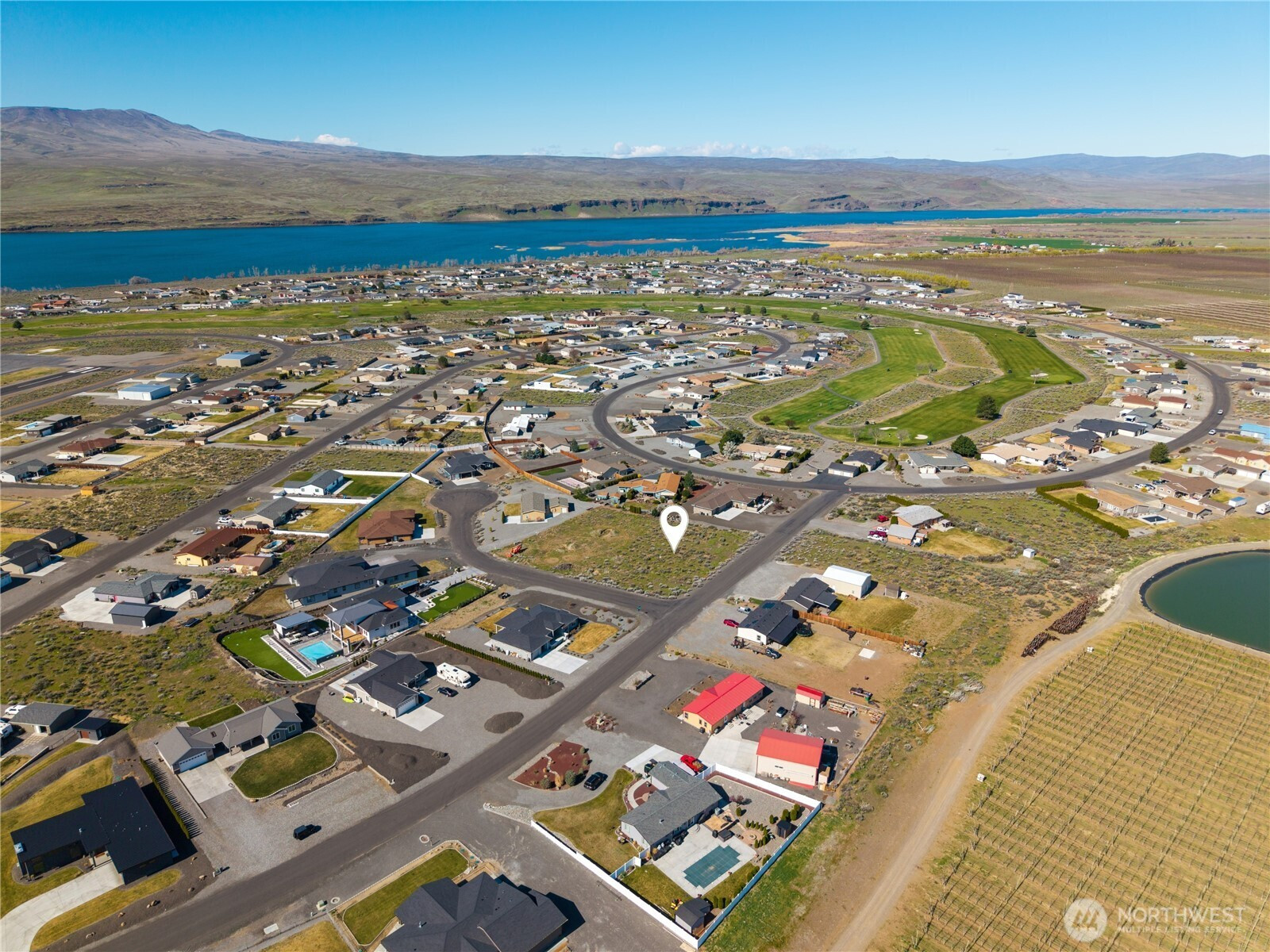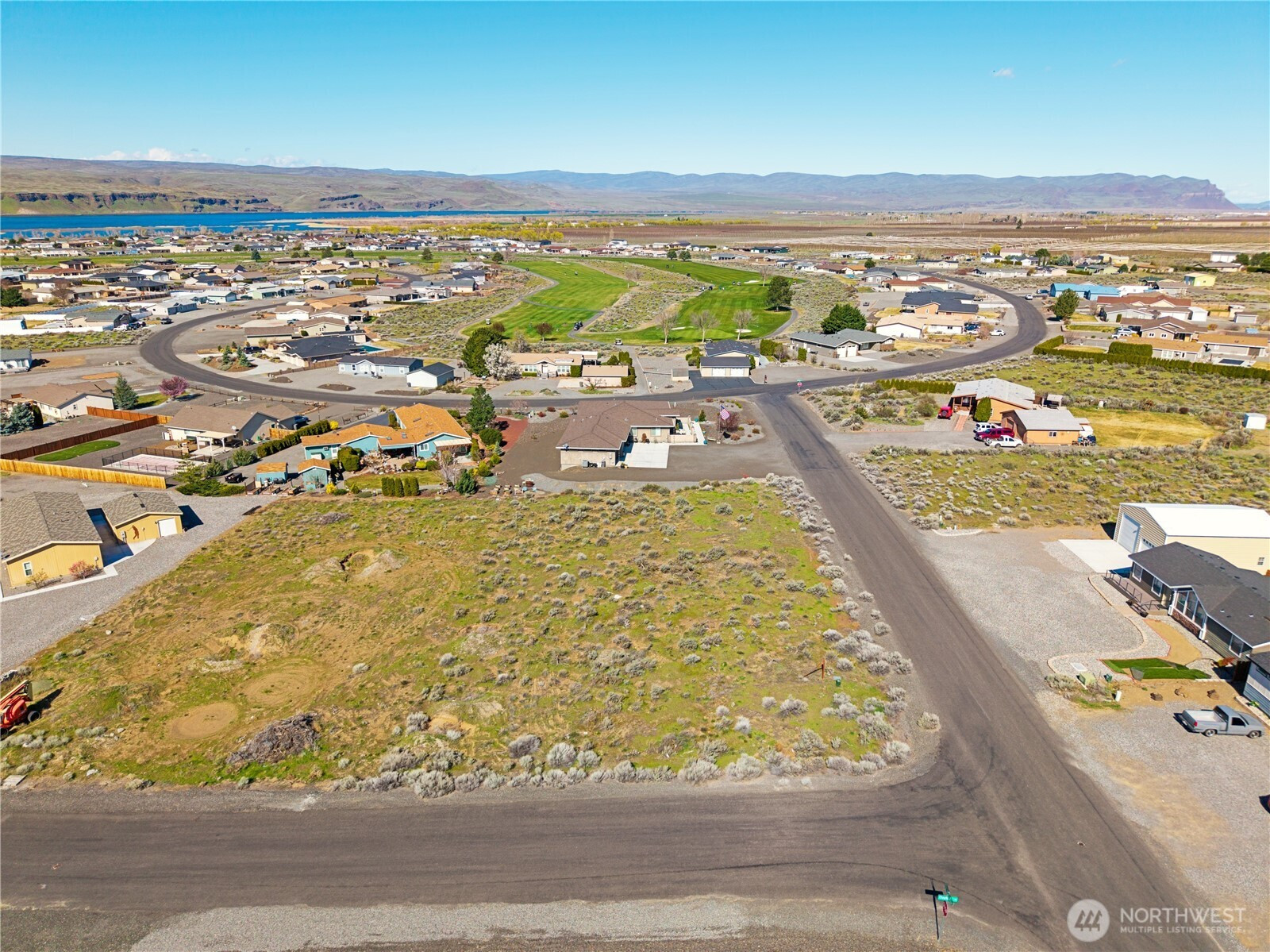 An exceptional opportunity to own one of Desert Aire’s premier view lots. This west-facing, half-acre parcel captures breathtaking sunset views over the golf course, Columbia River, and surrounding mountains, positioned at one of the highest points in the community. Nestled on a private cul-de-sac, the setting offers both tranquility and expansive, unobstructed scenery. The property features an approximate 10 foot elevation drop from front to back, creating exciting potential for additional storage, a man cave, or even a possible daylight basement. Previously dug perk test holes indicated potential for a 3 bedroom home, with room to accommodate a 4 bedroom design (buyer to verify). Power and water are conveniently available at the street. The owner is a builder and available to build a custom home tailored to your vision, offering a seamless path from purchase to completion. Desert Aire is one of Central Washington’s most sought-after recreational communities, featuring an 18-hole golf course, private airfield, boat launch, pool, fitness center, tennis courts, parks, and miles of scenic trails. Whether you envision a refined full-time residence or a luxurious retreat, this rare offering combines lifestyle, location, and opportunity in one remarkable property.
