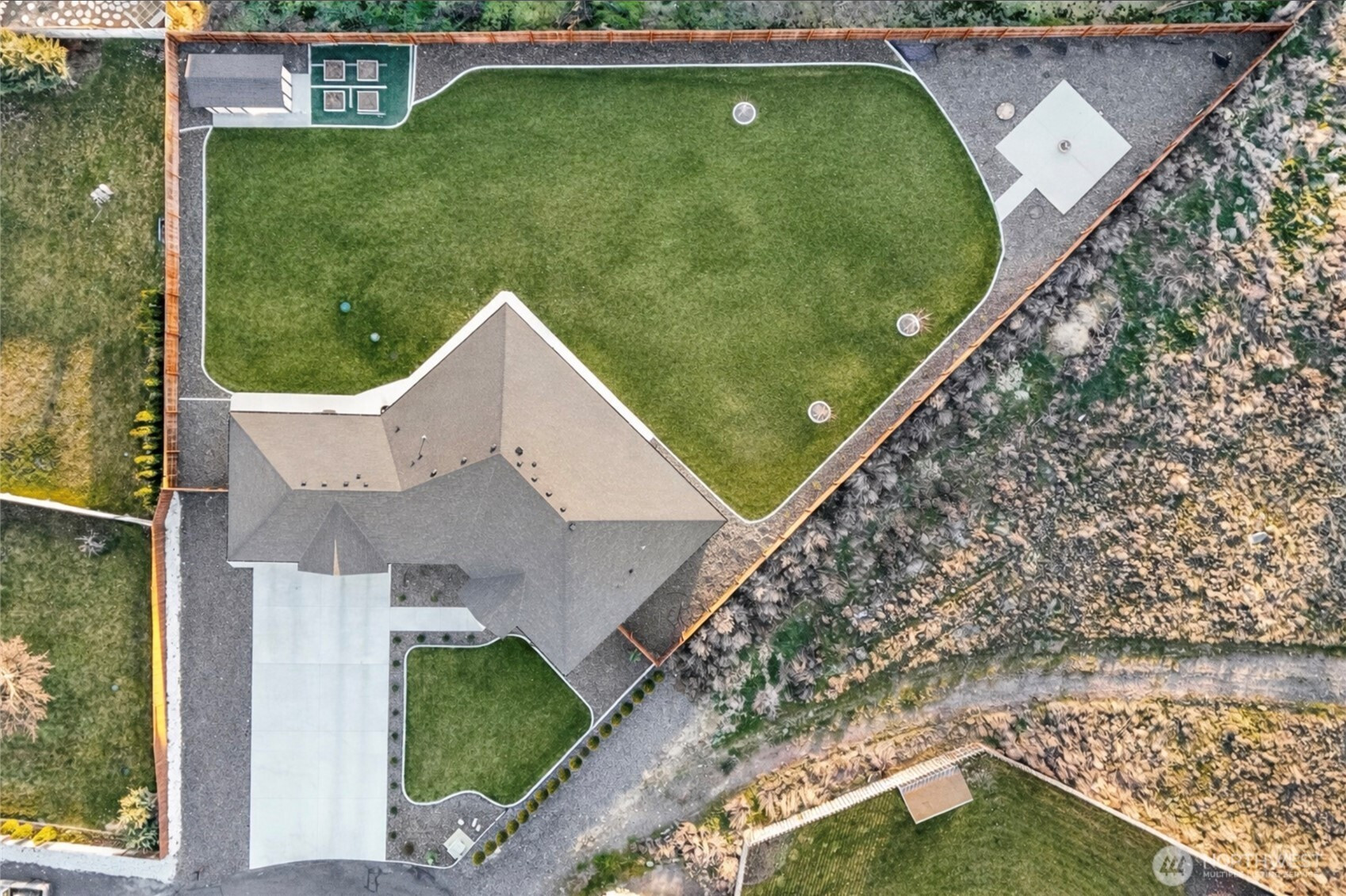 Located in the beautiful Diamond Point area, this 3-bedroom, 2.5-bath home sits on a landscaped half-acre with lake irrigation and space to park your RV. The yard features curbing, grass, rock accents, garden beds, and a full irrigation system, creating a clean and well maintained outdoor setting. Two covered back porches provide great space for relaxing or entertaining. The backyard also includes a concrete pad already poured, ideal for a future pool, fire pit area, or outdoor gathering space. A backyard shed offers additional storage for tools and equipment. Inside, the bright kitchen offers a large pantry and opens to comfortable living spaces with an electric fireplace and whole-home audio system. A dedicated office provides a great space for working from home. The primary suite features a large walk-in shower, soaking tub, spacious walk-in closet, and heated bathroom floors for added comfort. The guest bathroom also includes heated floors. Additional highlights include a central vacuum system, a generous laundry room with folding space, a large two-car garage with wiring for EV charging, and plenty of storage throughout the home. Washer, dryer, and refrigerator are included, making this home move-in ready.