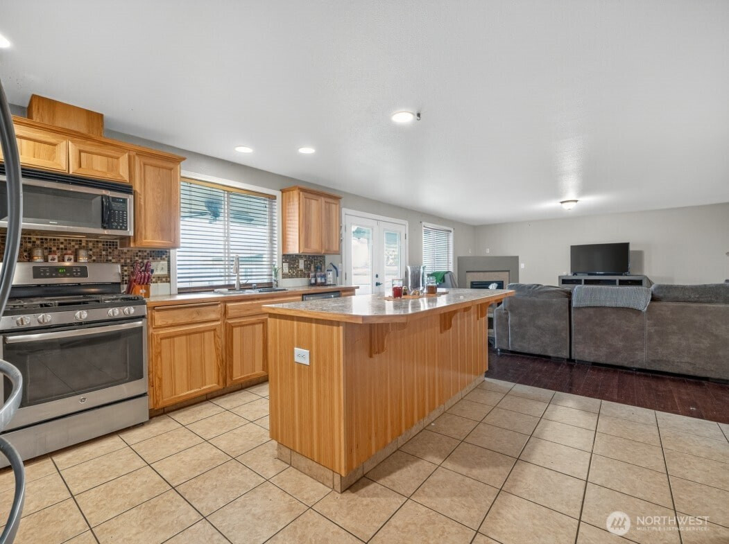 Priced to sell!! This corner-lot home offers an open layout and a backyard made for entertaining. The main level features wide, open living areas with warm bamboo flooring and a large kitchen anchored by an oversized island, creating a layout that feels easy, functional and inviting. Upstairs, the bedrooms are generously sized and flexible for guests or work-from-home needs. Outside, the fully fenced backyard is the standout, with a stone patio, built-in grill and plenty of space to gather, relax or play. A two-car garage and ample parking add everyday convenience. Showings are by appointment only. Homes like this do not last!
