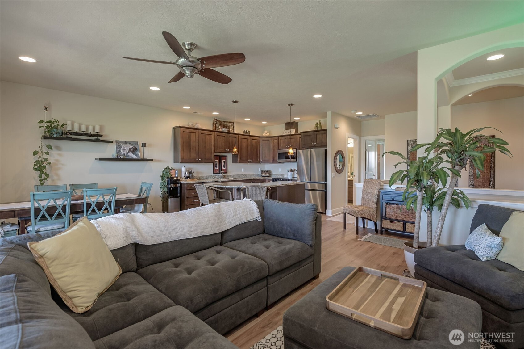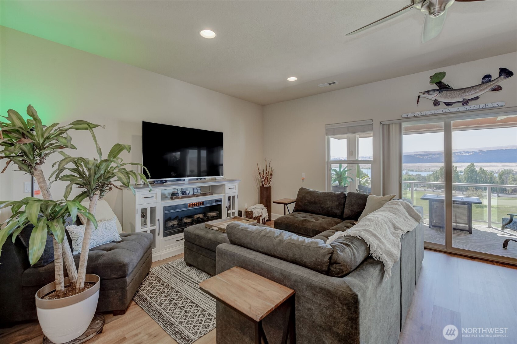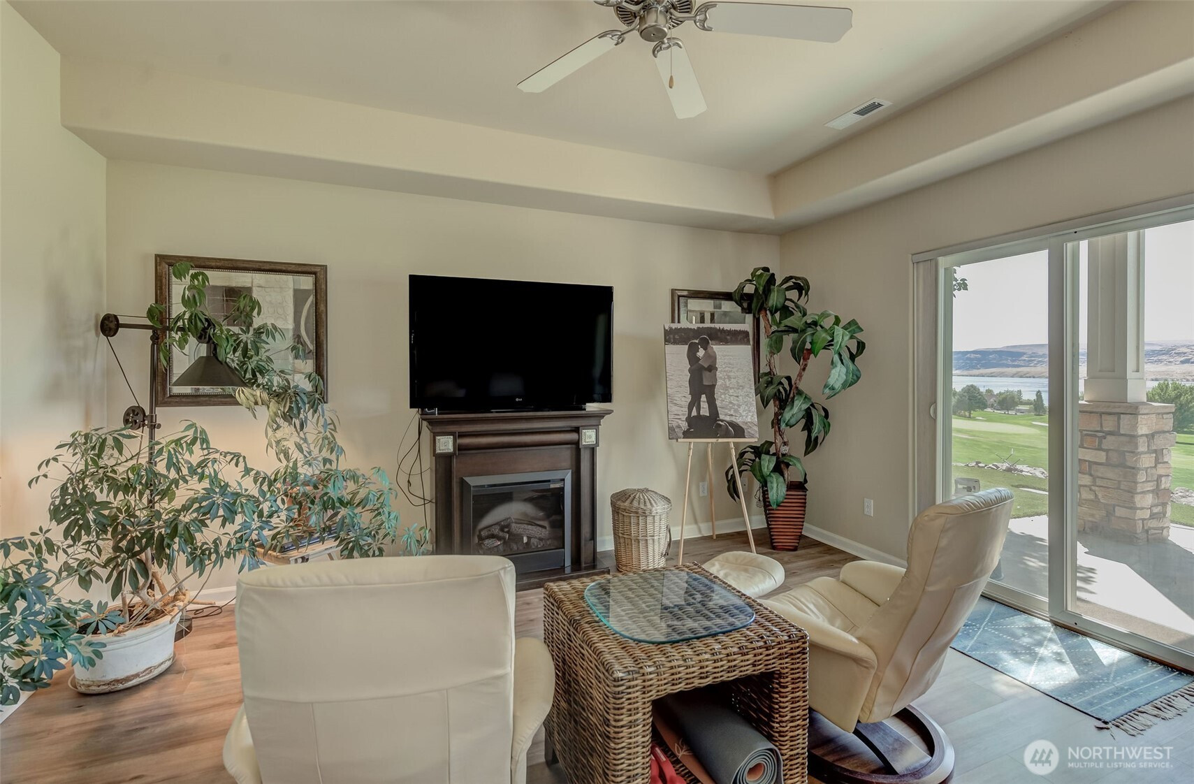 Fantastic location! Home sits above the 8th tee of the Sunserra Golf Course w/ unobstructed views of the Columbia River! Ideal Great Room design w/ 2 Bedrooms + Den/3rd Bedroom. Awesome deck and patio for taking in the breathtaking scenery! Upgrades include new flooring throughout and all new appliances in the spacious kitchen. HUGE primary suite with sitting area and two sliders to private patio. Detached garage for all your toys plus two reserved parking spaces AND a golf cart parking space w/ power post for charging your cart. Come and enjoy boating, golf, walking trails, tennis, pickle ball, swimming pools, four restaurants, boutiques and make memories to last forever! This beautiful home is offered furnished! BEST offering in Sunserra!