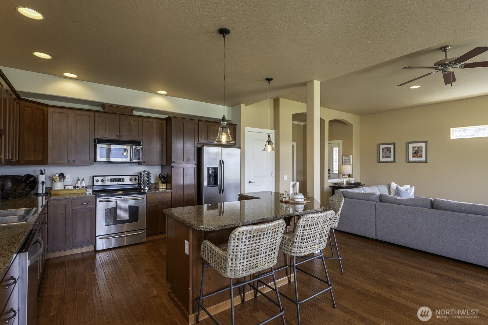 Welcome to the highly sought-after gated community of Sunserra at Crescent Bar. This beautifully maintained, fully furnished 1,813 sq ft home boasts what may be the most premier location in all of Sunserra—offering sweeping views of the golf course, clubhouse, and Columbia River right from your living room and kitchen. Currently operating as a successful vacation rental w $20,000 in summer bookings secured, making it an exceptional investment opportunity as well as a personal getaway. The main level features a spacious primary suite complete w/ an ensuite bathroom, walk-in closet & serene views overlooking the pool, kiddie pool, hot tub & tennis & pickle ball courts. Main floor also includes a bright and open living area, well-appointed kitchen which open to the covered patio & firepit & 5 star views. Upstairs, you’ll find a generous bonus room, second bedroom & a full bathroom—perfect for guests or additional living space. Home has been impeccably cared for, showcasing true pride of ownership, w/ a furnace & heat pump updated in 2022 for added comfort. Sunserra’s resort amenities include five pools, hot tubs, tennis courts & a ball field, all set within a beautifully maintained community. Just beyond, Crescent Bar offers some of the region’s best boating, fishing, hiking & outdoor recreation along the Columbia River. Just a short drive from The Gorge Amphitheater, Wenatchee, Columbia Valley wineries & multiple ski destinations. Garage available for purchase separately.