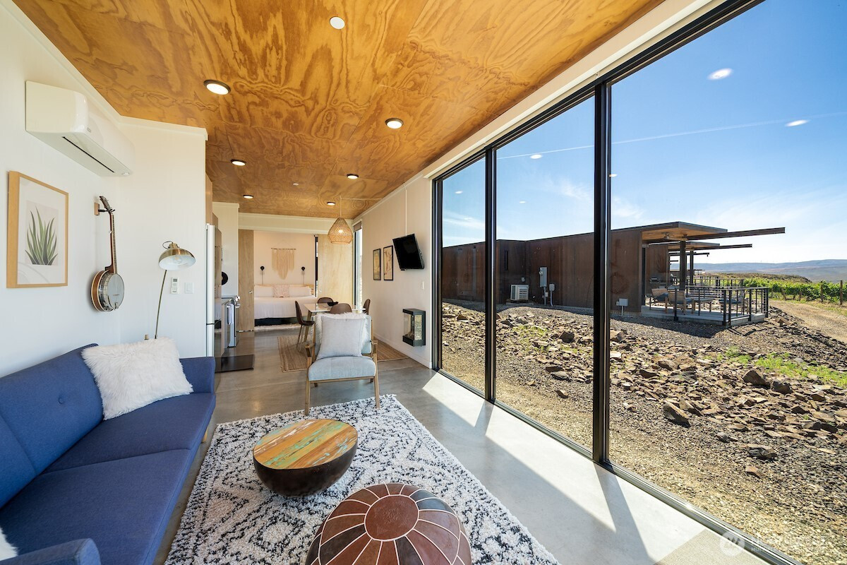 Perched amidst the awe-inspiring setting of one of the world’s most scenic music venues, this Olson-Kundig designed pied-à-terre commands peerless views of the majestic Columbia River Gorge and rugged wilderness surround. Enjoy a sanctuary of luxe comfort and intimacy for a unique and unparalleled experience away from it all. Enjoy a fully-equipped kitchen, dual heat pump heads, floor to ceiling windows with power blinds, washer dryer combo, new roof, and an extendable Anderson sliding door leading out to your private view patio. Within walking distance to the Gorge Amphitheatre, winery, and Sagecliffe Spa and Inn. Utilize income producing potential as a short-term rental, or as your own little escape from reality for year-round enjoyment.