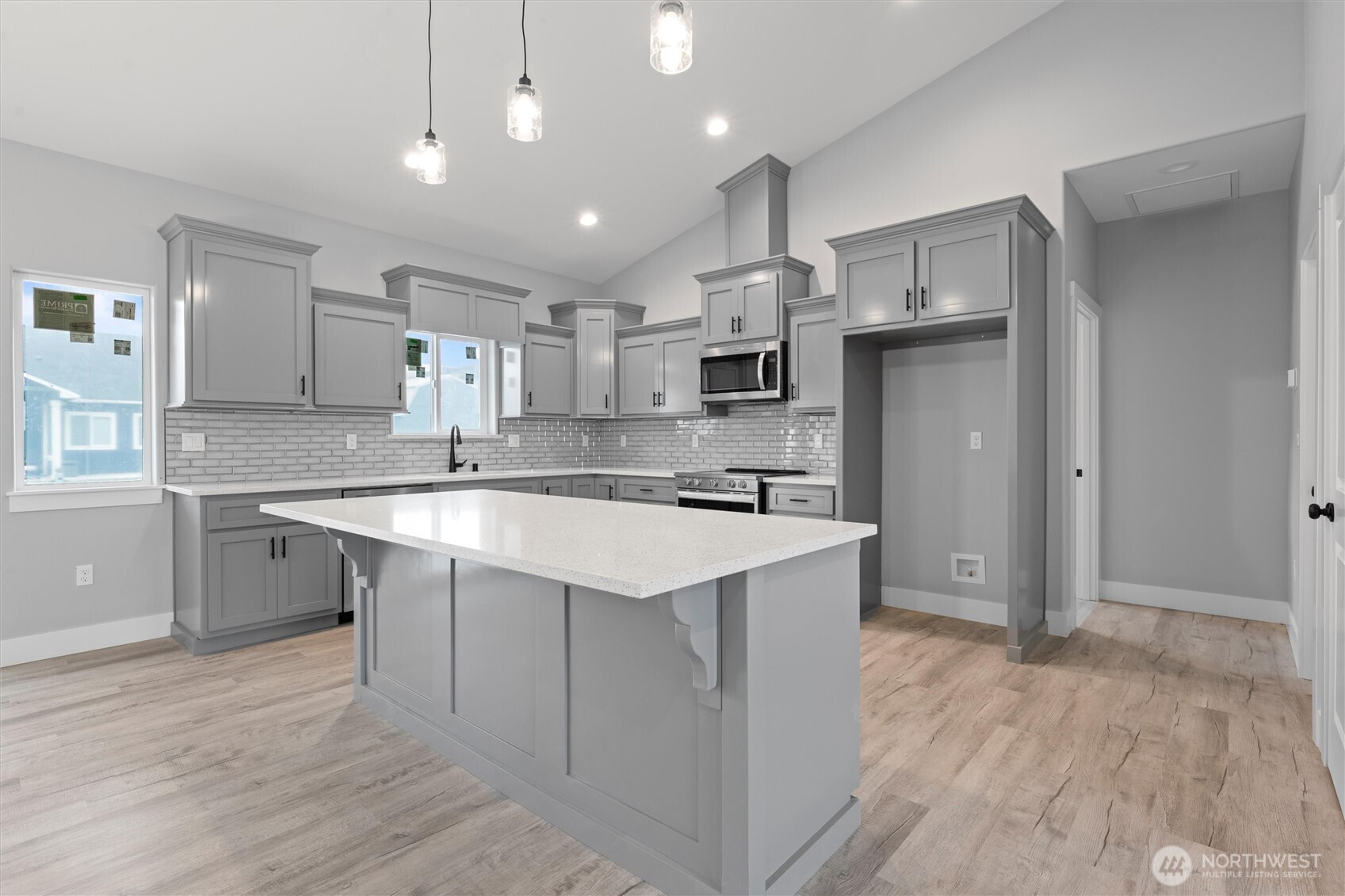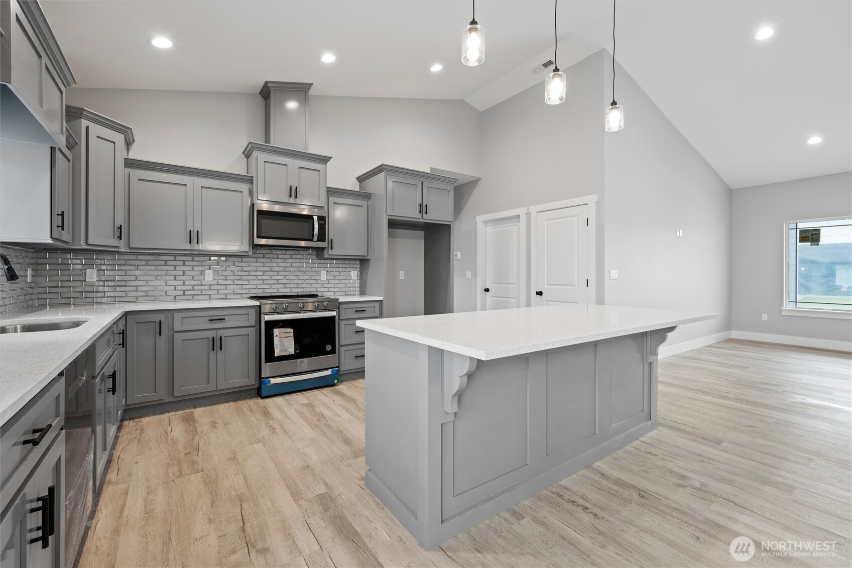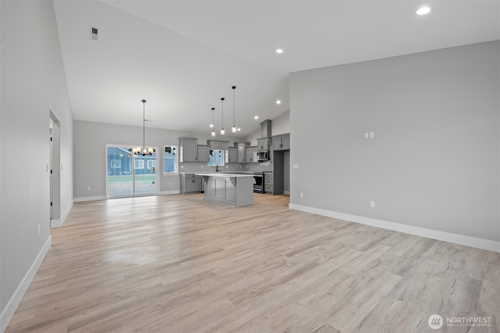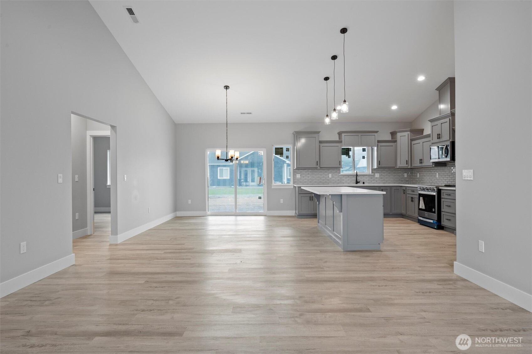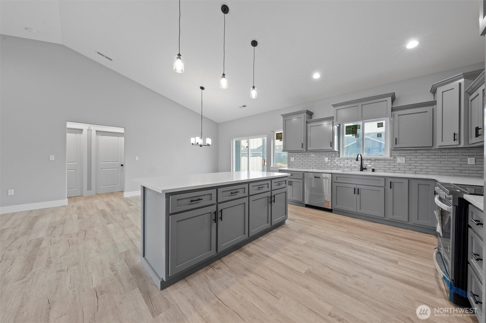 Brand-new 3-bedroom, 2-bath home offering just under 1,500 sq. ft. of modern living space! This turn-key property is move-in ready with LVP flooring throughout, matte black fixtures and hardware, and stylish pendant lighting in the kitchen. The kitchen is complete with quartz countertops, a full backsplash, and stainless steel appliances. The spacious primary suite features a walk-in closet, dual vanity, and a walk-in shower with sliding glass doors. Additional highlights include a laundry room with shelving, a 3-car garage, and a landscaped yard ready for your personal touch. Located in a growing neighborhood surrounded by new construction homes, this home delivers comfort, style, and convenience.