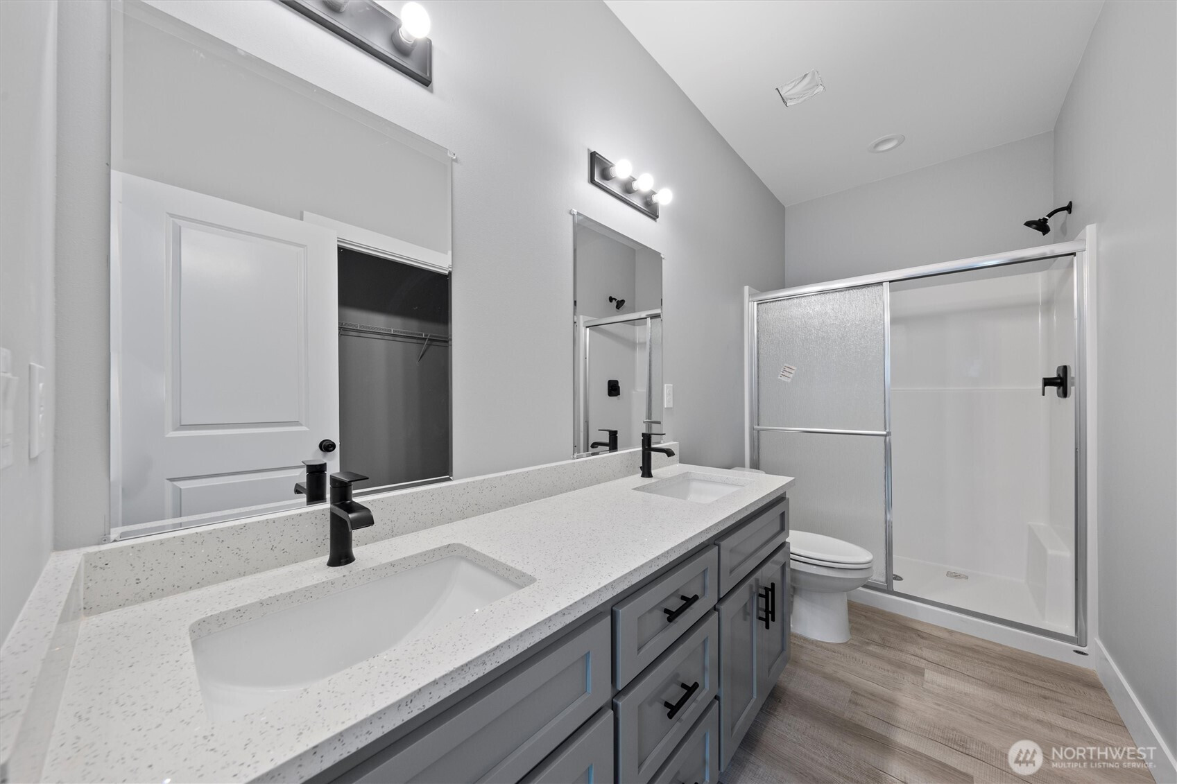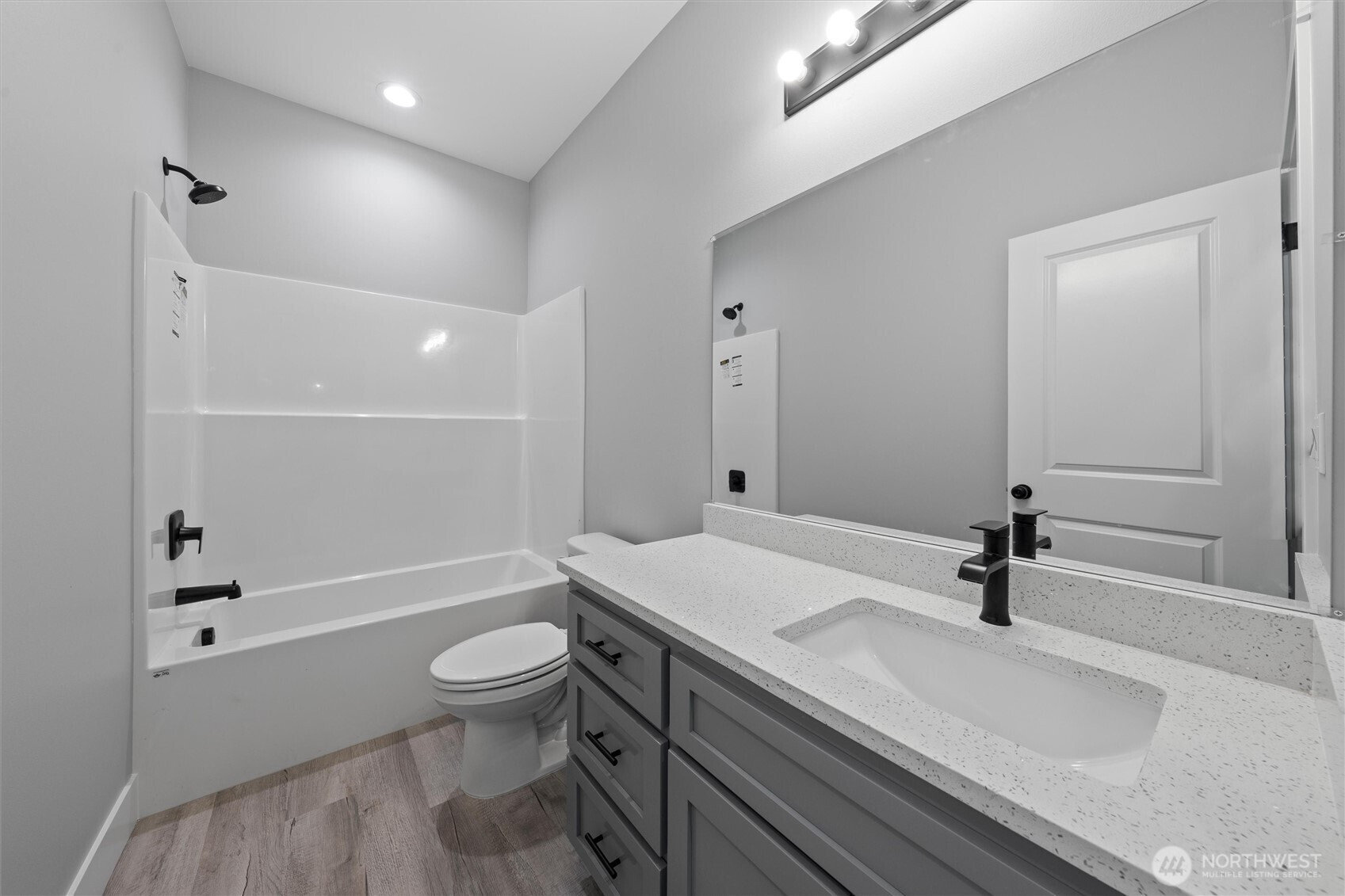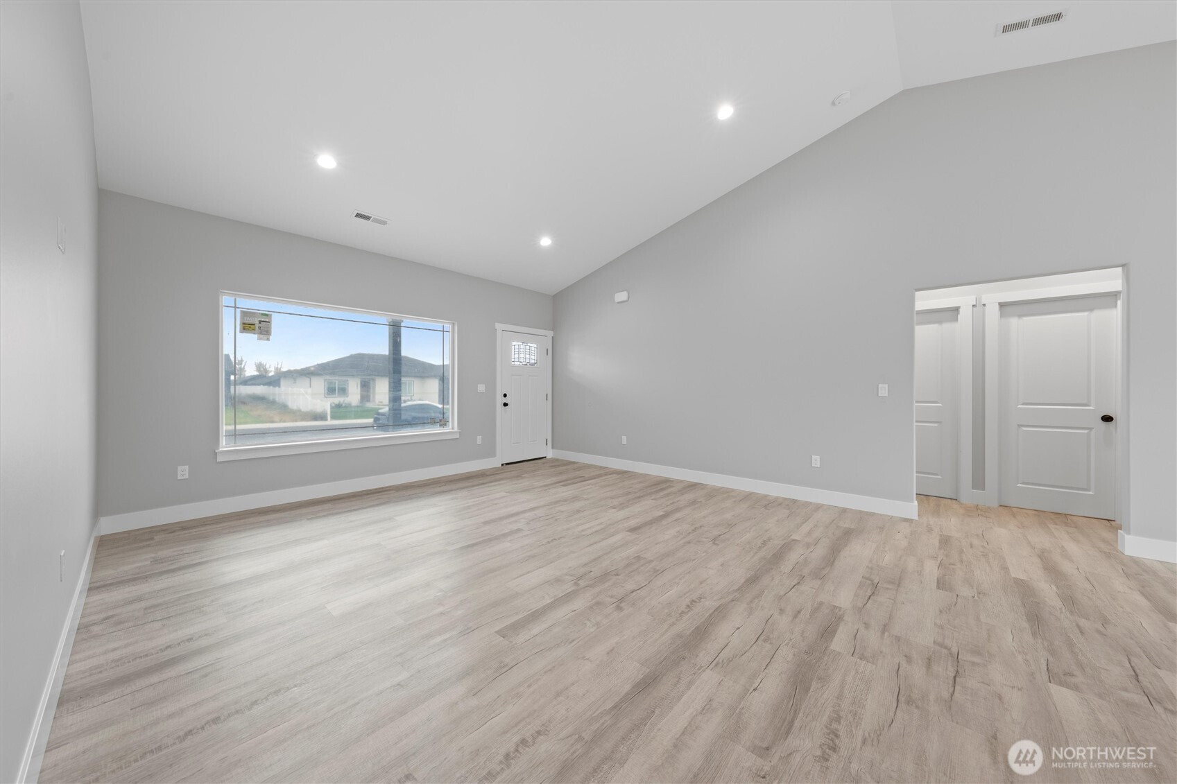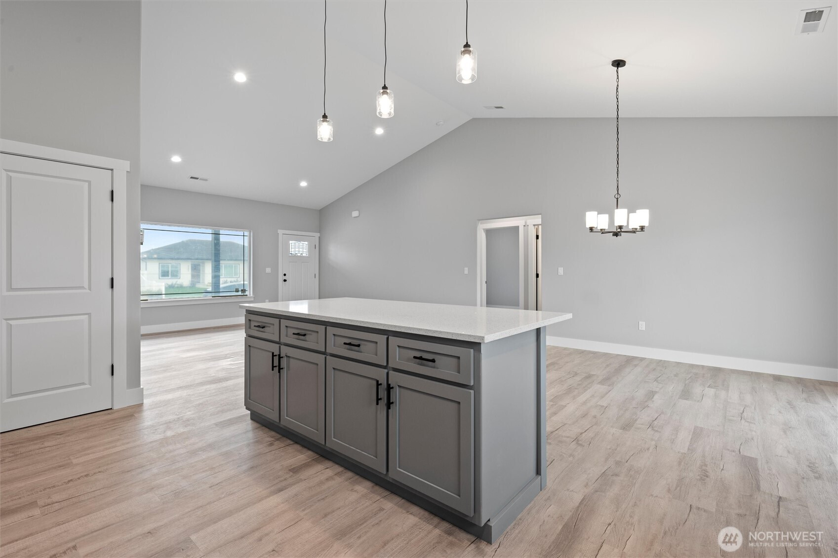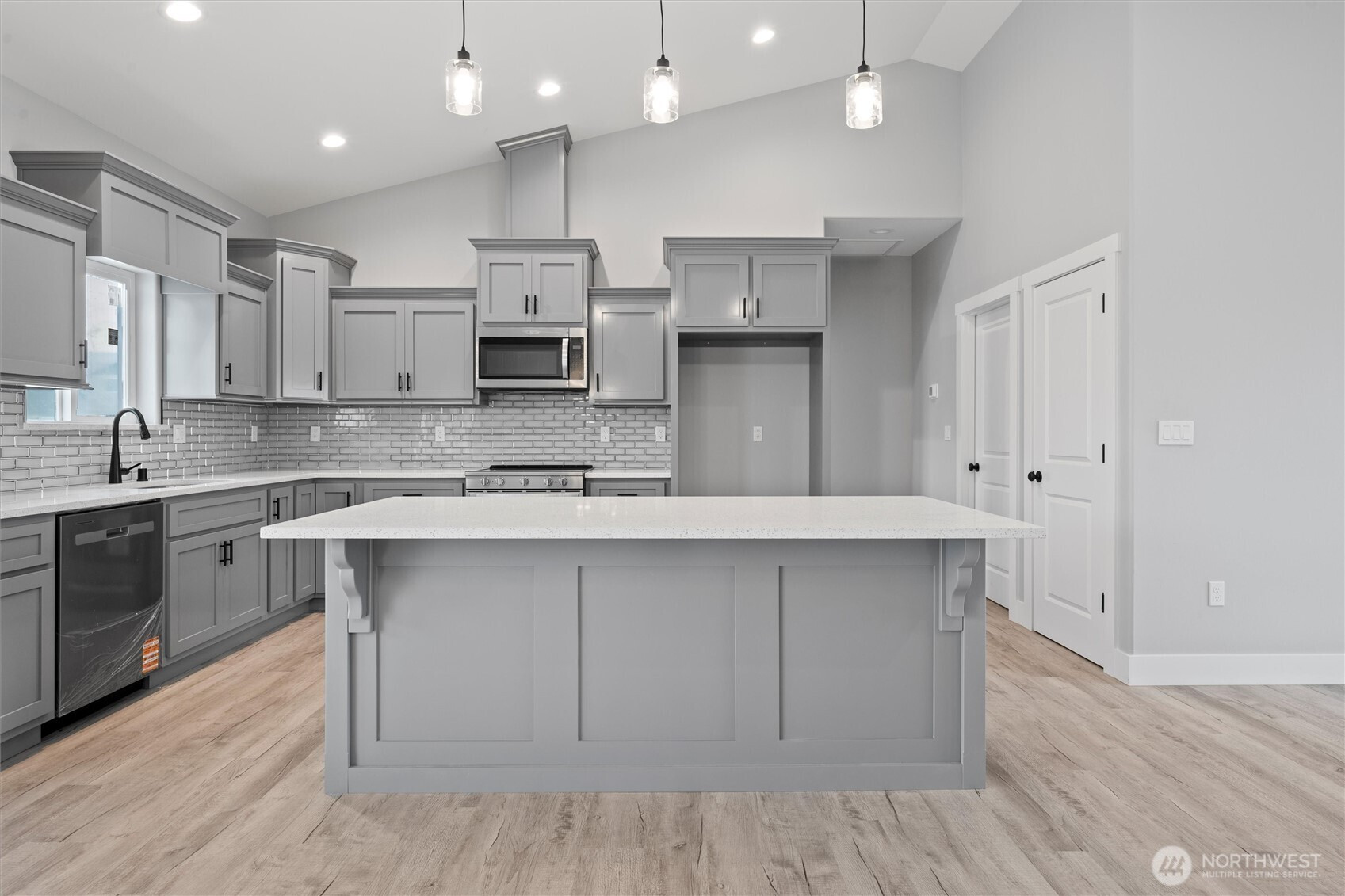 Brand-new 3-bedroom, 2-bath home offering just under 1,500 sq. ft. of modern living space! This turn-key property is move-in ready with LVP flooring throughout, matte black fixtures and hardware, and stylish pendant lighting in the kitchen. The kitchen is complete with quartz countertops, a full backsplash, and stainless steel appliances. The spacious primary suite features a walk-in closet, dual vanity, and a walk-in shower with sliding glass doors. Additional highlights include a laundry room with shelving, a 3-car garage, and a landscaped yard ready for your personal touch. Located in a growing neighborhood surrounded by new construction homes, this home delivers comfort, style, and convenience.