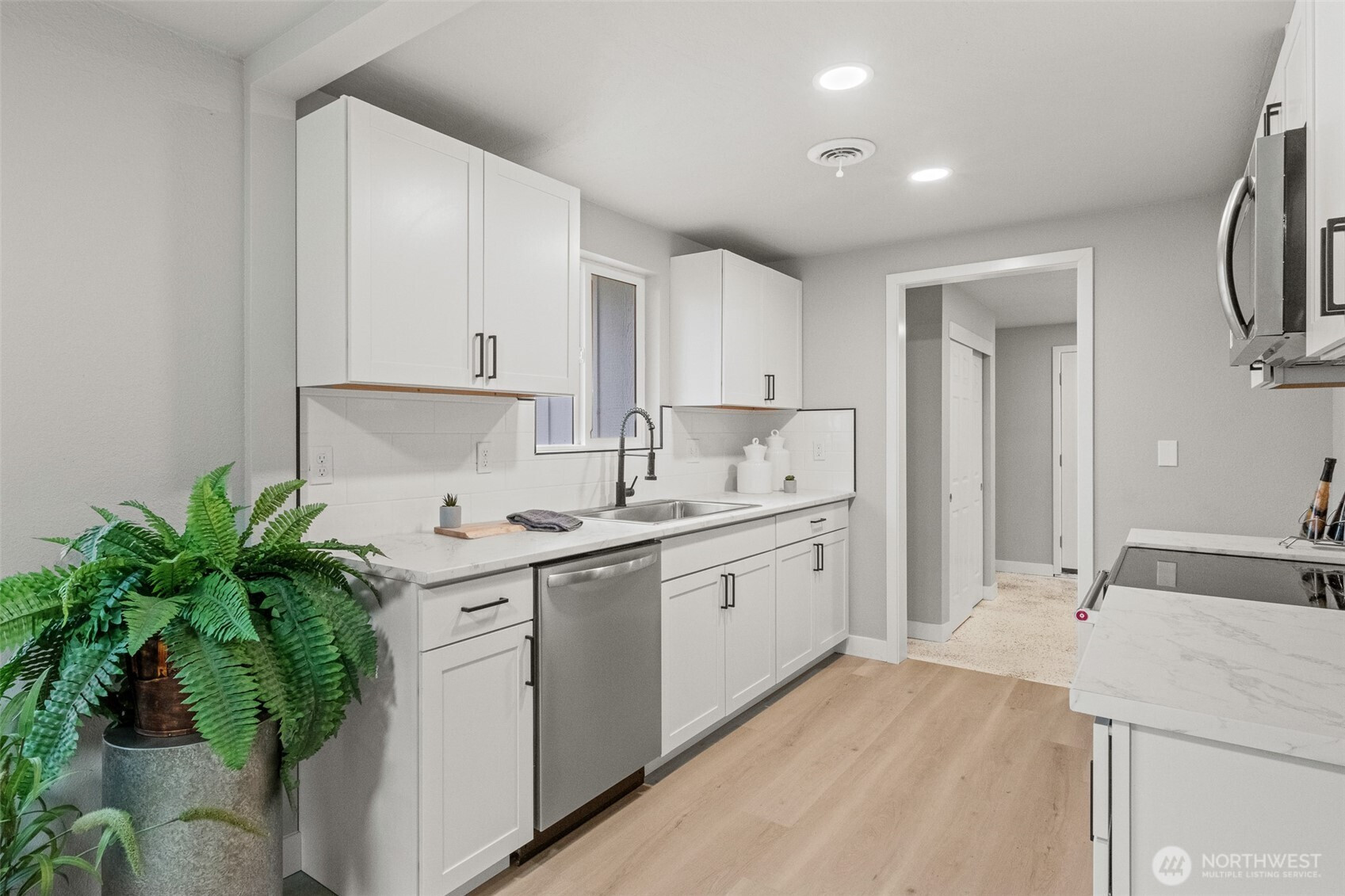Fantastic remodeled 4 bedroom, 3 bath home on a spacious corner lot. The primary bedroom and bathroom are separate from the rest of the bedrooms to provide privacy. The living room and dining area have lots of large windows to let the Central Washington sunshine in year around! This home is light and bright with new white cabinets in the kitchen and beautiful LVP flooring throughout. The main bathroom has a gorgeous tile shower. The attached double-car garage has a 3/4 bathroom for convenience when you are busy working on projects. This is a must see!