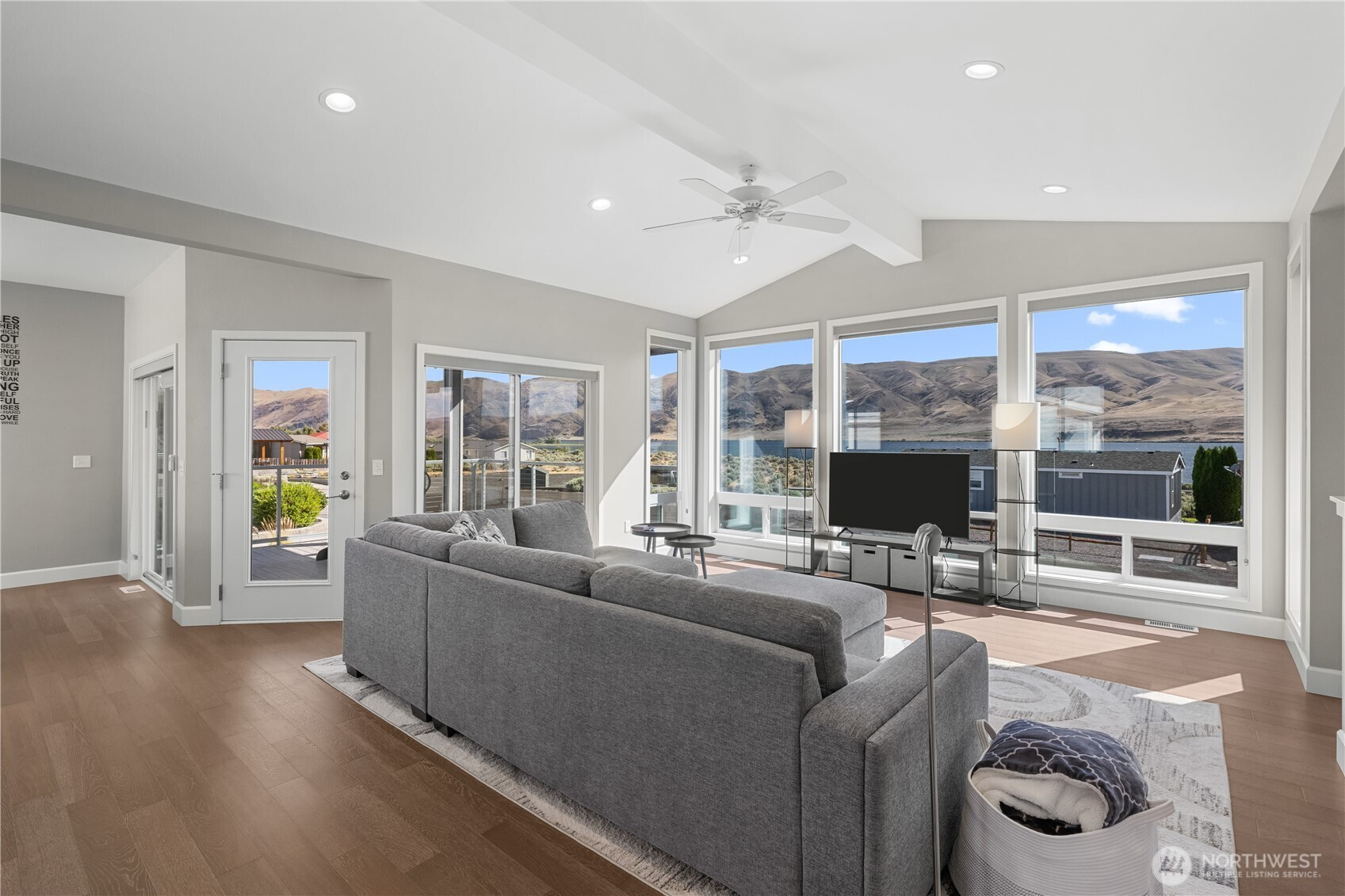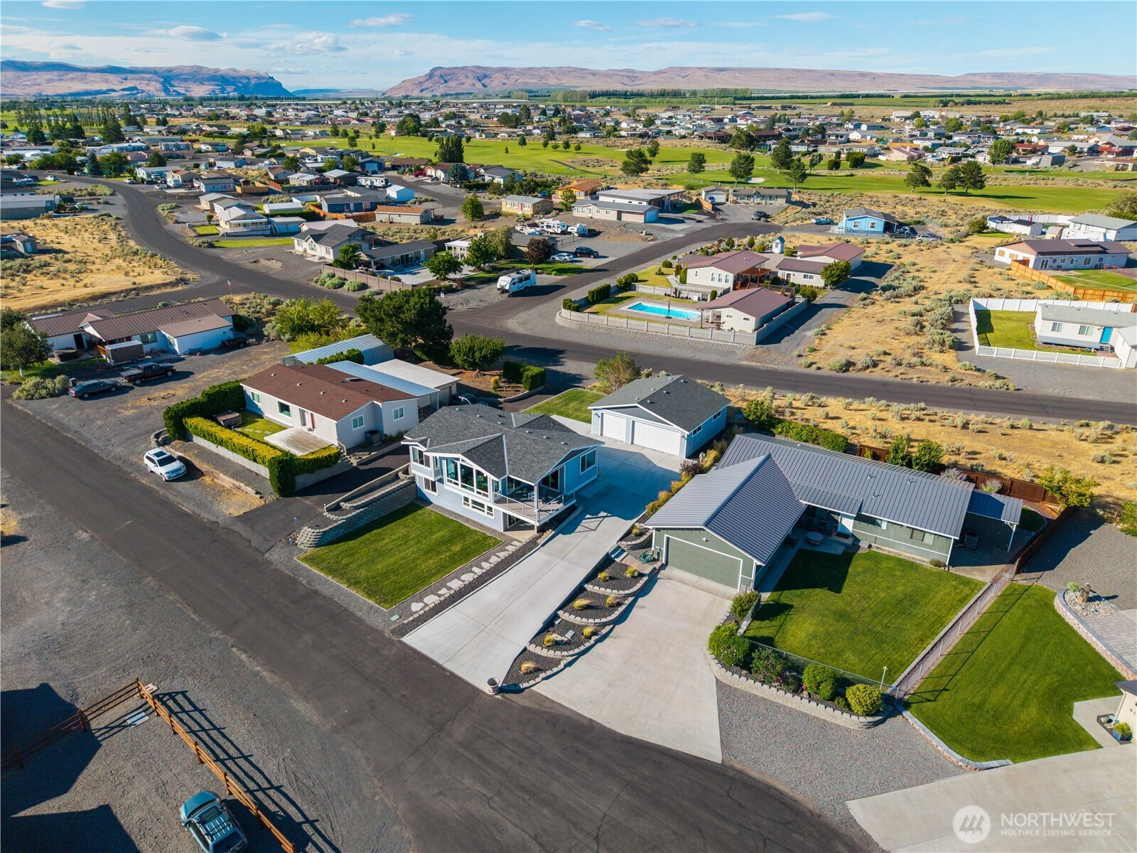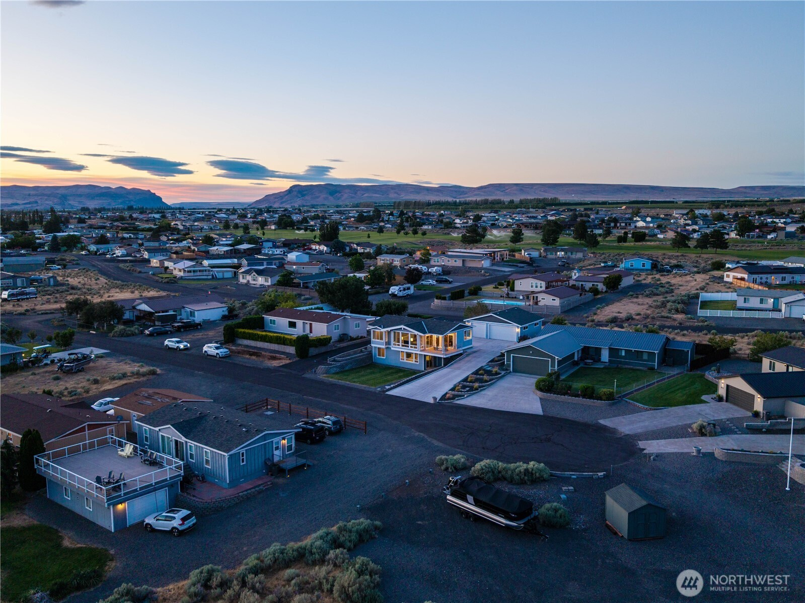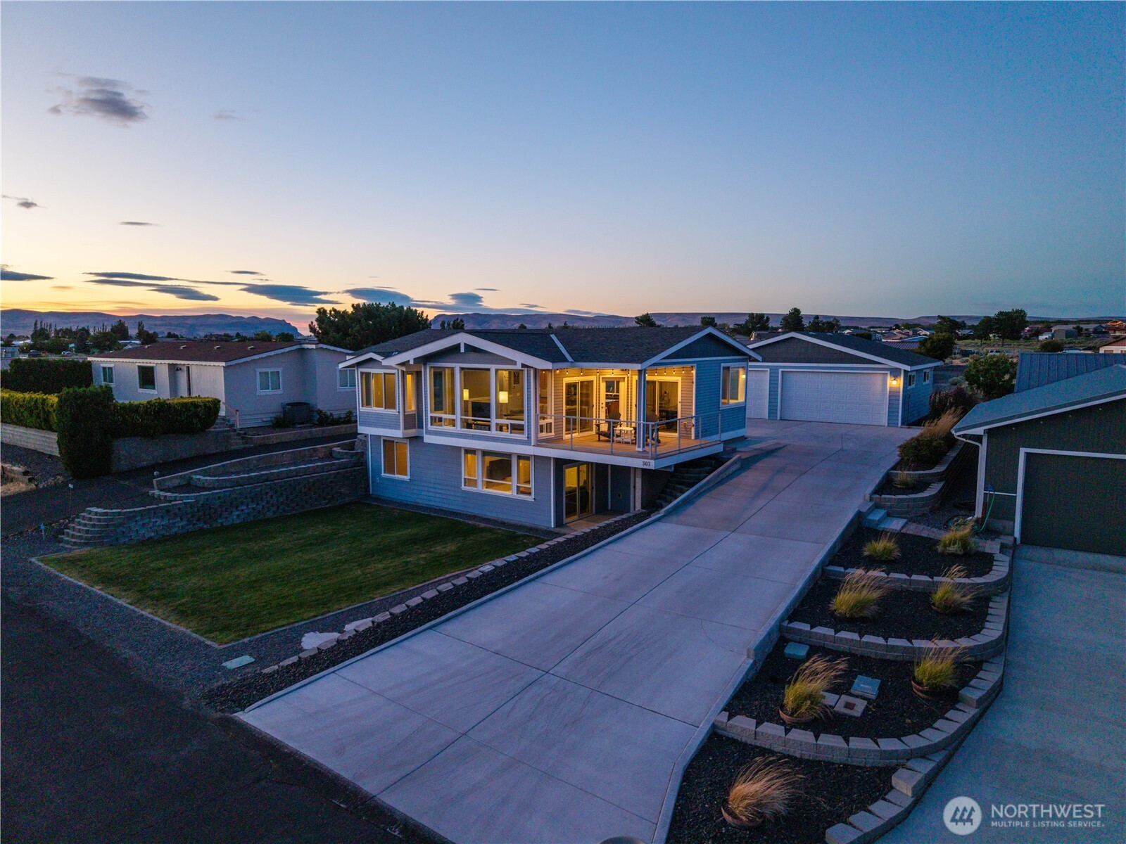 Experience elevated riverfront living in this beautifully appointed daylight rambler, ideally situated at the end of a quiet cul-de-sac in Desert Aire. Showcasing sweeping, unobstructed views of the Columbia River and surrounding mountains, this 3-bedroom, 2.5-bath home offers over 2,100 sq ft of thoughtfully designed living space. Vaulted ceilings and an open-concept layout create a bright, airy feel, while expansive windows capture the stunning scenery from nearly every room. The well-appointed kitchen features granite countertops and stainless steel appliances, ideal for both everyday living and entertaining. A versatile bonus room adds flexibility for a home office, media space, or guest area. Step outside to the covered back patio—perfect for enjoying peaceful mornings and unforgettable sunsets. The property also includes an oversized detached 3-car garage, providing ample space for vehicles, storage, or hobbies. Located within the Desert Aire community, enjoy access to premier amenities including a golf course, airfield, community pool and park, tennis courts, gym, walking trails, and boat launch—offering the ultimate in lifestyle and recreation.