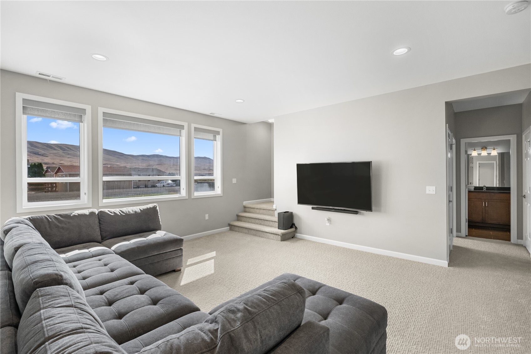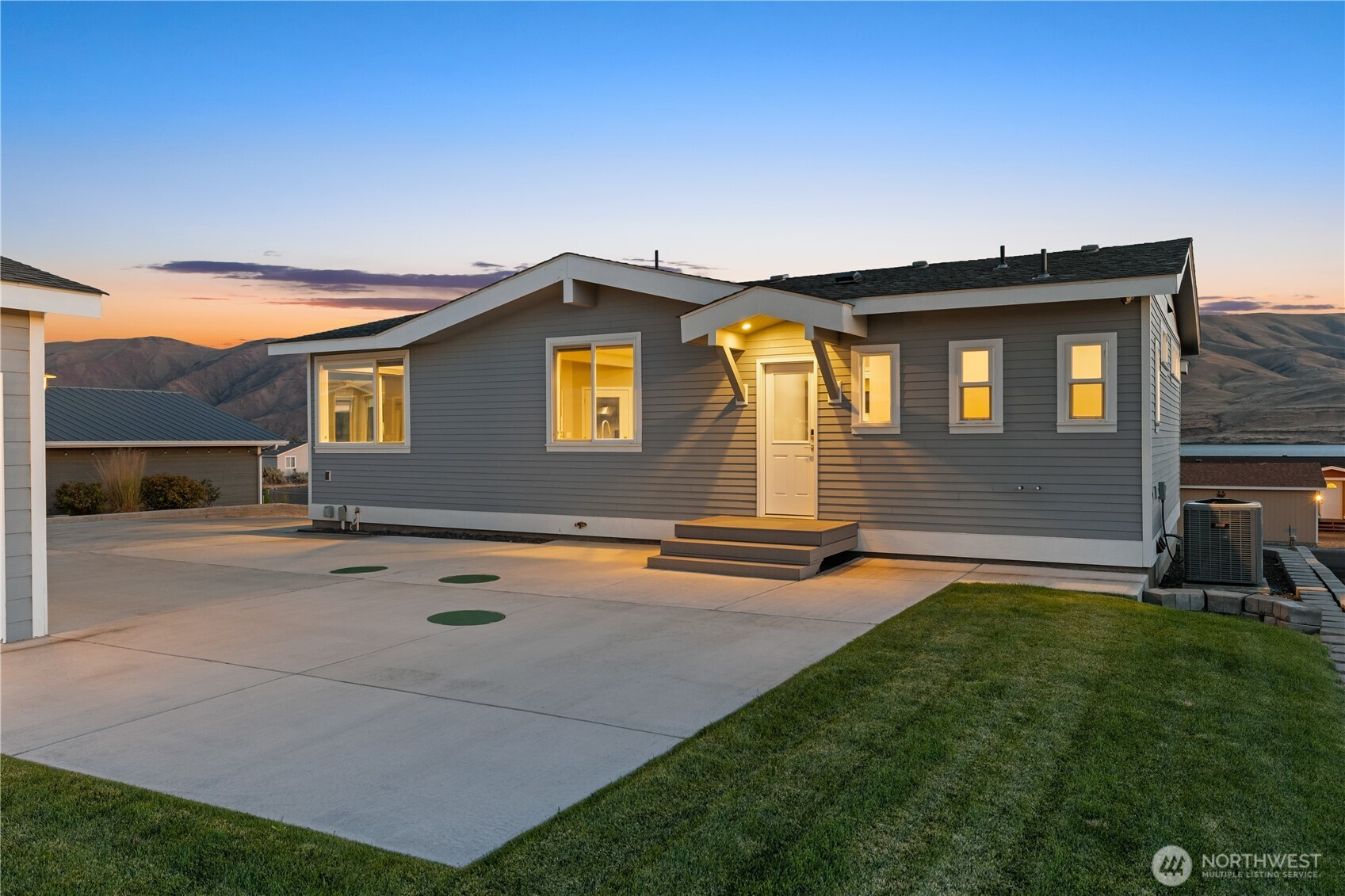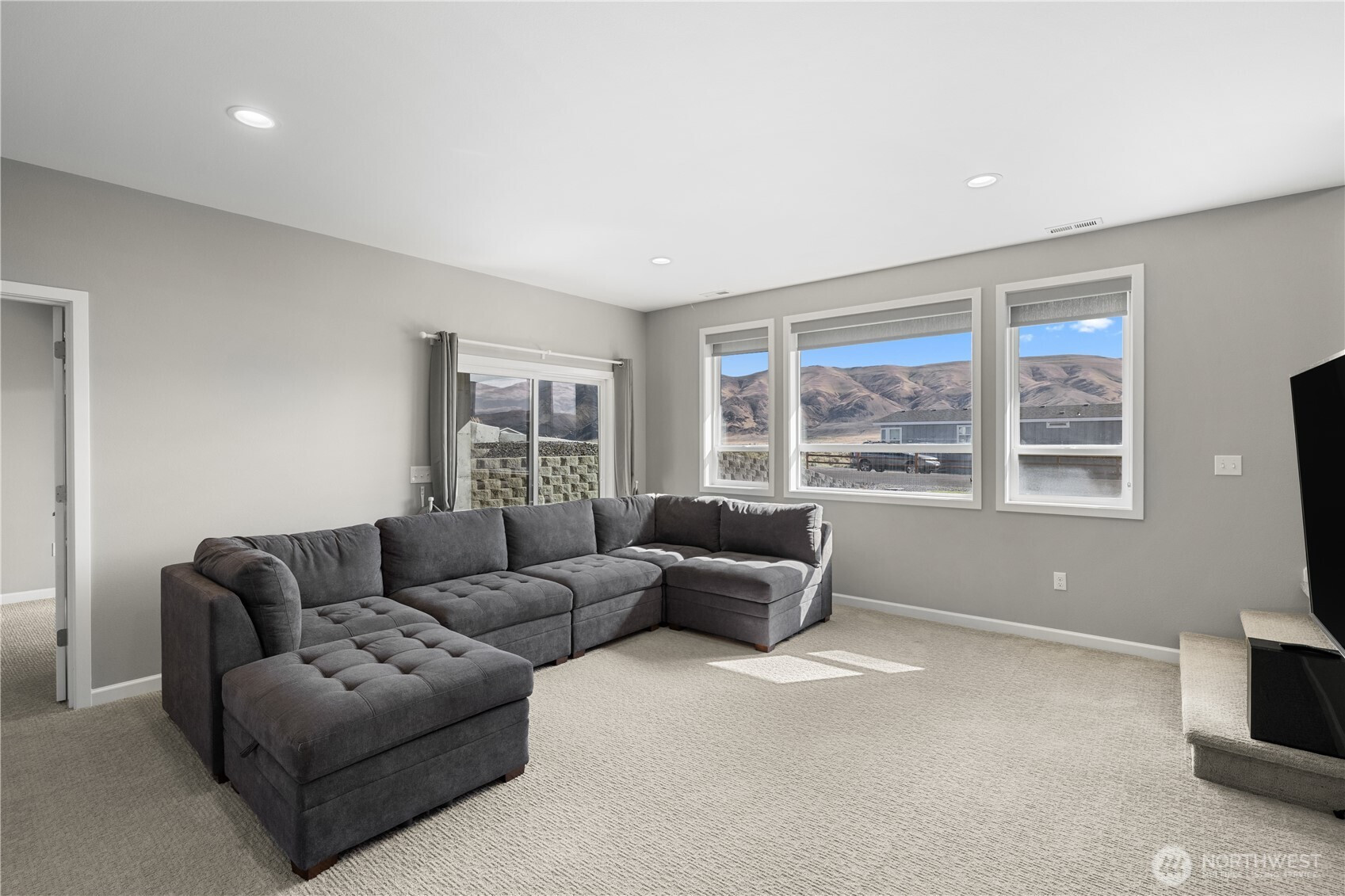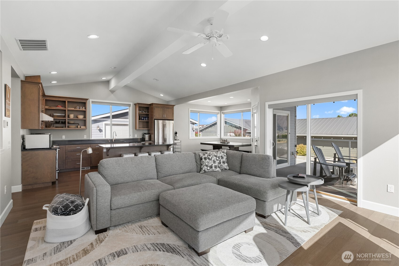 Experience elevated riverfront living in this beautifully appointed daylight rambler, ideally situated at the end of a quiet cul-de-sac in Desert Aire. Showcasing sweeping, unobstructed views of the Columbia River and surrounding mountains, this 3-bedroom, 2.5-bath home offers over 2,100 sq ft of thoughtfully designed living space. Vaulted ceilings and an open-concept layout create a bright, airy feel, while expansive windows capture the stunning scenery from nearly every room. The well-appointed kitchen features granite countertops and stainless steel appliances, ideal for both everyday living and entertaining. A versatile bonus room adds flexibility for a home office, media space, or guest area. Step outside to the covered back patio—perfect for enjoying peaceful mornings and unforgettable sunsets. The property also includes an oversized detached 3-car garage, providing ample space for vehicles, storage, or hobbies. Located within the Desert Aire community, enjoy access to premier amenities including a golf course, airfield, community pool and park, tennis courts, gym, walking trails, and boat launch—offering the ultimate in lifestyle and recreation.