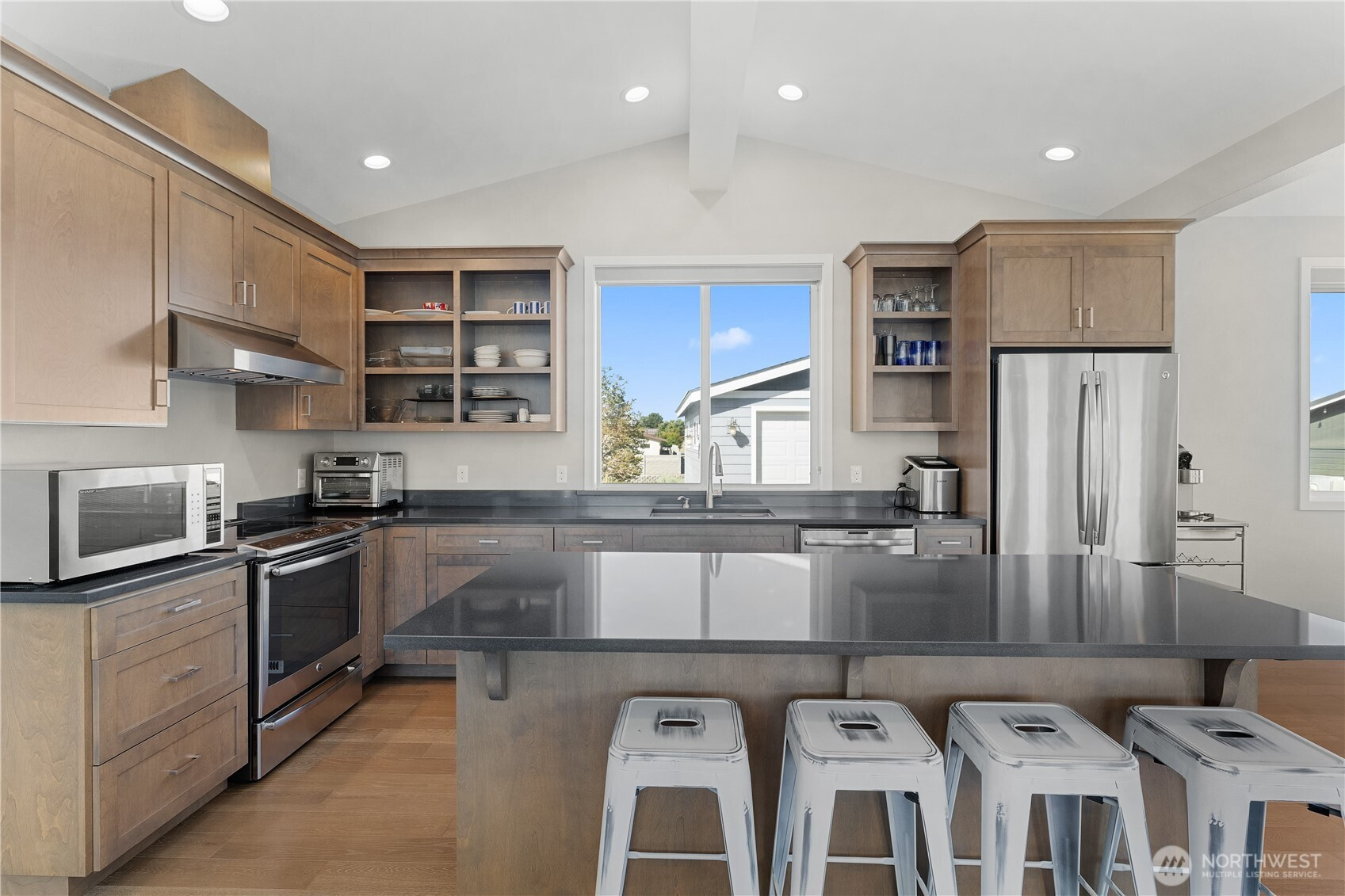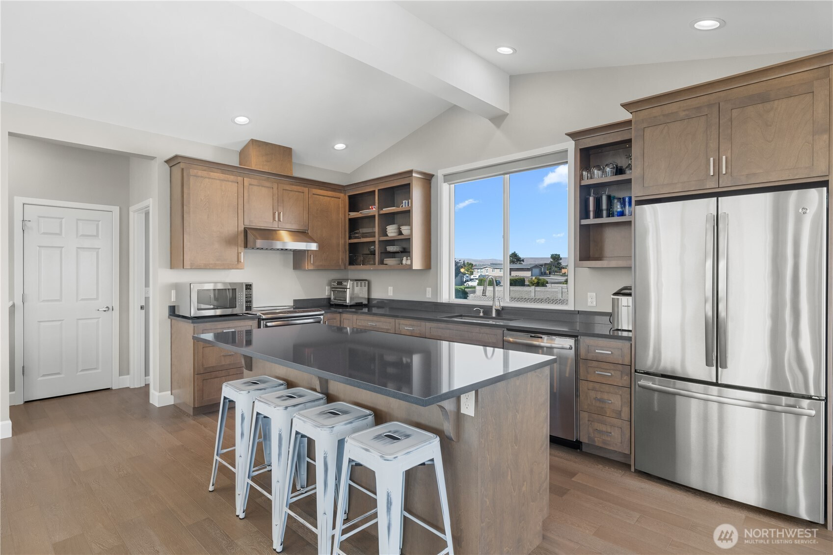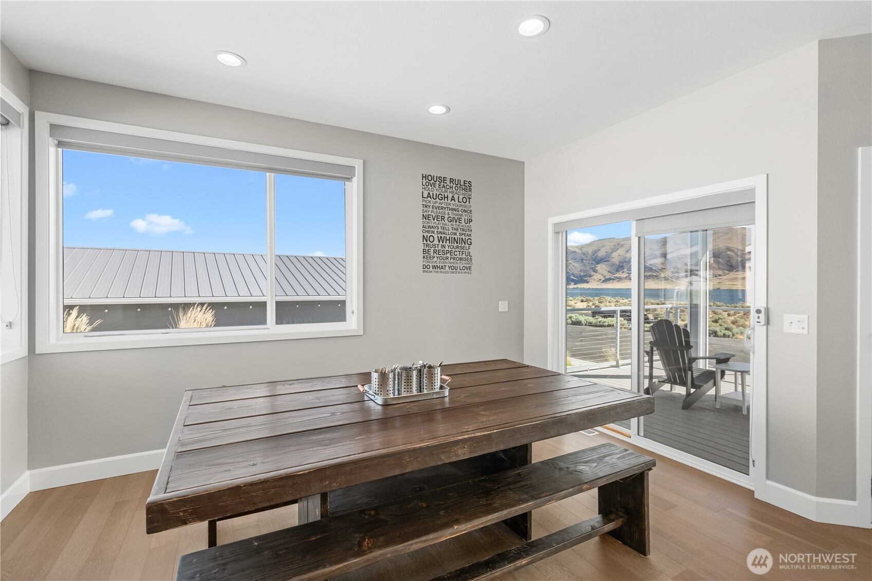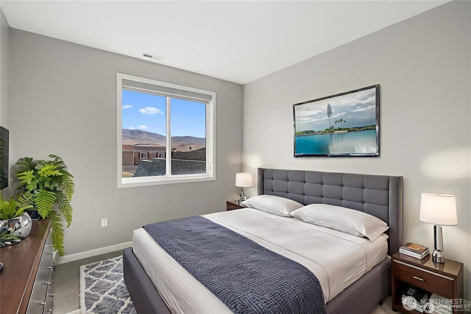 Experience elevated riverfront living in this beautifully appointed daylight rambler, ideally situated at the end of a quiet cul-de-sac in Desert Aire. Showcasing sweeping, unobstructed views of the Columbia River and surrounding mountains, this 3-bedroom, 2.5-bath home offers over 2,100 sq ft of thoughtfully designed living space. Vaulted ceilings and an open-concept layout create a bright, airy feel, while expansive windows capture the stunning scenery from nearly every room. The well-appointed kitchen features granite countertops and stainless steel appliances, ideal for both everyday living and entertaining. A versatile bonus room adds flexibility for a home office, media space, or guest area. Step outside to the covered back patio—perfect for enjoying peaceful mornings and unforgettable sunsets. The property also includes an oversized detached 3-car garage, providing ample space for vehicles, storage, or hobbies. Located within the Desert Aire community, enjoy access to premier amenities including a golf course, airfield, community pool and park, tennis courts, gym, walking trails, and boat launch—offering the ultimate in lifestyle and recreation.