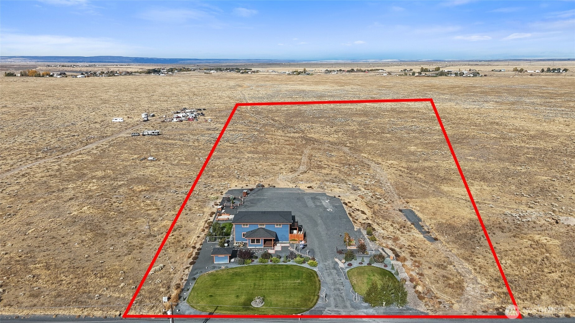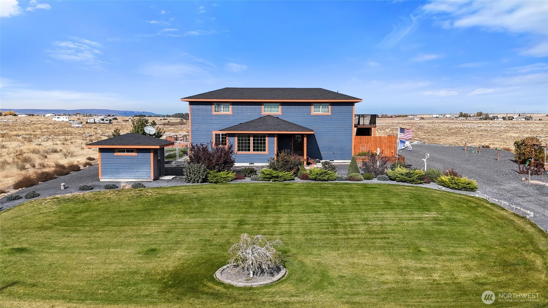 Experience peaceful country living in this unique, well-maintained 3-bed, 2-bath craftsman on nearly 10 acres with Quincy Basin water rights. Thoughtfully designed to fit the land, the home offers privacy with the 1,500 sq ft fully finished 4-car garage facing open space. Inside features rustic charm with wood-look porcelain tile floors, quartz counters, under-cabinet lighting, and warm wood finishes. Upstairs is a versatile space, making a perfect rec room or 3rd Bedroom. Enjoy the hot tub patio on one side and a 1,500 sq ft pet kennel with dog door on the other. Beautiful landscaping with fruit trees, grapes, and raised garden beds complete this must-see 2,268 sq ft home. Owner financing available!