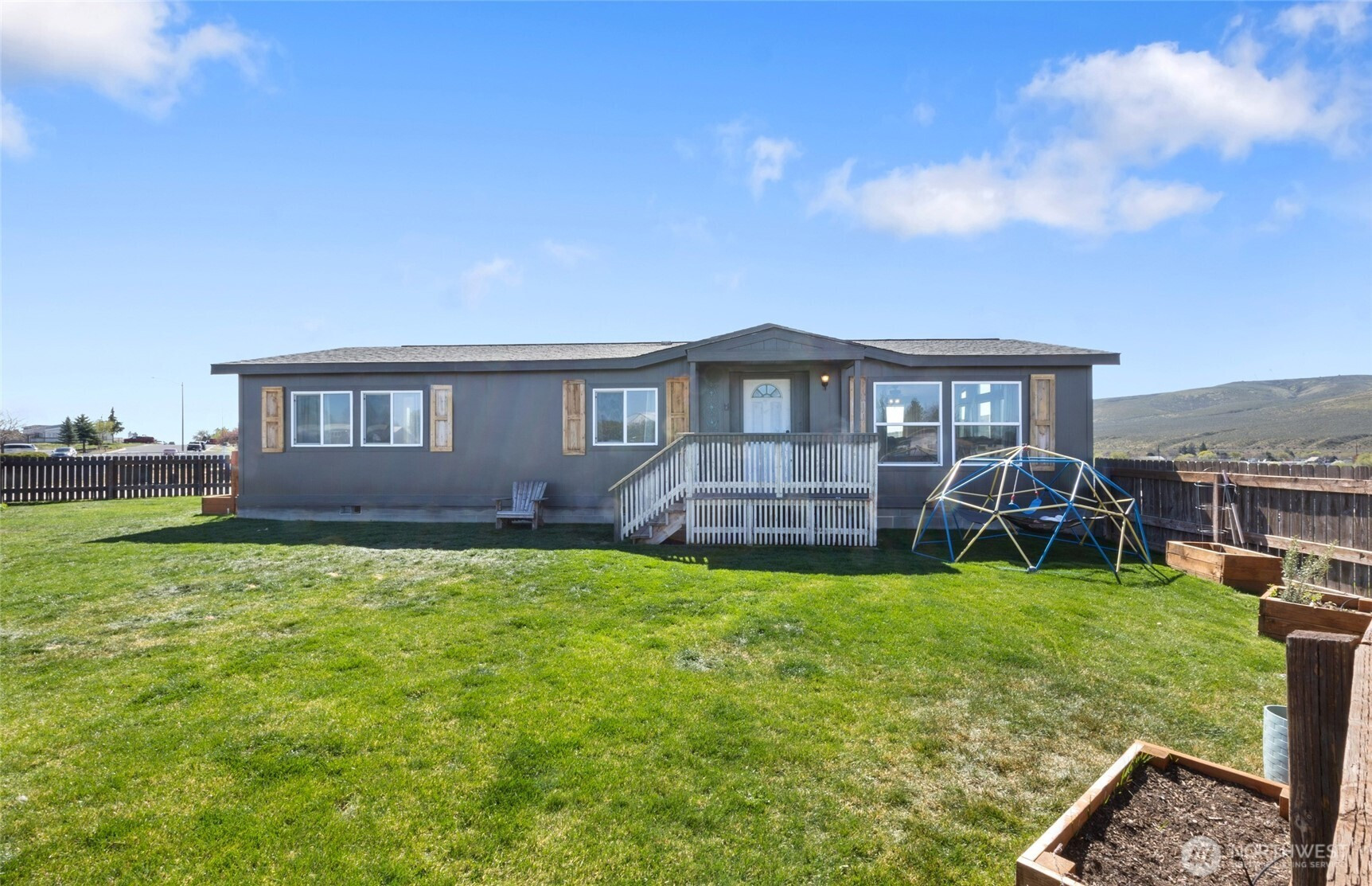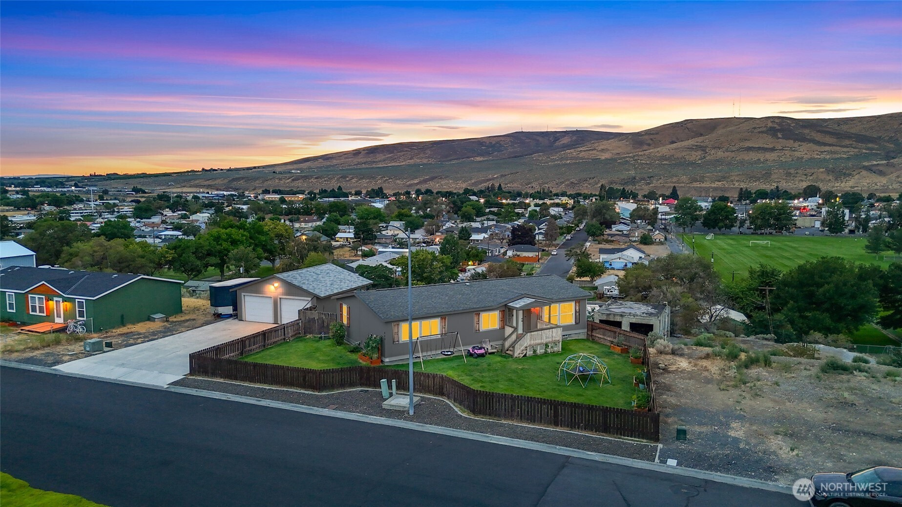 Brand new exterior paint and new LVP flooring throughout add fresh appeal to this beautifully maintained 3-bedroom, 1,404 sq. ft. home on just over an acre. Enjoy breathtaking western-facing panoramic sunset views and an open-concept layout that flows seamlessly from the living area to the kitchen, creating a bright and inviting space for everyday living and entertaining. The spacious primary suite offers a private retreat with dual vanities, a soaking tub, and separate shower. Outside, enjoy a large deck, fully fenced yard, and underground sprinklers—perfect for gatherings and outdoor enjoyment. Additional highlights include a detached 2-car garage and a versatile concrete outbuilding (old CWC concrete plant in the 50-60's) ideal for hobbies, a workshop, or bonus entertainment space. Conveniently located just minutes from the Ephrata Sports Complex, Splash Zone Water Park, and charming downtown Ephrata.