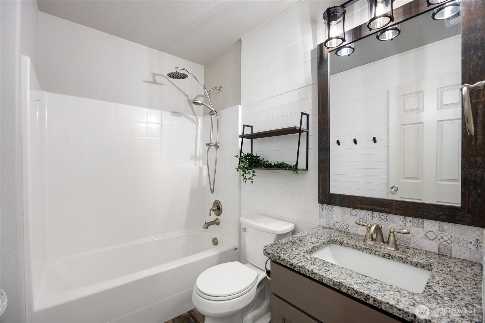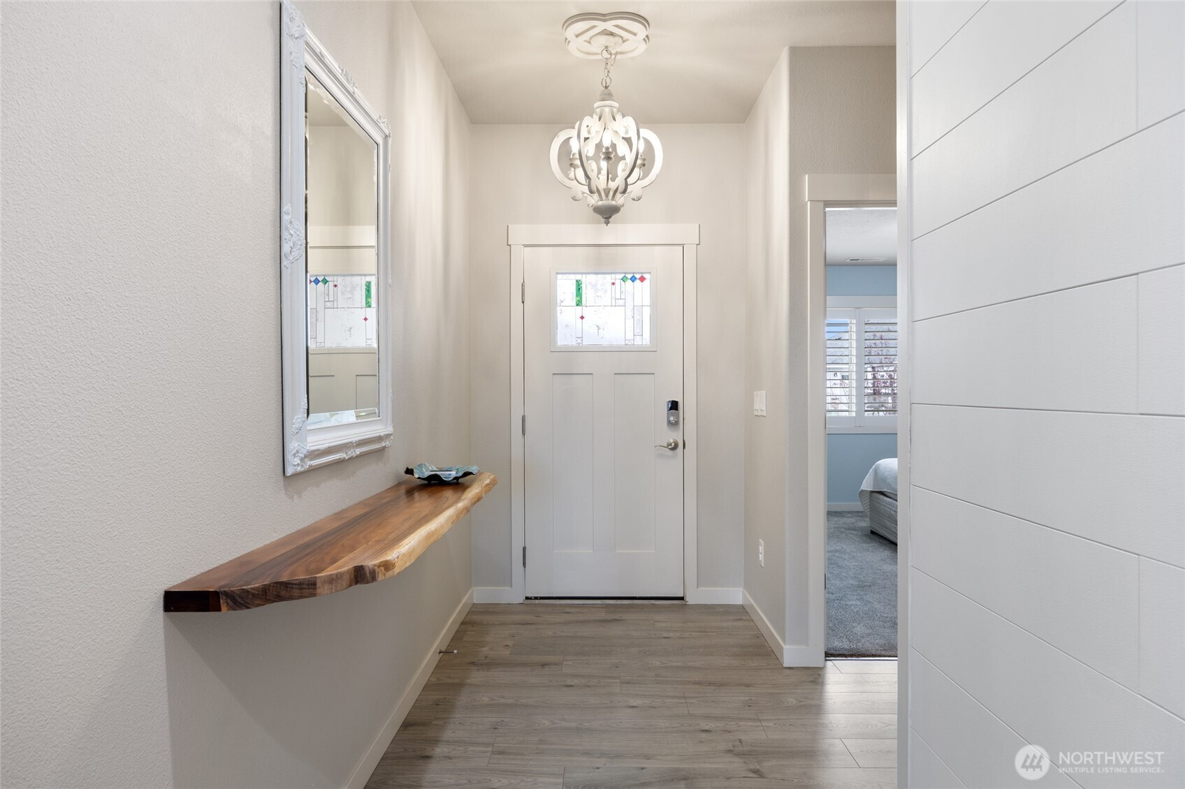 Discover this beautifully crafted Alderbrook custom home offering 1,782 sq. ft. of thoughtful design and quality upgraded custom built-ins and finishes. Enjoy 3 spacious bedrooms, 2 modern bathrooms, and an inviting great room with electric fireplace in the uniquely designed shiplap wall with custom shelves. There's laminate flooring throughout and the gourmet kitchen features stunning granite countertops, perfect for cooking and entertaining with a sit-up bar for 5 stools. The primary suite includes a convenient bathroom with a barndoor, added for comfort and privacy and located at the back of the house. The other bedrooms are separated, one at the front, close to the front door and the other at the back on the other side of the house by the laundry room. A fully insulated and sheet-rocked 3-car garage provides ample space for vehicles, storage, or hobbies. One bay is separated by a wall for storage or workshop but is also useable as a 3rd garage. Step out the back slider to a covered patio with a hot tub in the fully level landscaped yard with underground sprinklers, a 6' fence creating a private low-maintenance outdoor oasis. Even the side of the home is landscaped with pavers and solar lighting. This home is packed with upgrades and thoughtful touches, and there's so much more. Truly a must-see for anyone seeking comfort, style, and quality craftsmanship including the wood wrapped windows and shutters. Call now!