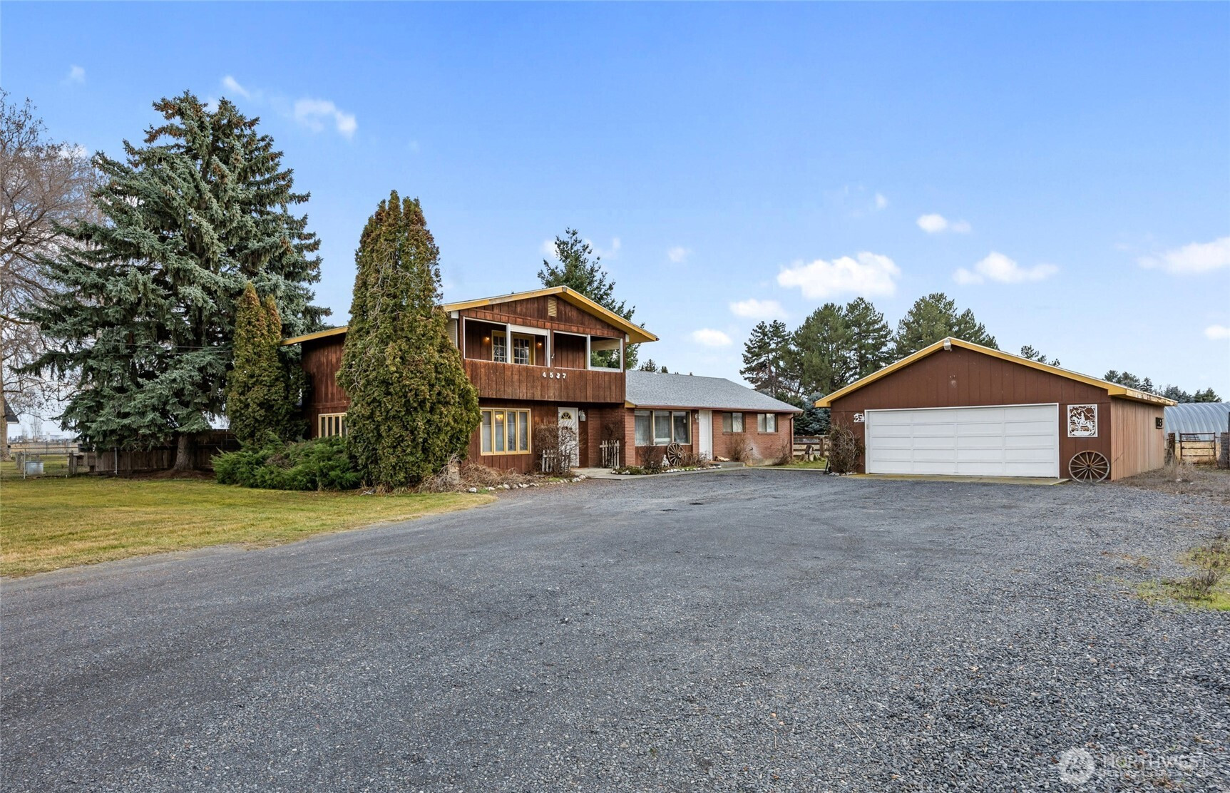 Exceptional chance to own a charming 4-bedroom, 2-bath home in the sought-after Skyline Acres neighborhood! Nestled on nearly 2 acres, this property perfectly balances peaceful country living with easy access to town.The fully fenced and irrigated pasture features underground sprinklers, perfect for a horse or cow, gardening, or small-scale farming. You’ll also find a spacious 2,160 sq ft farm utility building plus a 600 sq ft lofting shed, offering plenty of room for storage & equipment. Inside are both a huge living room and a family room with a fireplace. The primary suite is upstairs and has a 4-piece bath with soaker tub, walk-in closet and a large veranda/balcony. Enjoy quiet moments on the back patio or soak your cares away in the covered hot tub gazebo/retreat. The extended 4-car garage can comfortably accommodate your vehicles or provide extra space for a workshop. Ample room to roam and grow, and in this coveted area! New roof and fresh paint inside & a security system too! Check it out now!