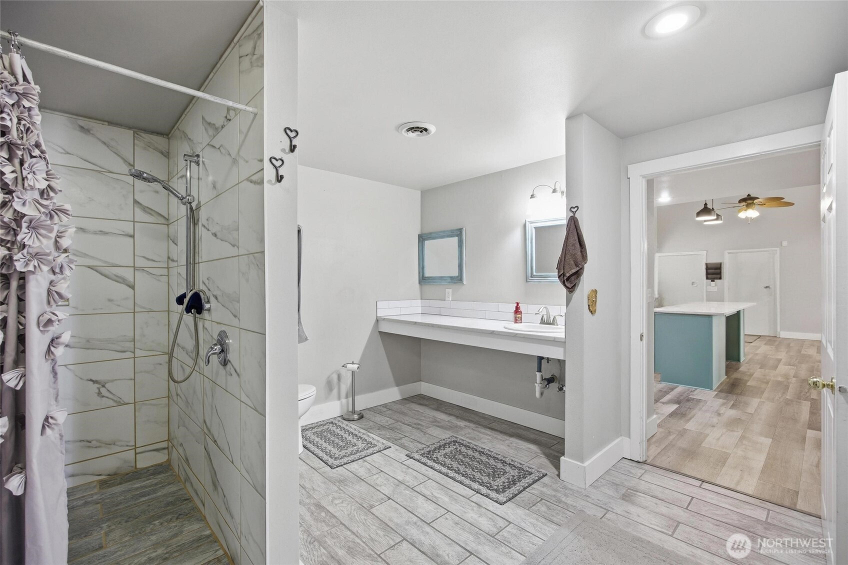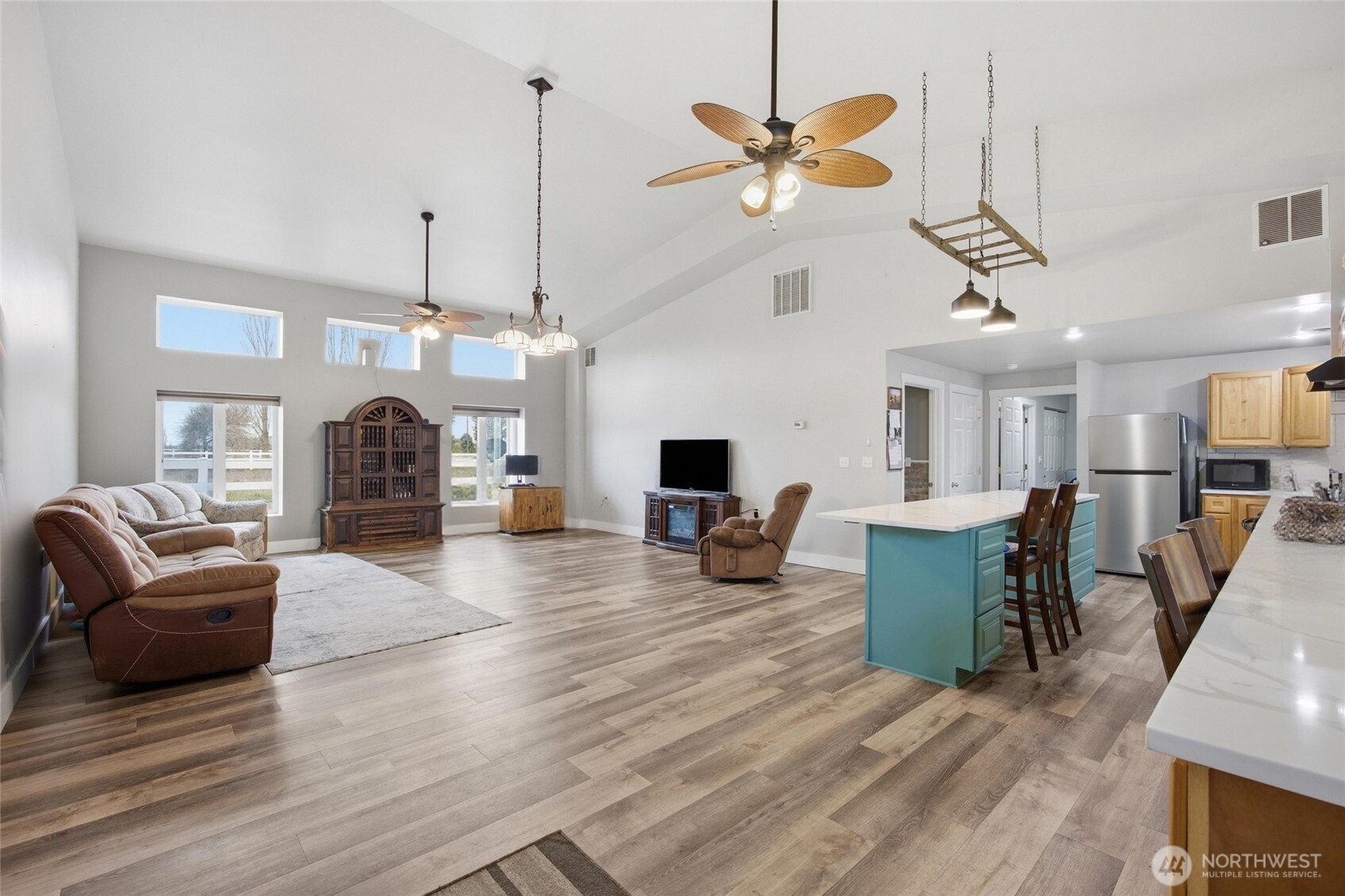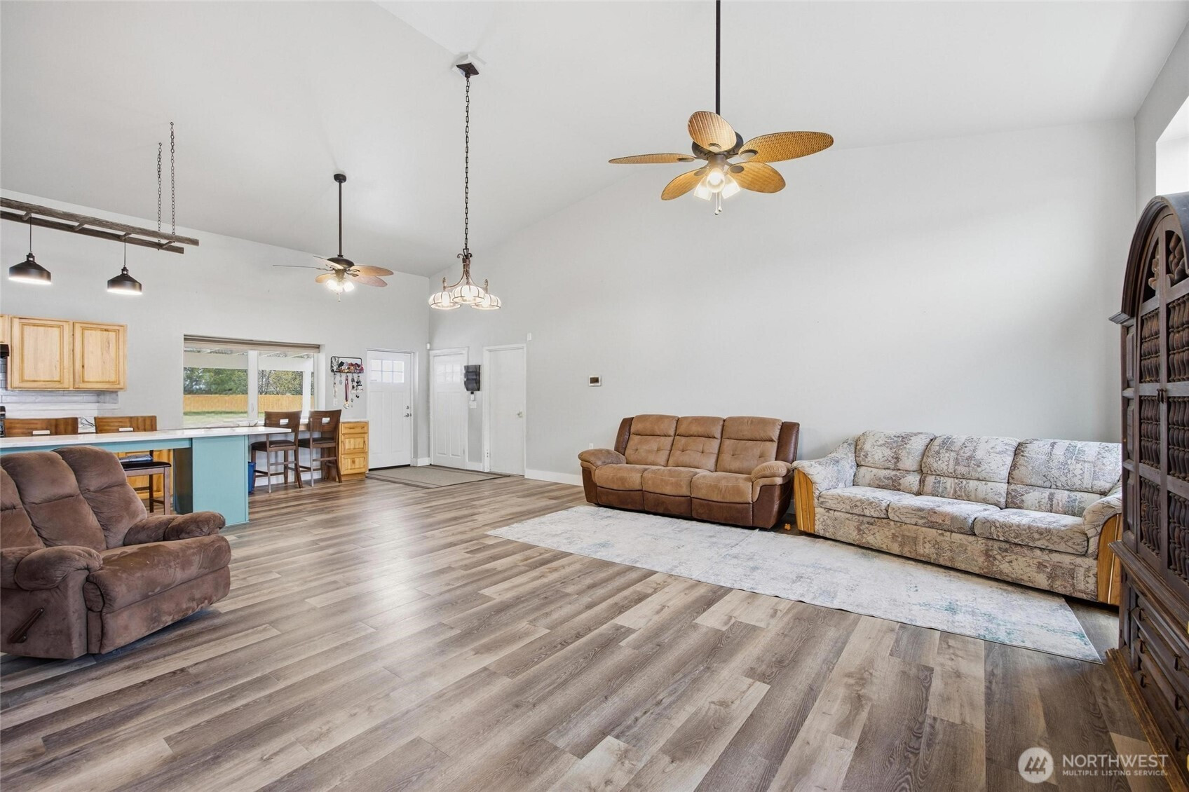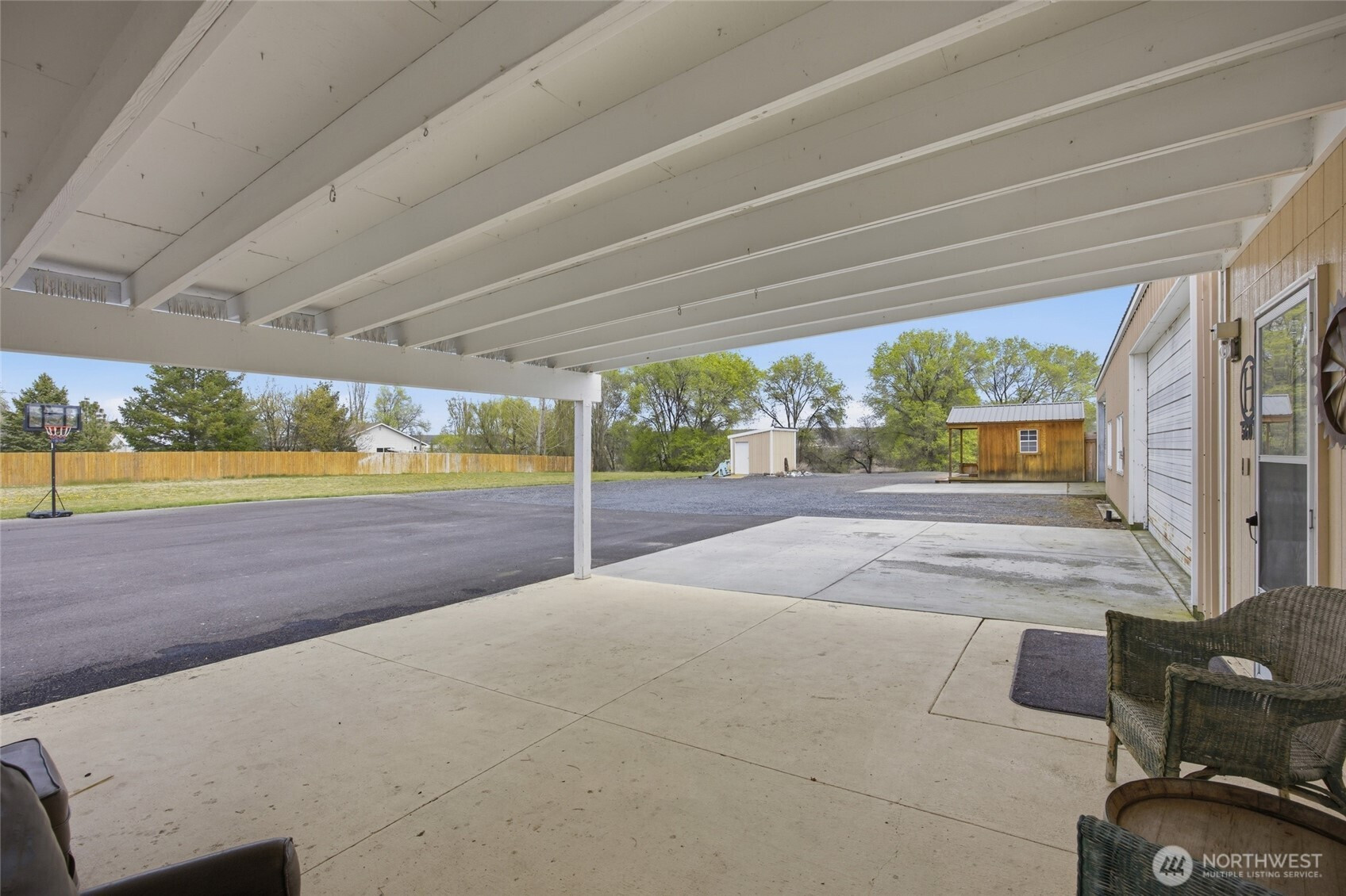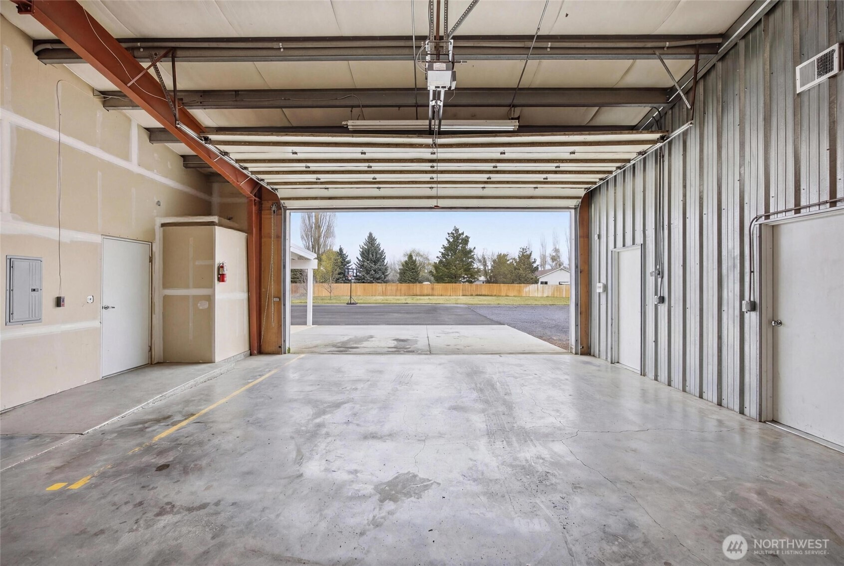 Rare opportunity to own 2 separate parcels (1.49 acres each) totaling 2.98±/- acres with a finished 1,040 sq ft 1-bed barndominium. Second flag lot (separate parcel #) is ready to build. Fully fenced property with private well, mature trees, landscaping, and large covered front patio for year-round enjoyment. The 32x110 shop features 3 overhead doors, central heat/AC, and Generac backup generator. Full RV hookups with concrete pad. Detached shed with mini-split offers flexible use. ADA-compliant design with zero-step entry to all water areas and doorways. Remodeled kitchen with hickory cabinets, quartz counters, and stainless appliances. Vaulted ceilings in living/kitchen and LVP flooring throughout. Versatile property with privacy, functionality, and future potential.