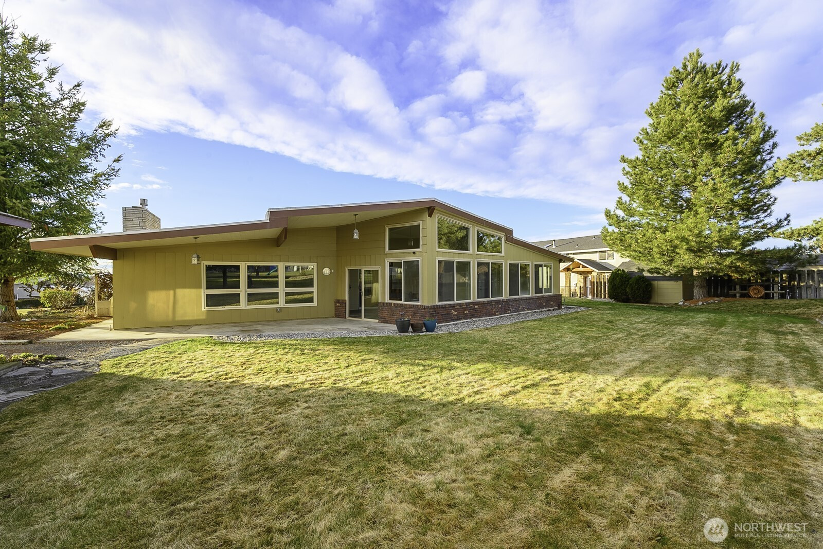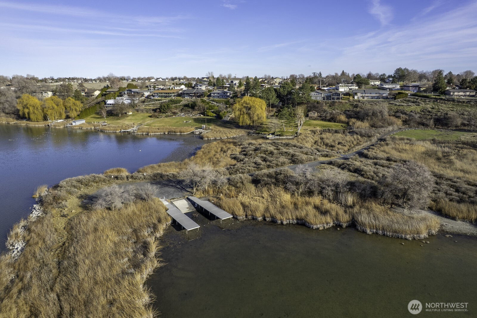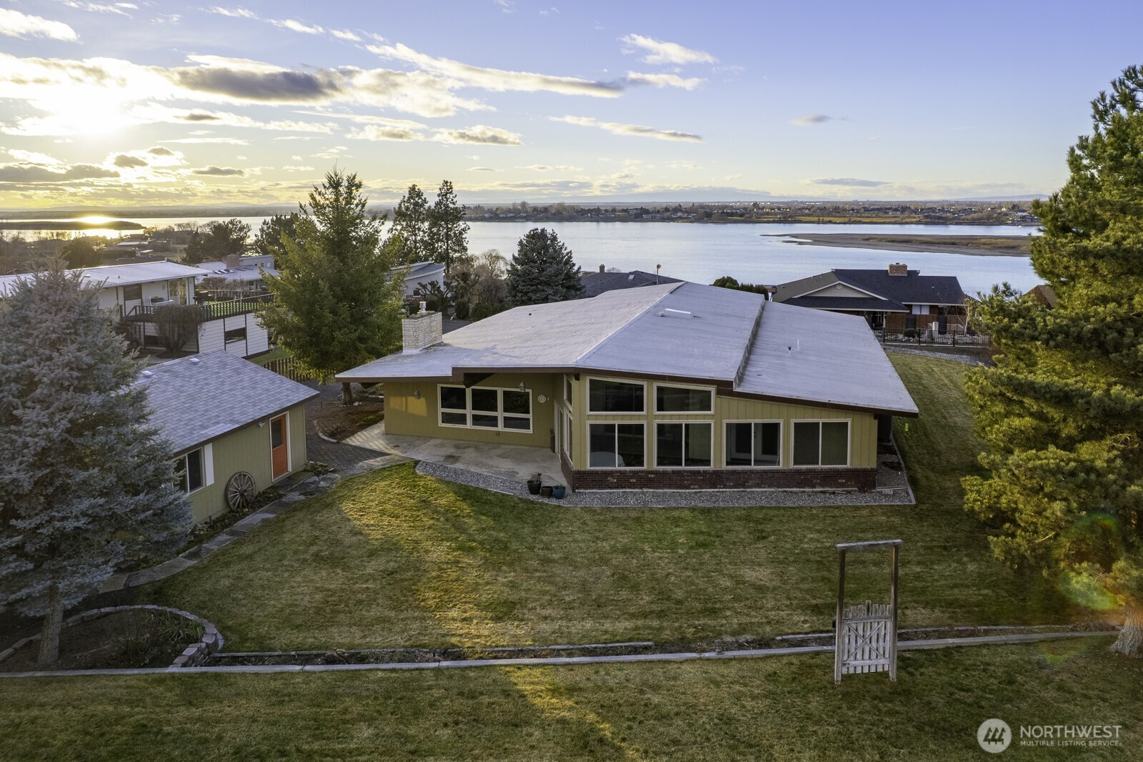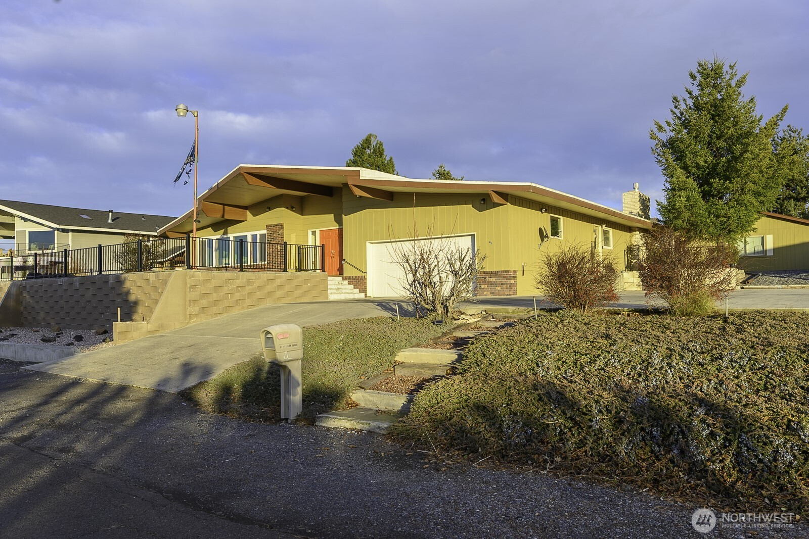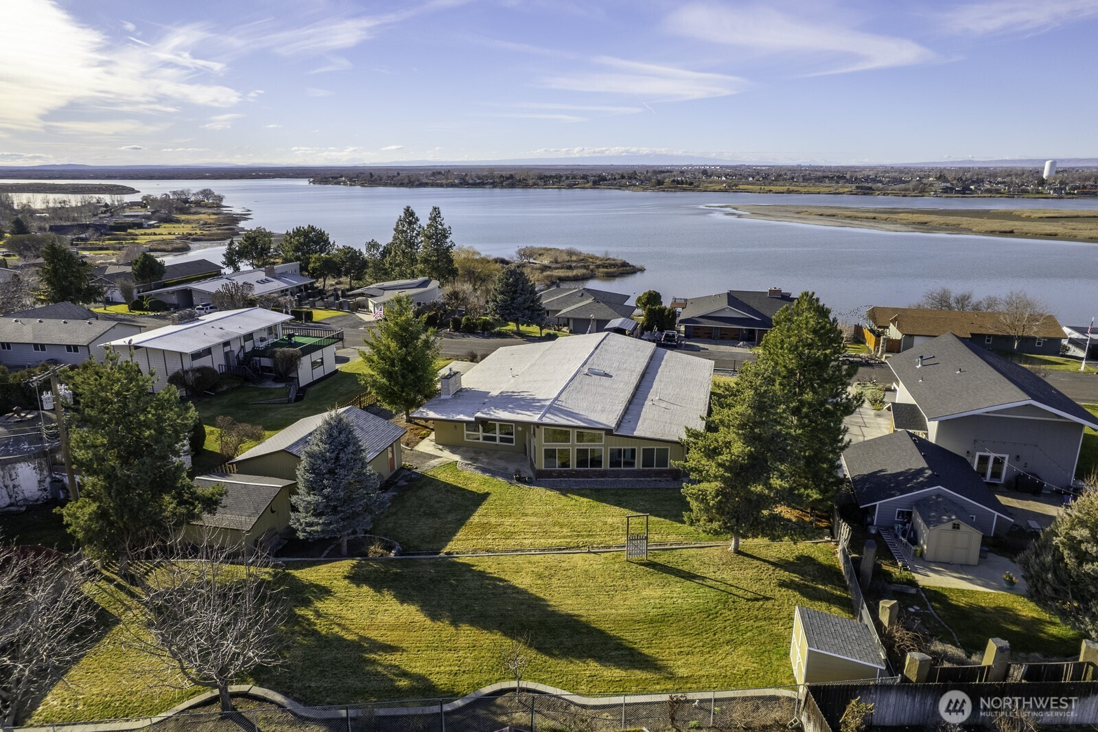 Step into timeless style with this 1970s post-modern ranch home, where retro character meets relaxed living. This 4-bedroom residence is defined by its low-slope roofline, expansive windows, vaulted ceilings, and a light-filled sunroom with access to the Primary Ensuite! A classic sunken living room perfectly captures the era’s architectural flair. The large family room is complemented by a propane fireplace, a built-in bar, and has easy access to a ½ bath. Enjoy an oversized wood deck extending from the front entry with sweeping views of Moses Lake, the Cascades, and Sunset Views. The surrounding partially fenced yard is a hobbyist’s dream with two small shops, other storage sheds, UGS, plenty of garden and play space, PLUS RV parking. The primary and guest baths have been updated. Garage features an electric truck canopy lift. Property includes a second parcel in the far backyard, Parcel #170895027. Access to the Private Park with a boat launch, HOA & CCRs. With its retro vibe, quirky charm, and unmistakable personality, this Pelican Point home is a rare find for those who appreciate character, views, and a bold architectural statement.