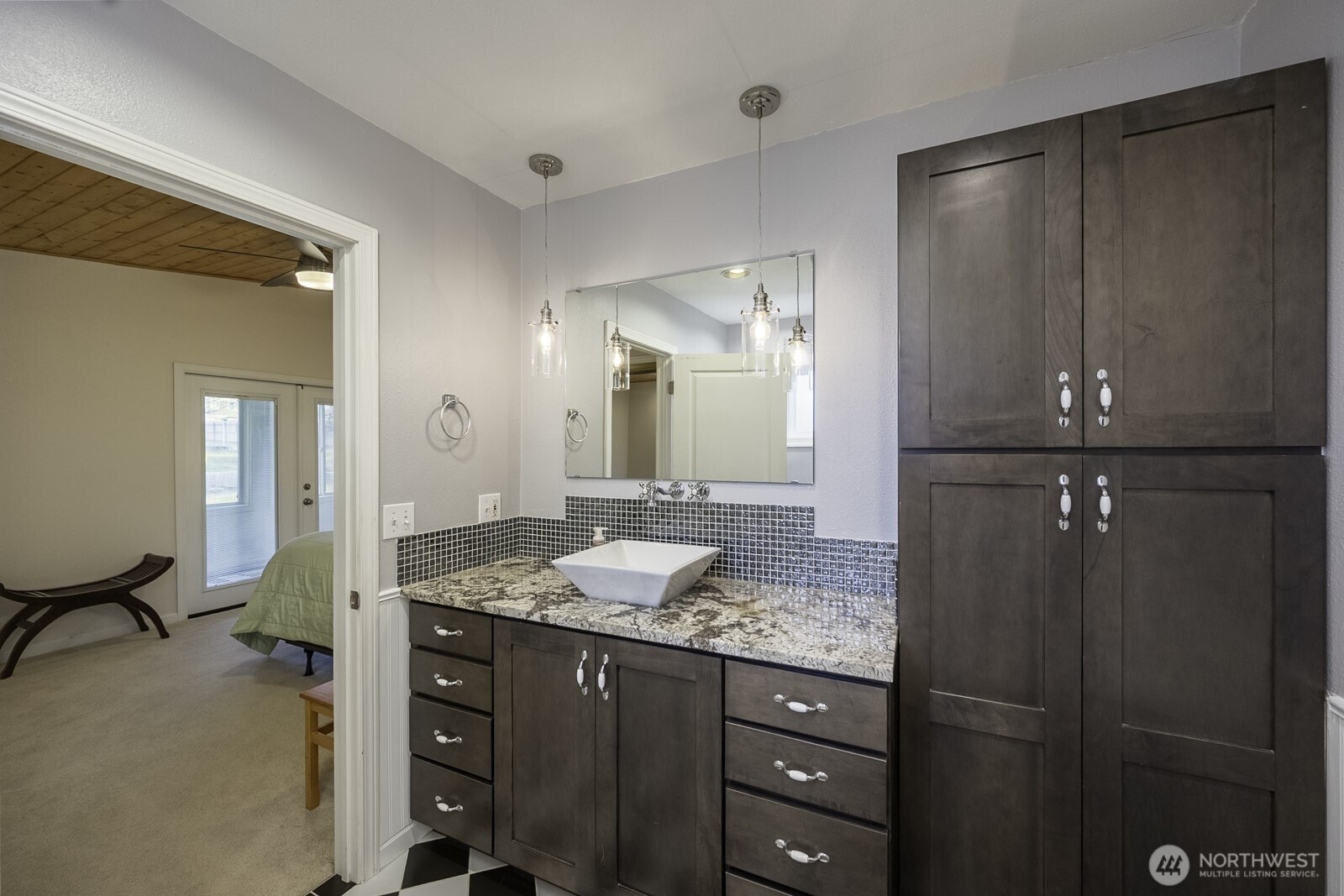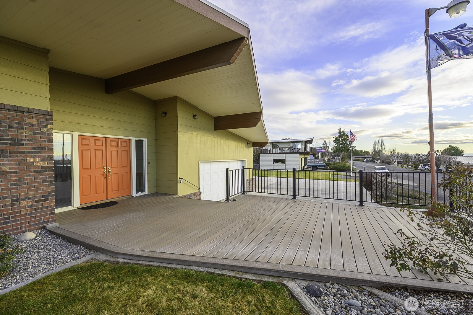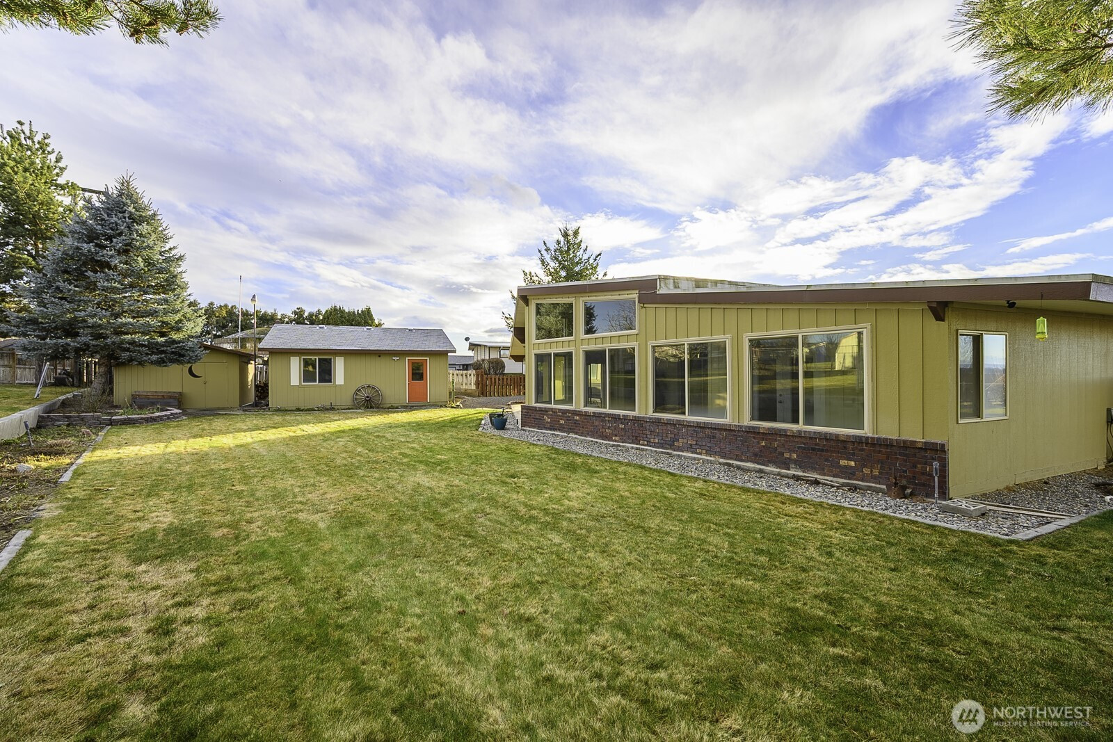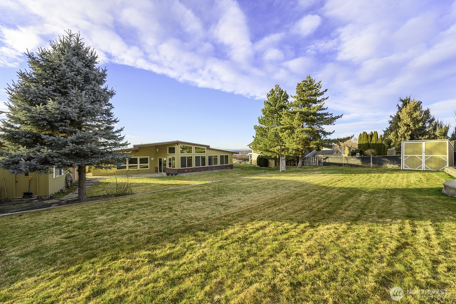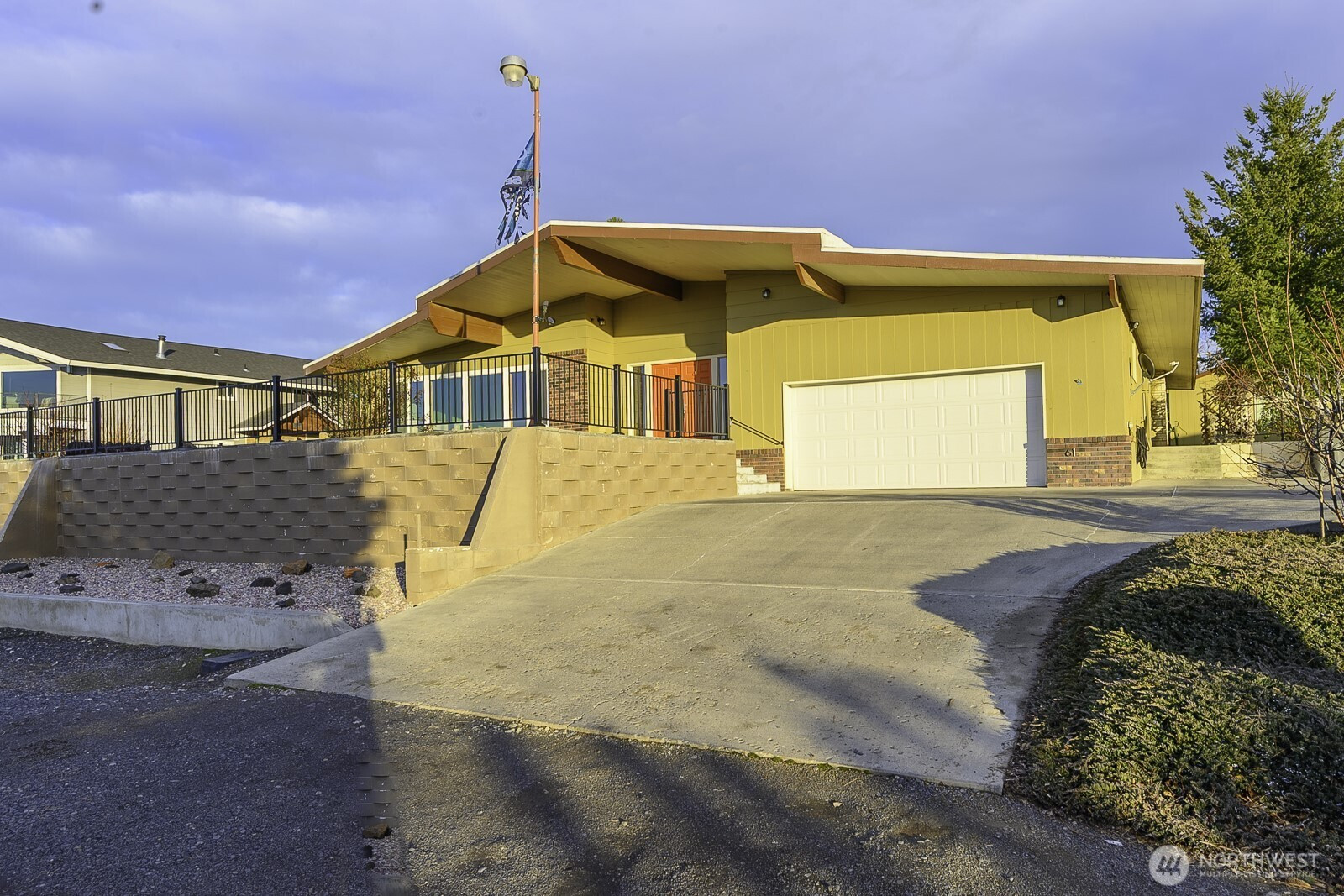 Step into timeless style with this 1970s post-modern ranch home, where retro character meets relaxed living. This 4-bedroom residence is defined by its low-slope roofline, expansive windows, vaulted ceilings, and a light-filled sunroom with access to the Primary Ensuite! A classic sunken living room perfectly captures the era’s architectural flair. The large family room is complemented by a propane fireplace, a built-in bar, and has easy access to a ½ bath. Enjoy an oversized wood deck extending from the front entry with sweeping views of Moses Lake, the Cascades, and Sunset Views. The surrounding partially fenced yard is a hobbyist’s dream with two small shops, other storage sheds, UGS, plenty of garden and play space, PLUS RV parking. The primary and guest baths have been updated. Garage features an electric truck canopy lift. Property includes a second parcel in the far backyard, Parcel #170895027. Access to the Private Park with a boat launch, HOA & CCRs. With its retro vibe, quirky charm, and unmistakable personality, this Pelican Point home is a rare find for those who appreciate character, views, and a bold architectural statement.