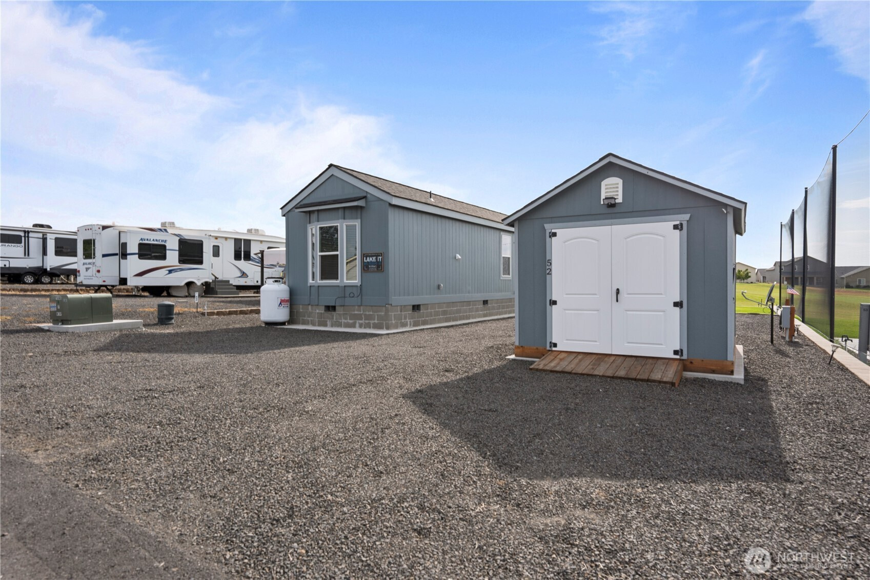 Welcome to your own slice of paradise on the 5th hole of the beautiful Legacy Golf Course on your OWN LAND! This charming & FULLY FURNISHED tiny home offers luxury, comfort, & convenience in one package. Features include a queen-size zero gravity mattress, queen sleeper sofa, AC, stainless steel appliances, full bath, & cozy bedroom. Large covered 120 sq ft deck w/gas hookup, overlooking the manicured yard w/sprinkler system & lake views. Good size shed with storage, & RV parking with full hookups! This gated community offers walking distance to the store & restaurant, & just a short drive from shopping, local wineries, & the amphitheater. Whether you’re looking for a getaway, a turnkey vacation home, or an investment, this property is truly one-of-a-kind.