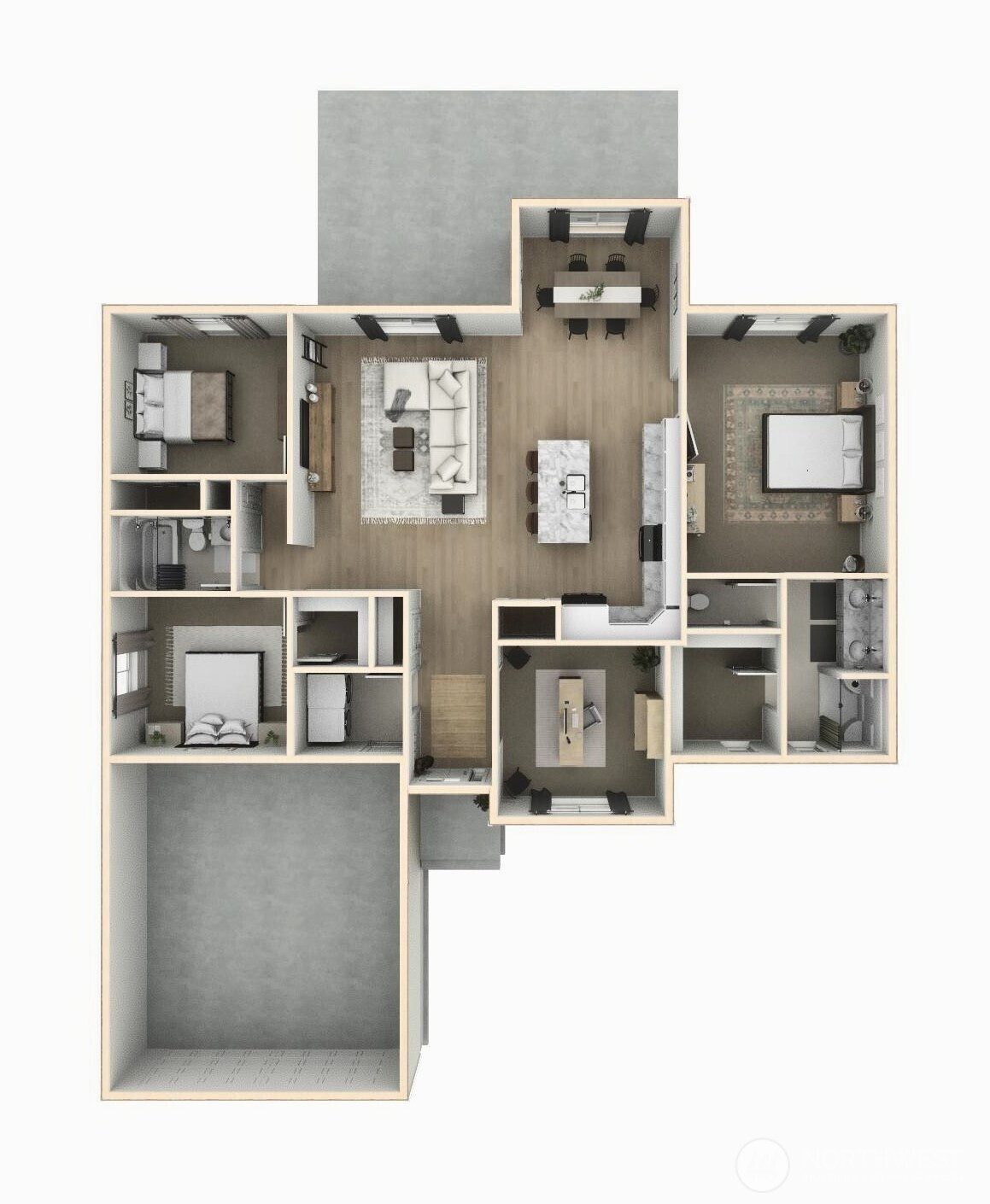 Experience modern living in this under-construction 3-bedroom, 2-bath home with an additional den/flex space by CAD Homes, located in the gated Legacy Resort at Frenchman Hills. This community is known for its incredible panoramic views and abundant outdoor recreation including golf, boating, fishing, and hiking. Buyer customization may still be possible depending on the stage of construction. This thoughtfully designed floor plan features a spacious 3-car garage, a covered back porch with beautiful pine soffits, and full landscaping included. Inside, the home will showcase modern finishes and quality upgrades throughout, including laminate flooring throughout the home, solid wood cabinetry, and quartz or granite countertops throughout with full-height backsplash. The kitchen is designed for both style and functionality with a stainless steel appliance package and ample space for cooking, gathering, and entertaining. The primary suite offers a private retreat complete with an attached bathroom featuring a fully tiled shower with both a rain shower head and handheld shower head. Located in a gated resort-style community, this property is ideal as a primary residence, vacation home, or investment opportunity. Easy access to fishing, boating, golfing, hiking, and the famous Gorge Amphitheatre concerts. Call for a tour! Other lots and plans available by CAD homes in the development. *Photos are of a previously completed home with different selections*