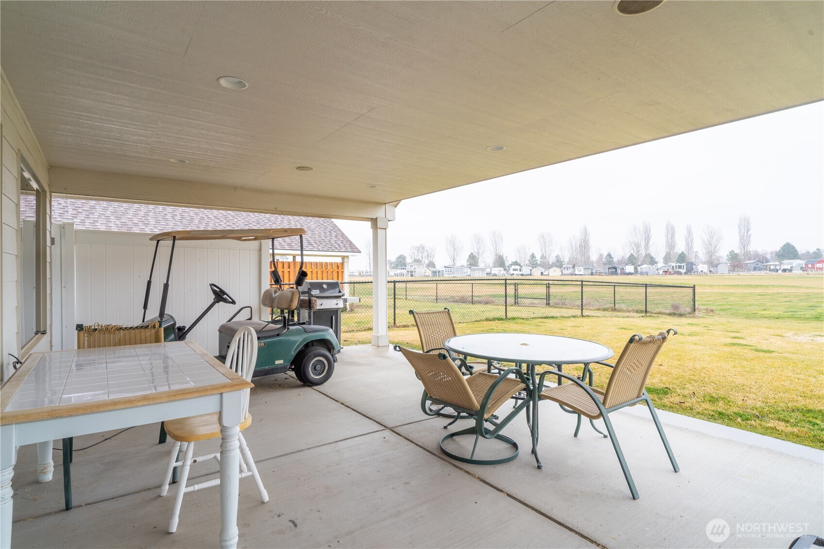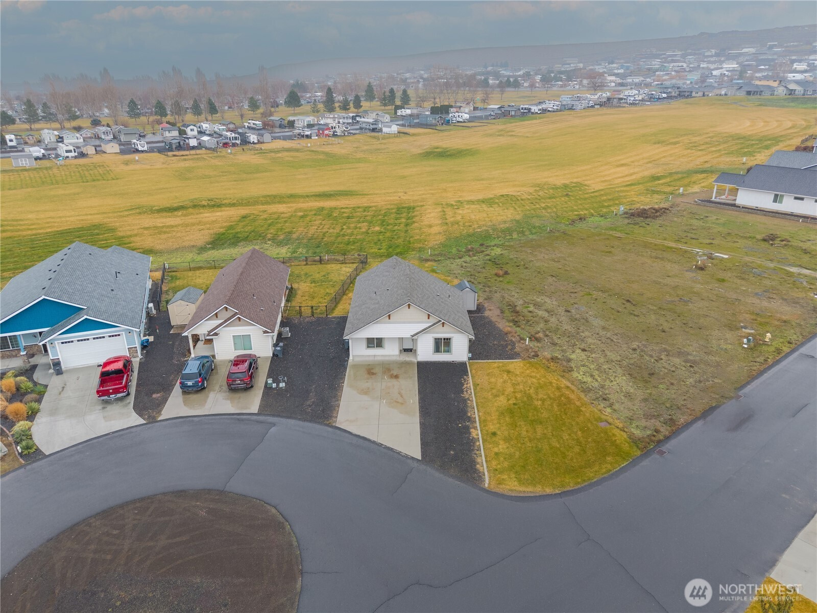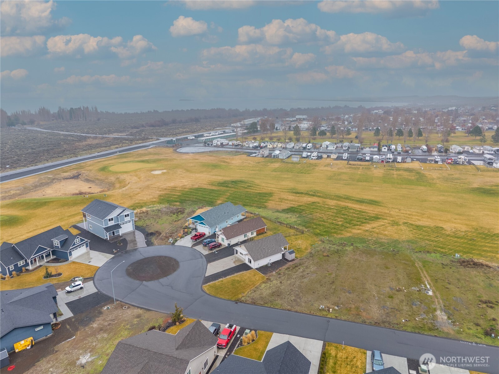This charming 2-bedroom, 1.75-bath cottage in the gated Legacy Resort at Frenchman Hills offers the perfect blend of relaxation and recreation. Built in 2015, this well-maintained single-story home (~993 sq ft) sits on a level lot with prime views overlooking the golf course and nearby lake—making every day feel like a vacation. Enjoy 18-hole golf right outside your door, plus easy access to Potholes Reservoir for boating, fishing, and water sports. The community features low HOA fees, walking paths, and a peaceful desert setting with 300+ sunny days a year—ideal for year-round enjoyment, whether as a primary residence, weekend retreat, or investment property. Inside, find an open layout with modern touches: hardwood and tile flooring, ceiling fans, walk-in pantry, bath off primary, and all appliances included. Exterior perks include an east facing covered patio (15'x24') for perfect shaded evening entertaining, sprinkler system, and gated entry for added privacy and security. A 40'x10' Parking space is setup for an RV/Boat. 50 Amp exterior outlet for your RV or electrical vehicle. HOA dues are $97 /mo and include common area maintenance. Water/Sewer is provided by the HOA for $70 /mo. Spend a little time here and you might not miss the big city.