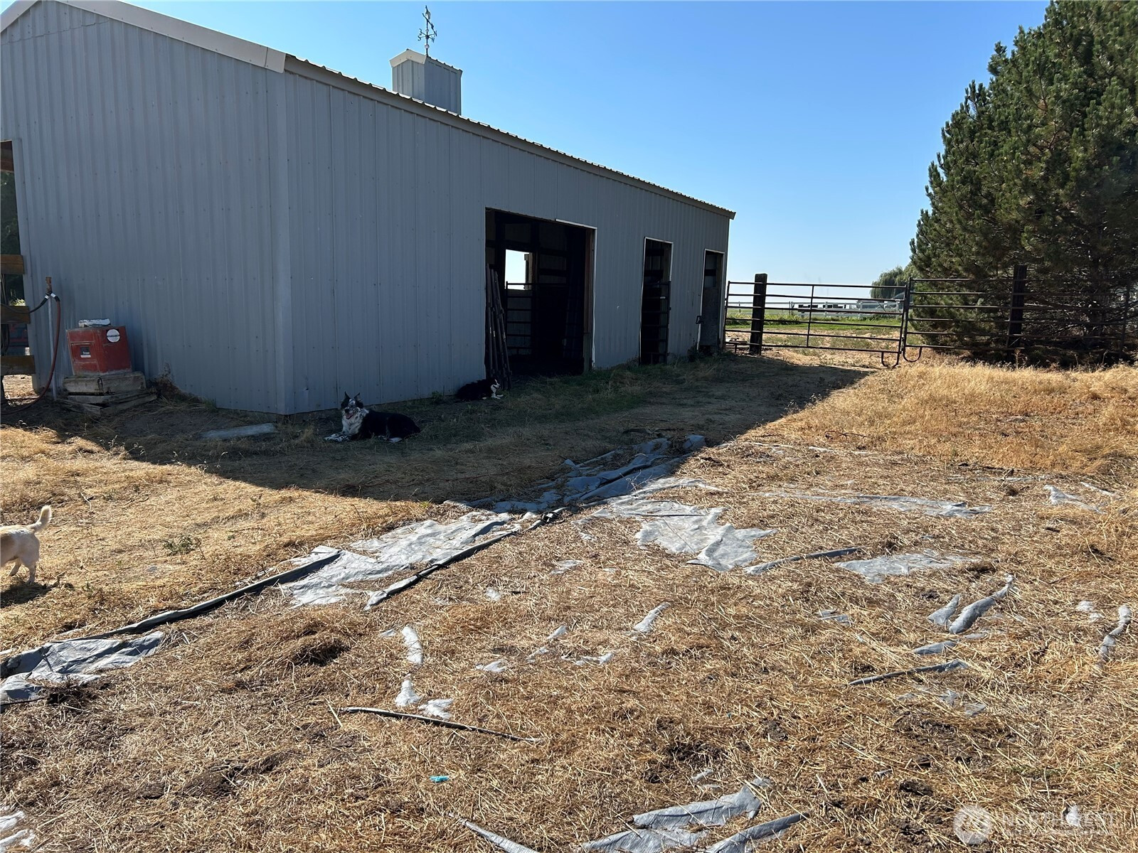 Valley Quality Triple Wide on 10 irrigated acres. 3 beds, den, 2.5 baths. New roof. There is a full concrete foundation under the home. View property to the east & west. Two separate pastures in orchard grass with underground in upper pasture and wheel line on lower pasture. Three car garage w/shop. Three stall horse barn with storage/tack room has power, water and corral. Many mature trees makes this a park like setting. Green house and large garden area with many flowers planted for pollinators. Just 10 minutes from town. Block 40, East Columbia Irrigation, approx. $1100/year for water & power. There is a water assoc. for irrigation water. No HOA. Private well and septic. Ring cameras excluded. Seller is a WA State licensed broker.