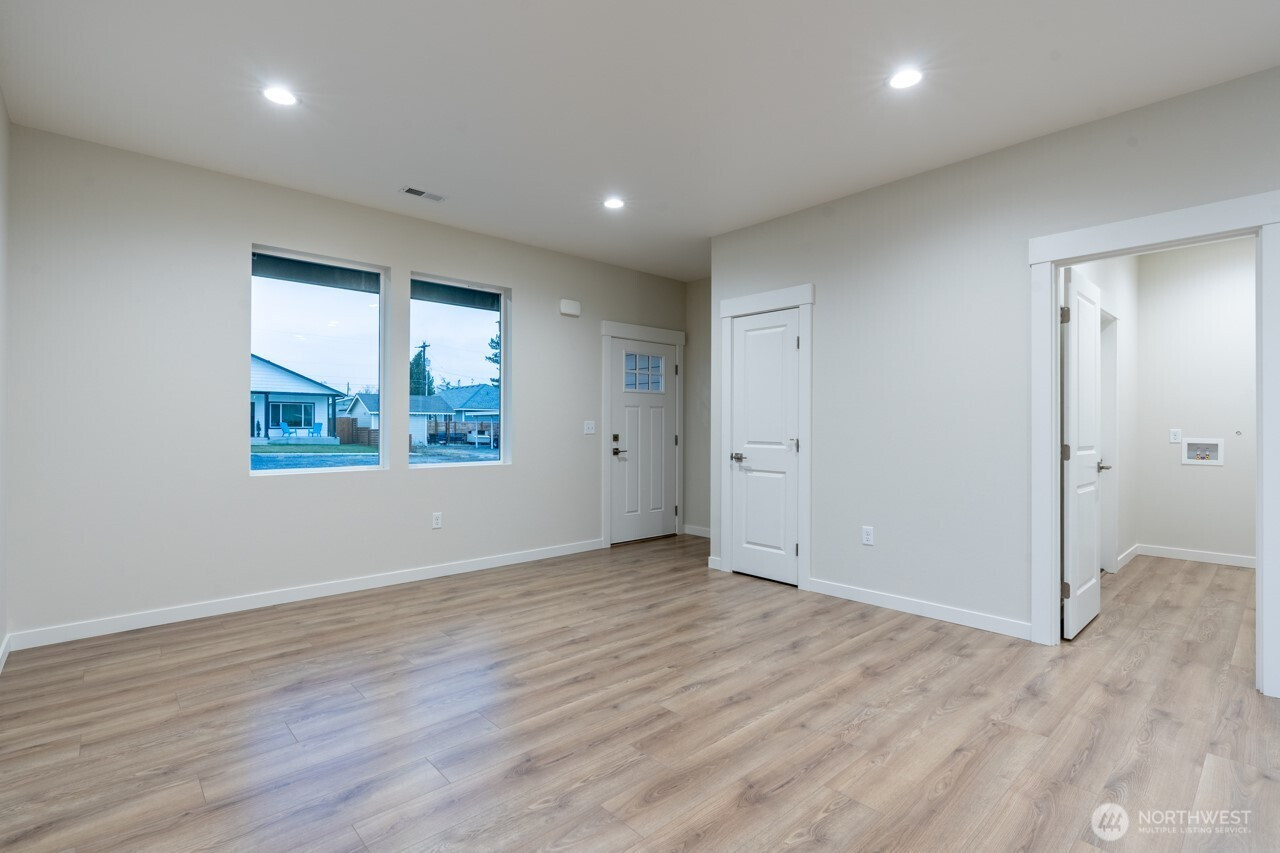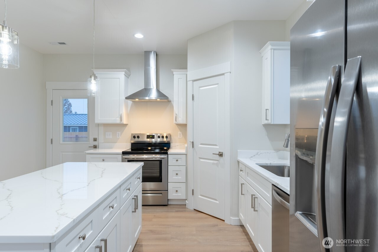 Step into this beautifully crafted new construction home offering 3 bedrooms, 2 bathrooms, and 1,342 sq ft of thoughtful design and modern comfort. The bright, open layout features white cabinetry with sleek black hardware, stainless steel appliances, and granite countertops that elevate the kitchen with timeless style. Durable laminate flooring runs throughout the entire home, creating a seamless, low-maintenance living experience. Each bedroom includes built-in closet organizers, maximizing storage and keeping everything effortlessly tidy. Enjoy outdoor living on the spacious 10×16 patio, perfect for relaxing or entertaining. A 2-car garage adds convenience and extra storage. Move-in ready with quality finishes throughout—this home blends style, function, and brand-new peace of mind.