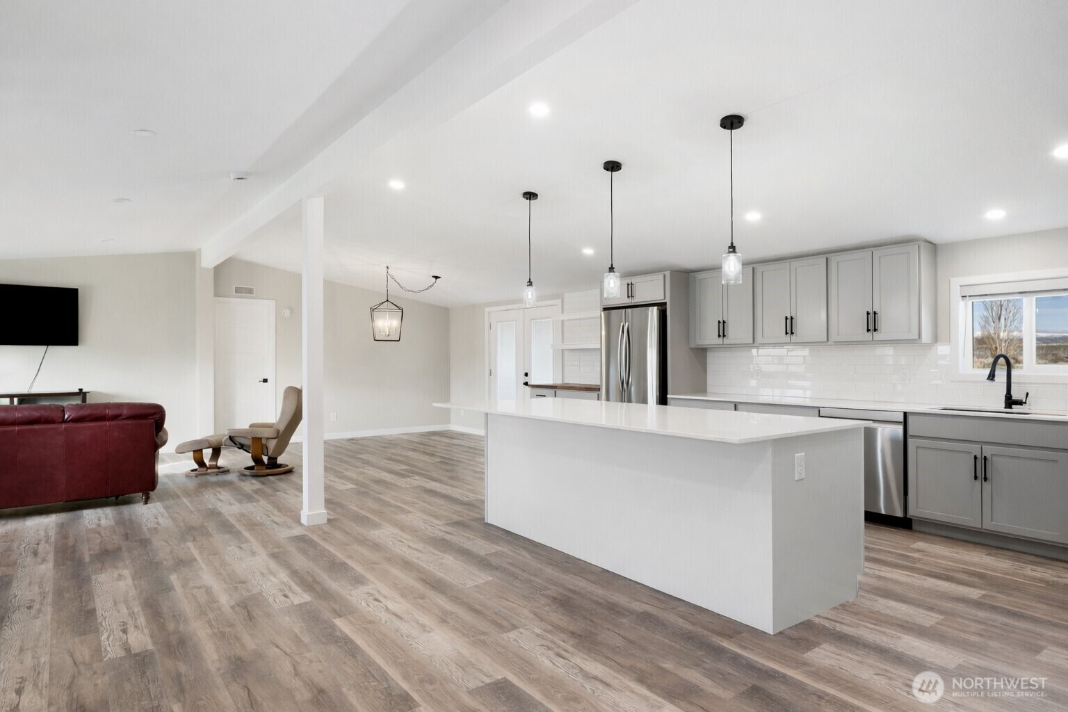 Experience the best of Desert Aire living on an expansive .58-acre lot with incredible space for RV parking, boat storage, and all your recreational toys. This beautifully maintained 1,782 SF home offers 3 bedrooms and 2 full baths with a bright, open-concept design and vaulted ceilings that create an airy, inviting feel. The stylish kitchen features a large island, coffee bar, stainless steel appliances, and abundant cabinetry—perfect for entertaining. The spacious primary suite includes a walk-in closet and a luxurious bath with soaking tub and oversized shower. Enjoy laminate flooring, heat pump with A/C, forced air heating, and modern finishes throughout. Step outside to a partially fenced yard with patio space, storage shed, and plenty of room to expand. Located in the Desert Aire community offering golf course, airfield, boat launch, pool, clubhouse, gym, park, trails, and more—plus over 300 days of sunshine each year. A rare opportunity to own space, comfort, and lifestyle all in one.