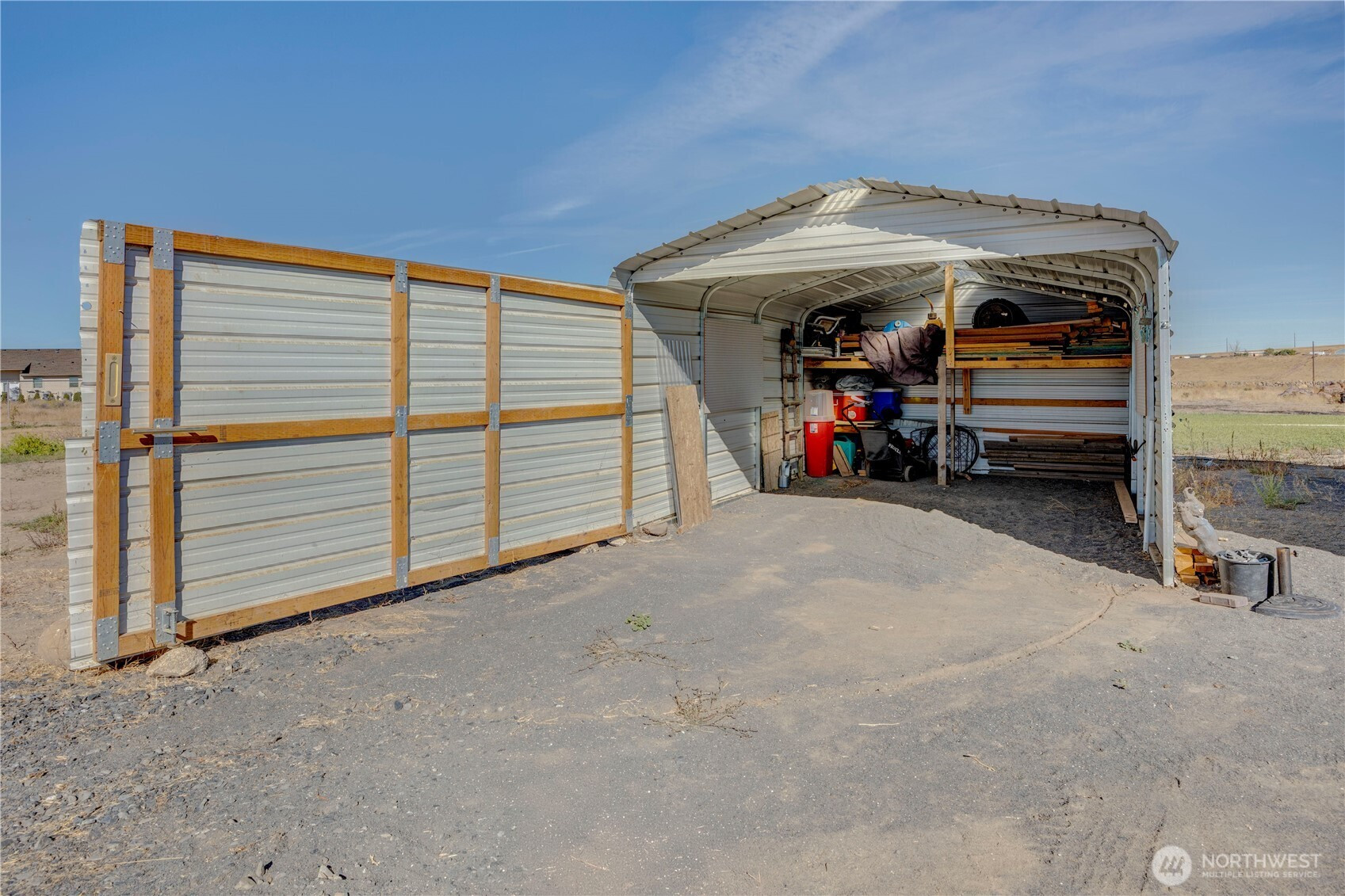Located in the McConihe community, this 5.18-acre parcel offers a well with a large pump sits on a concrete foundation and power is already connected. About half the lot has been cleared and cleaned, with the cleared rocks repurposed to form a partial wall running parallel to the road, and trees have been planted. The property includes two barn sheds, with the red shed featuring a second level that could serve as a tiny home or ADU. Four spigots are scattered around the site for convenient water access, and drip irrigation lines help nurture the trees. ARVs are not included in the sale, and items stored in the sheds may be negotiable. This is not sub-dividable, but you can have one residential home with one ADU on the property.
