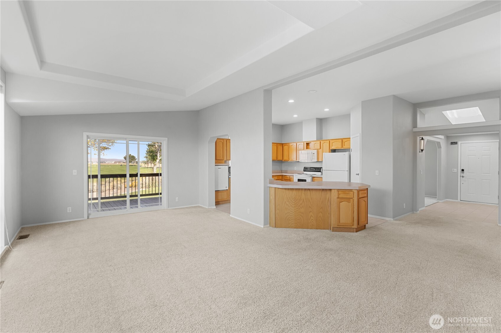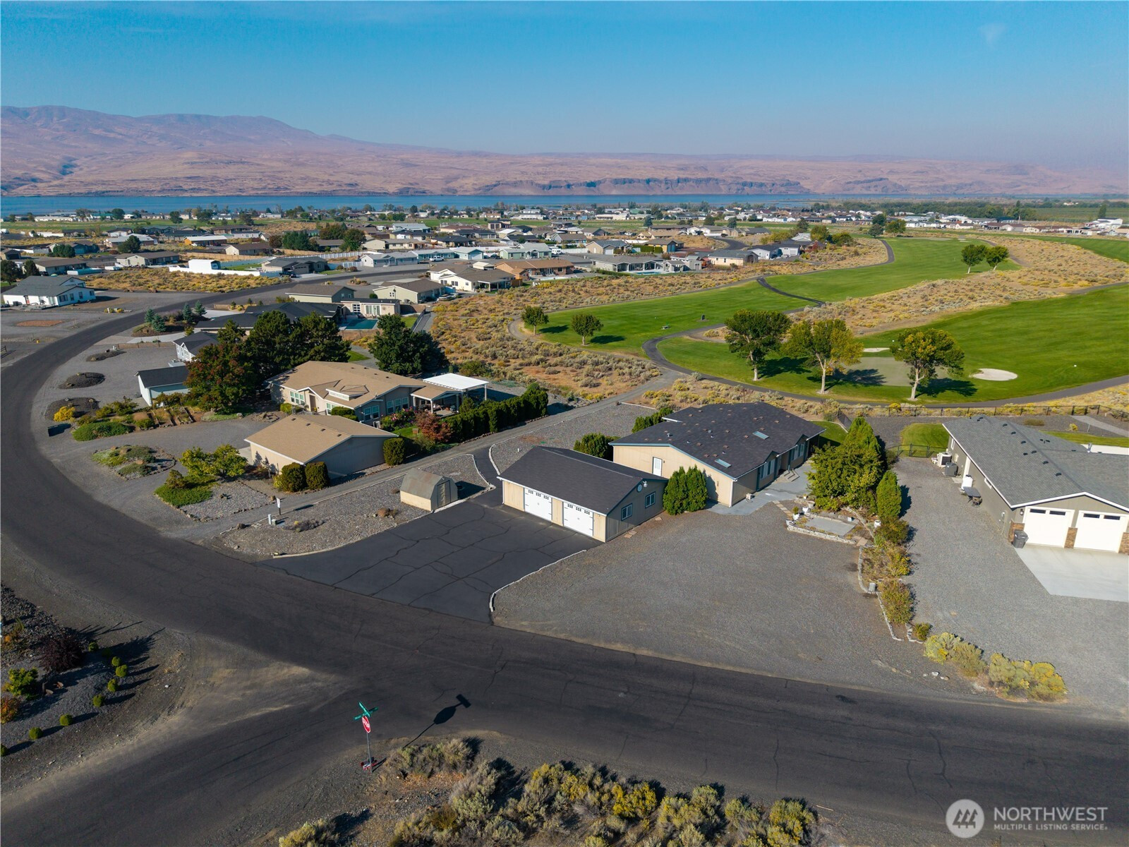 Enjoy resort-style living in this stunning 3 bed, 2 bath home located directly on the golf course! With 2,009 SqFt of beautifully maintained living space on a spacious 1/2 acre lot, this home offers breathtaking mountain and fairway views from nearly every window. The open floor plan features vaulted ceilings, skylights, a large kitchen with walk-in pantry, and a primary suite with walk-in closet and soaking tub. Additional highlights include a 3-car detached garage, RV parking, deck and patio for entertaining, plus low-maintenance landscaping. Enjoy all the amenities of Desert Aire including Golf course, airfield, community pool and park, tennis courts, gym, walking trails & boat launch! 300+ Days of Sunshine a year!