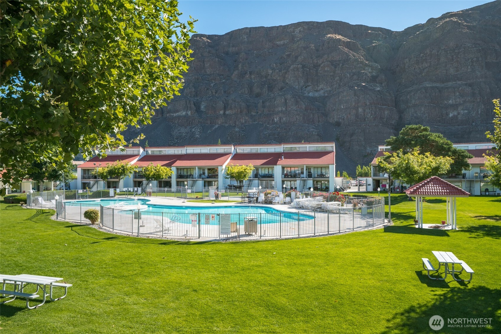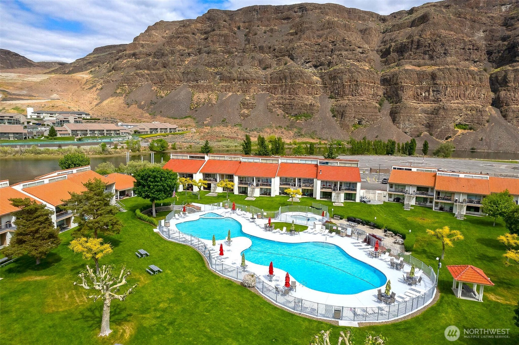 FUN IN THE SUN! 2-bed, 2-bath Crescent Bar condo is fully furnished and ready for your next adventure! Located in the new 20 block of the complex, the location of this condo can't be beat! Step outside to a freshly resurfaced pool and jacuzzi, or head out to nearby golf courses (two in CB and Colockum minutes away), wineries, restaurants, parks, walking trails, river sports, and boat launches. Wonderful large deck with large slider for views of the pool, jacuzzi, and beautiful grounds. Views of the famous cliffs/canal from primary bedroom and upper loft bedroom. Condo has new luxury plank vinyl, and central AC and heat pump. New blinds on main level. Perfect for full time living, vacations, or as a rental! Gorge Amphitheater is close and Greater Crescent Bar hosts concerts in the summer and a spectacular Fourth of July fireworks display. BBQ on large deck as well as community BBQ areas around the complex. With gated parking for your boat and golf cart, this is the turnkey retreat you’ve been waiting for! Wastewater assessment is PAID IN FULL!
