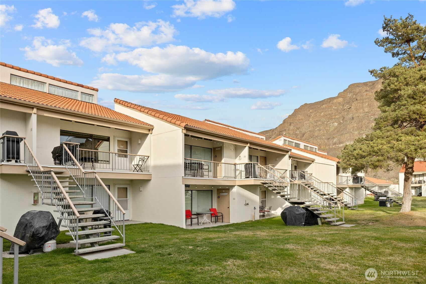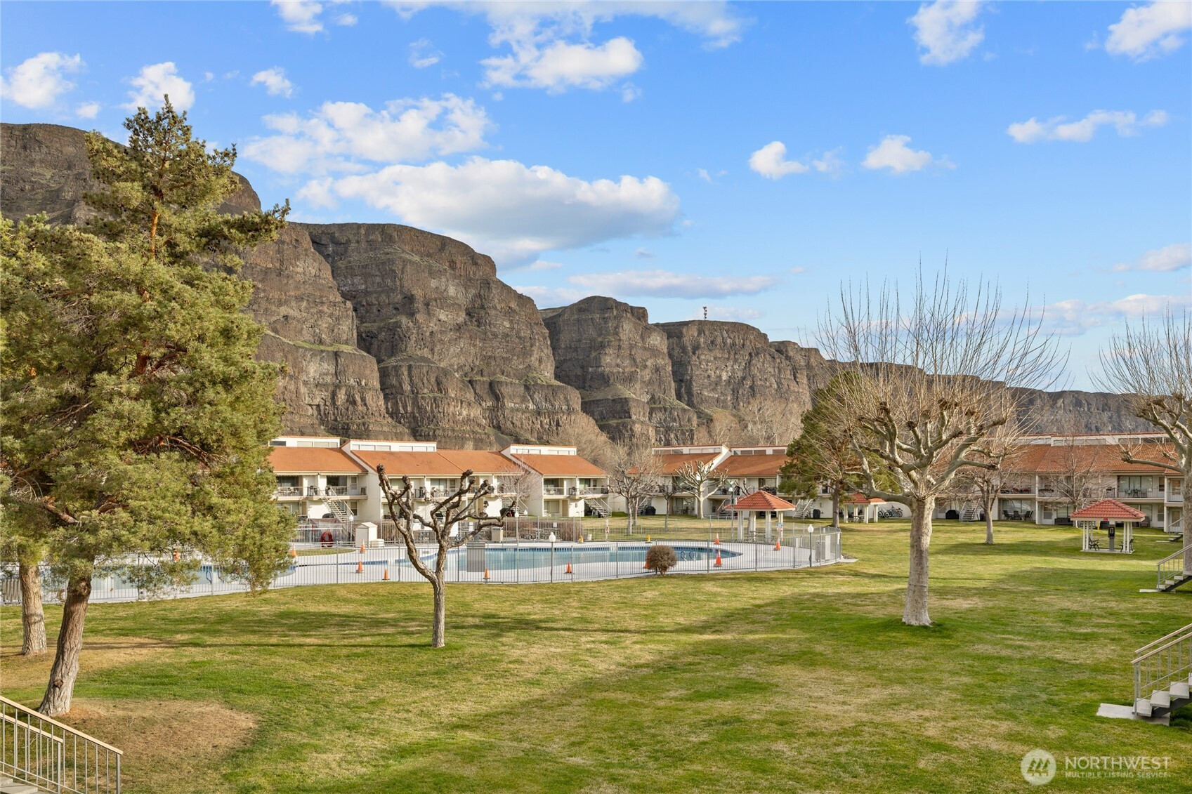 Welcome to your furnished dream vacation condo in the sun! This second floor condo is situated in a prime location w/ breathtaking views of the famous cliffs, the Columbia River & the sparkling pool. The kitchen is well equipped w/ all the essentials you'll need to whip up a delicious meal. Enjoy dining al fresco on the covered patio while gazing at the views. This unit comfortably sleeps 7 w/ 2 queen beds, 2 twins, and a sofa bed. You'll wake up feeling refreshed & ready for another fun day on the golf course, boating on the river or meeting friends at the pool/hot tub. Amenities include: washer/dryer, A/C, TV's, BBQ, high-speed internet available. Don't miss this opportunity at Crescent Bar! Excellent Short term rental also.