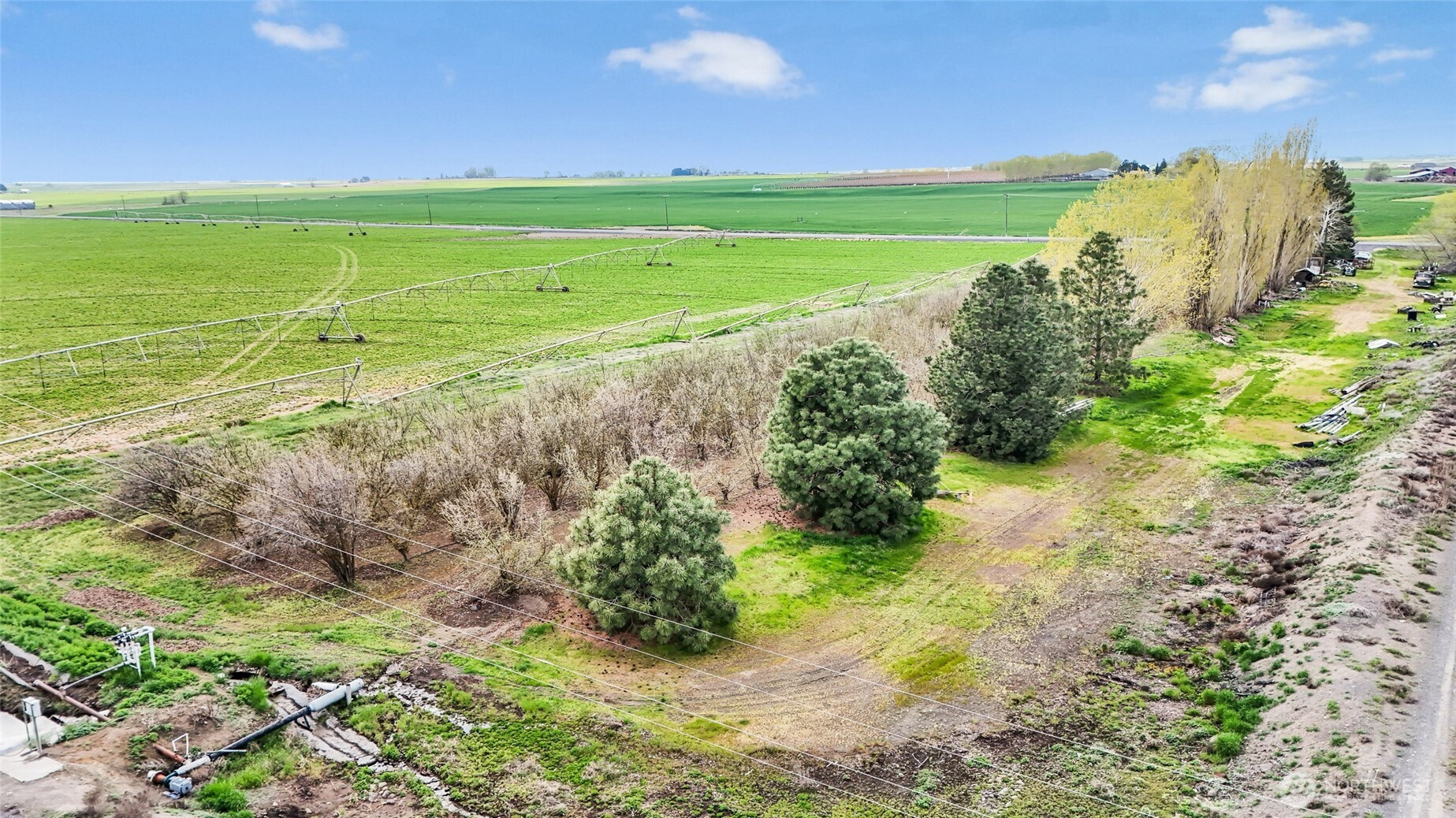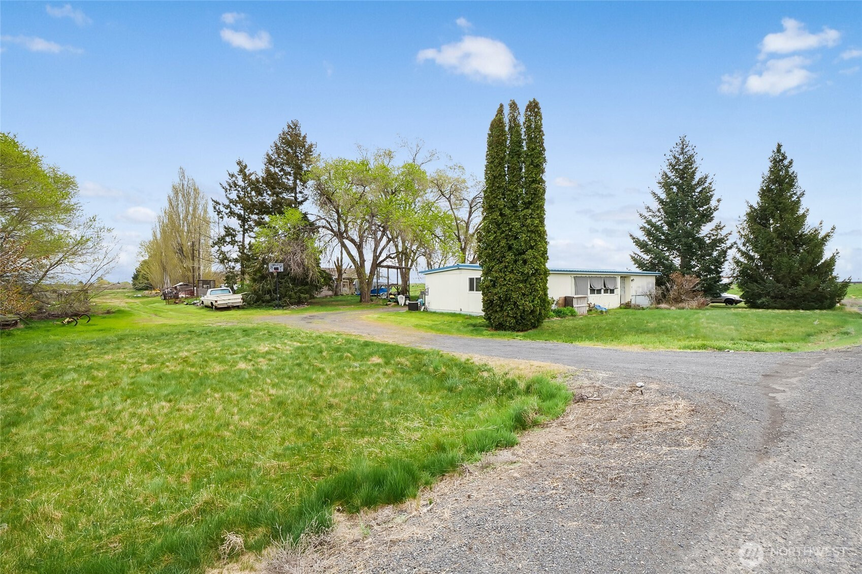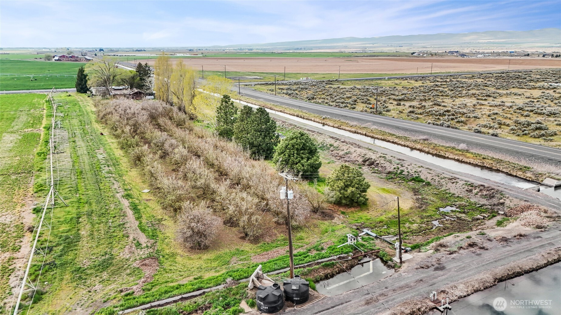Property with a 3 bedroom, 2 bath manufactured home on 5+ acres on two parcels of peaceful countryside just 5 minutes from town, with income potential, and room to build a shop. This estate property is being sold AS-IS and priced accordingly, offering a double-wide home, ready for someone with imagination and a desire to bring new life to a rural homestead. Value lies in the land and everything it offers: an income-producing hazelnut orchard, providing beauty and agricultural potential. The red building is NOT useable, (Do NOT enter) but with valuable Quincy Basin water rights in place, you have a strong foundation for continued production, expansion, or your own hobby farm dreams. The 5-acre parcel offers open space for animals, gardens, and an agricultural opportunity supported by established water rights by Quincy-Basin Irrig Dist. Property to be conveyed with remaining personal items; Buyer to assume removal.