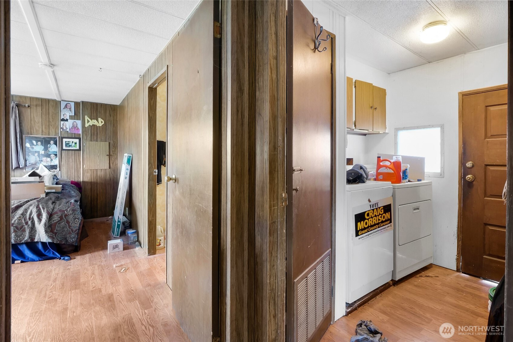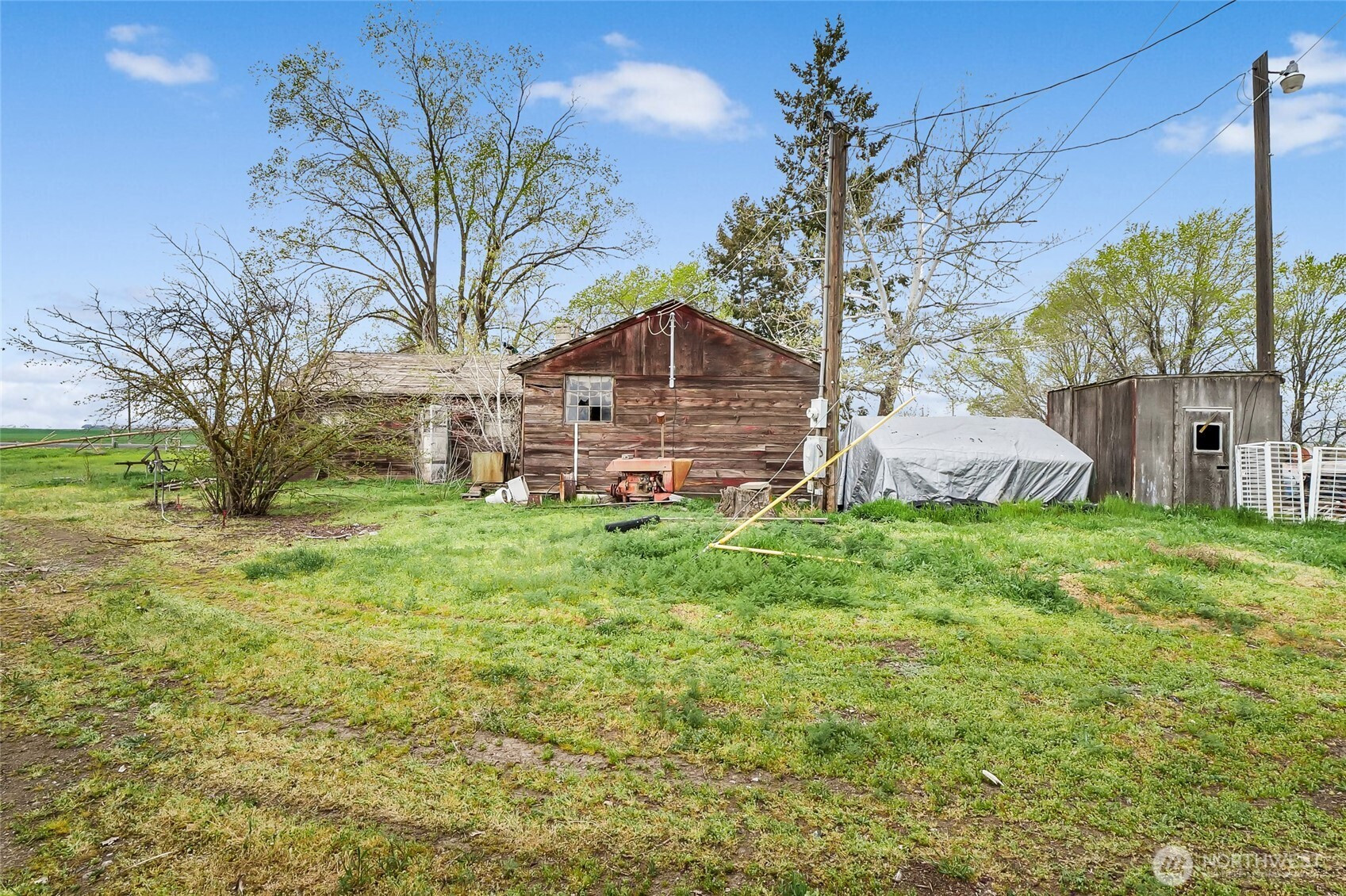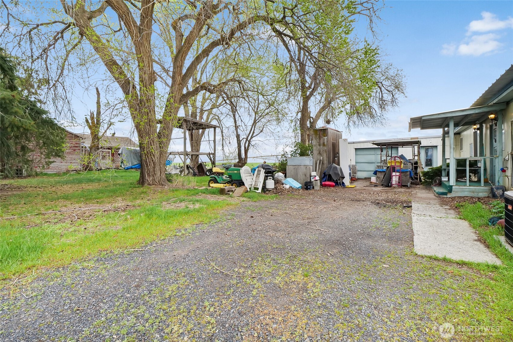 Property with a 3 bedroom, 2 bath manufactured home on 5+ acres on two parcels of peaceful countryside just 5 minutes from town, with income potential, and room to build a shop. This estate property is being sold AS-IS and priced accordingly, offering a double-wide home, ready for someone with imagination and a desire to bring new life to a rural homestead. Value lies in the land and everything it offers: an income-producing hazelnut orchard, providing beauty and agricultural potential. The red building is NOT useable, (Do NOT enter) but with valuable Quincy Basin water rights in place, you have a strong foundation for continued production, expansion, or your own hobby farm dreams. The 5-acre parcel offers open space for animals, gardens, and an agricultural opportunity supported by established water rights by Quincy-Basin Irrig Dist. Property to be conveyed with remaining personal items; Buyer to assume removal.
