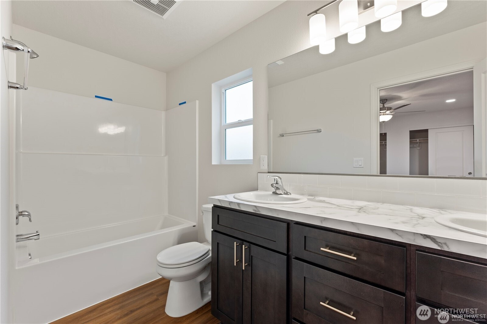 4-bedroom, 2.5 bathroom home in Royal City. Open living and dining room area. The kitchen is adorned with durable laminate flooring, & equipped with solid wood, soft-close cabinets providing ample storage, complimented by laminate or quartz countertops. Primary bedroom features walk-in closet. Quality carpeting with 8 lb padding in the living spaces, ensuring comfort throughout. The exterior boasts two car attached garage & front yard landscaping. Customize your living space with a variety of options for countertops, upgrades are available! (Photos may contain upgrades or furnishings not included in base price.)