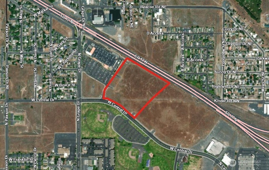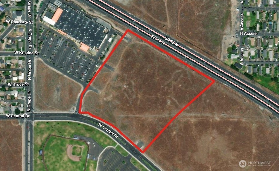 Outstanding 15.35 acre commercial property in Moses Lake, positioned in a rapidly expanding retail district and directly neighboring the newly constructed Home Depot. This sizeable site carries C 2 zoning, allowing a broad mix of commercial uses such as retail operations, storage facilities, service businesses, and select light industrial activities. Its location offers strong long term development potential for investors or businesses seeking a prominent, high exposure setting. The acreage sits between Central Drive and Highway 17, placing it near one of the city’s busiest shopping areas anchored by Wal Mart and Food Pavilion. With over 685 feet of frontage along Central Drive, a recently completed arterial corridor, the property benefits from full utility installation and modern streetscape improvements already in place. Infrastructure includes sewer, water, power, phone, cable, sidewalks, curbs, gutters, and streetlighting, reducing development time and cost. Hwy 17 borders the northern edge of the land, delivering excellent visibility to steady traffic flows—more than 18,000 vehicles daily on Hwy 17 and over 25,000 on Stratford Road. A completed Phase I environmental report further enhances readiness for future projects. Additional nearby parcels—102100001, 102100002, and 102114000—may be purchased to expand the overall footprint or accommodate larger scale plans. Property is currently unmarked with no signage installed.