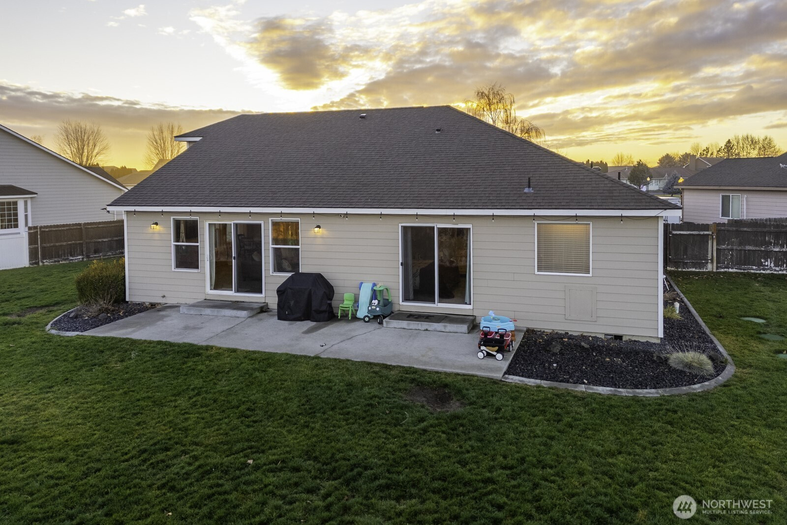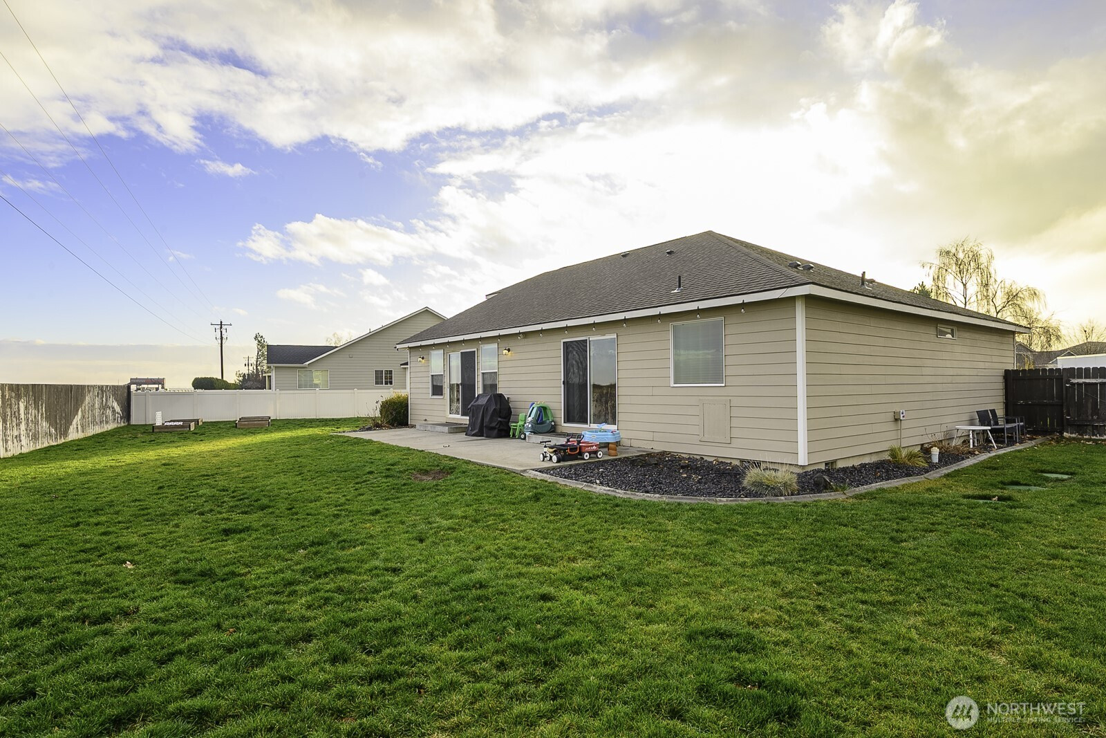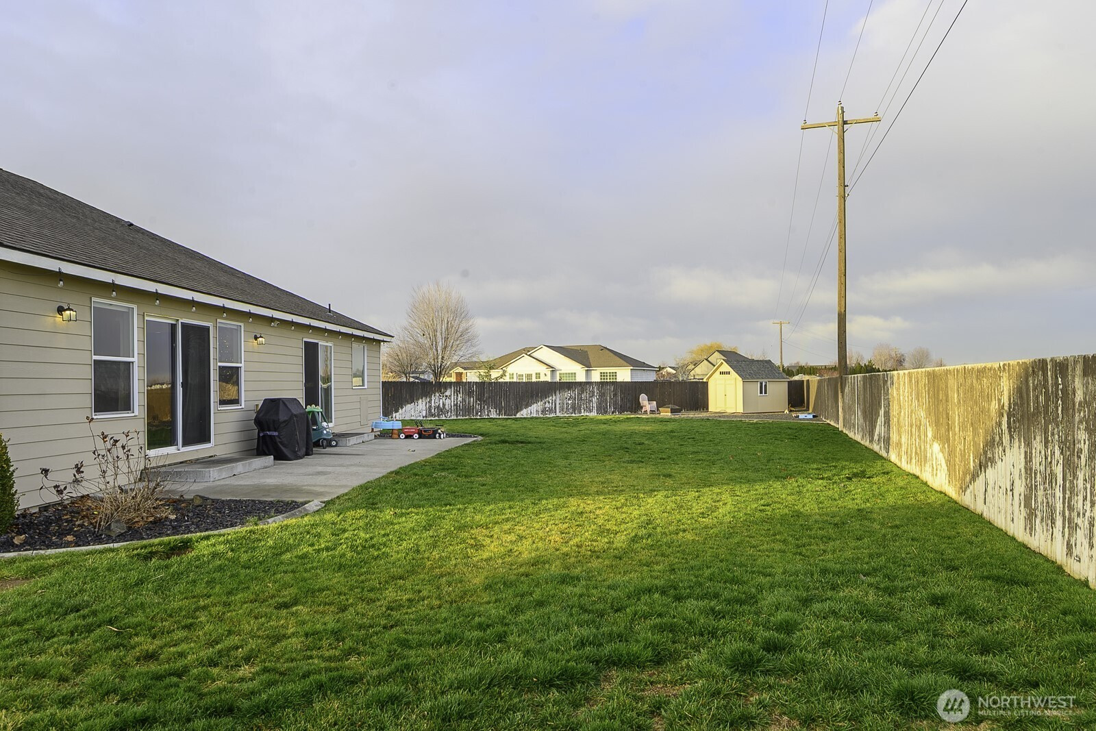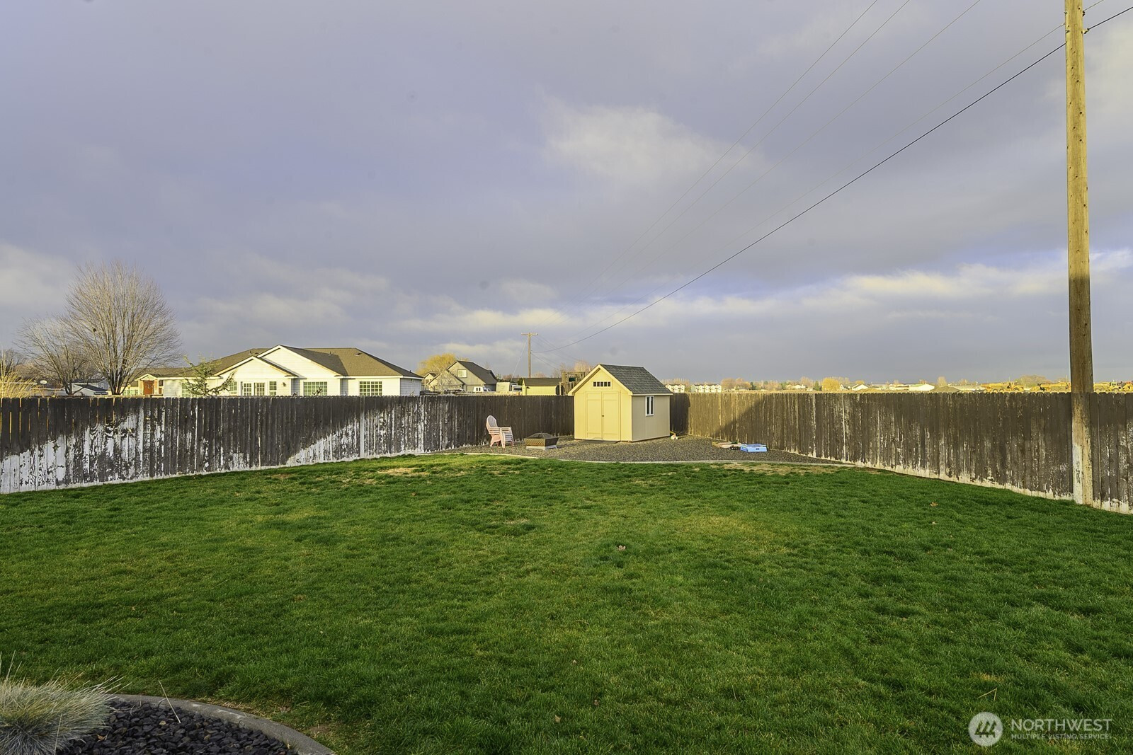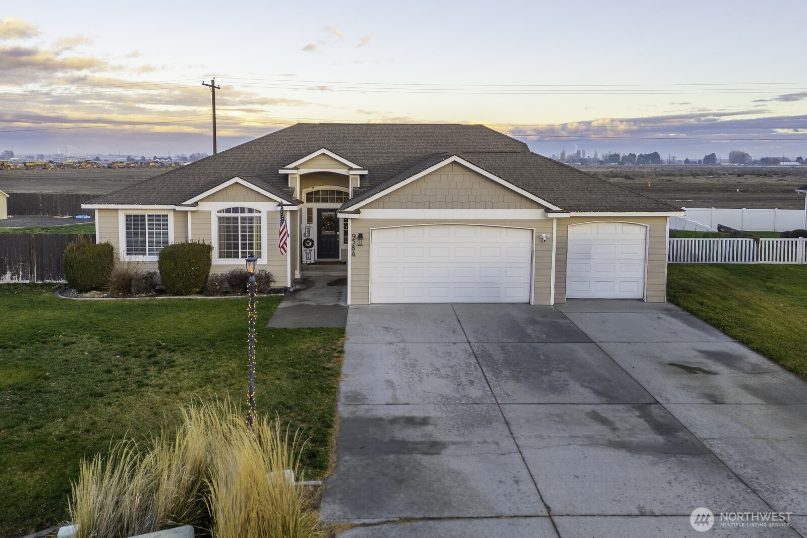 Welcome to this one-level rambler offering 1,636 sqft of comfortable living in a coveted neighborhood. Situated on nearly a 1/3 acre lot, this property features a fully fenced backyard, large patio, & a 10'x12' storage shed. Inside, abundant natural light enhances the airy feel created by vaulted ceilings & open concept living. Living room sliding glass doors lead to the backyard patio. The kitchen is a standout with three walls of cabinetry, stainless steel appliances, & built in desk. Primary suite includes sliding doors to the back patio, walk-in closet, and an ensuite bathroom featuring a jetted tub & standalone shower. Heated, attached 3-car garage. New water heater in 2022. HOA fees include community park and boat launch.