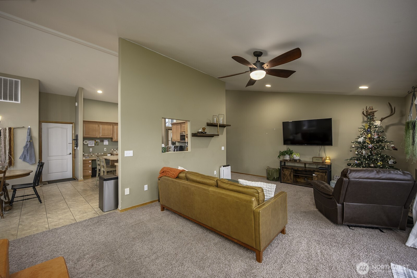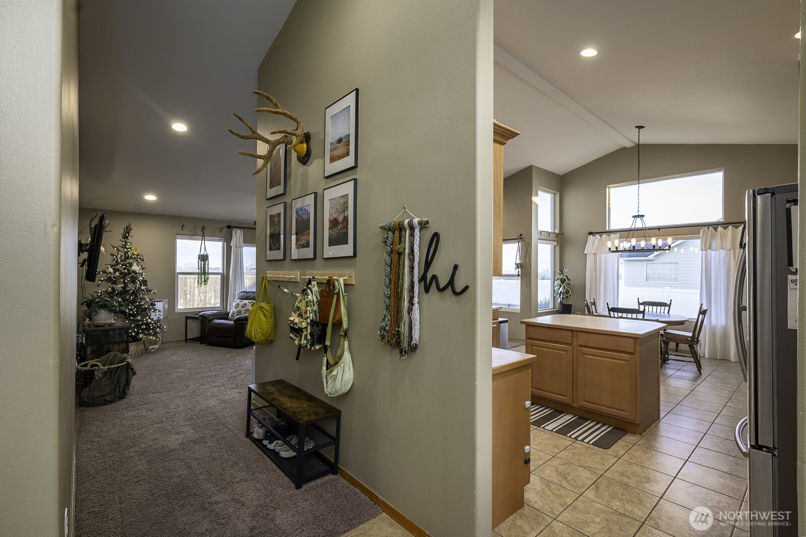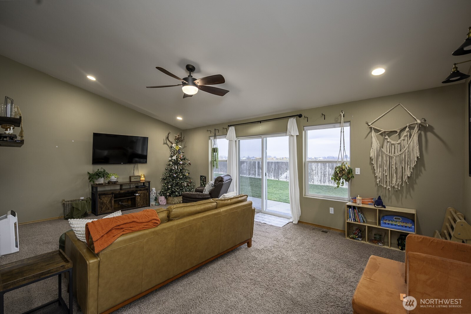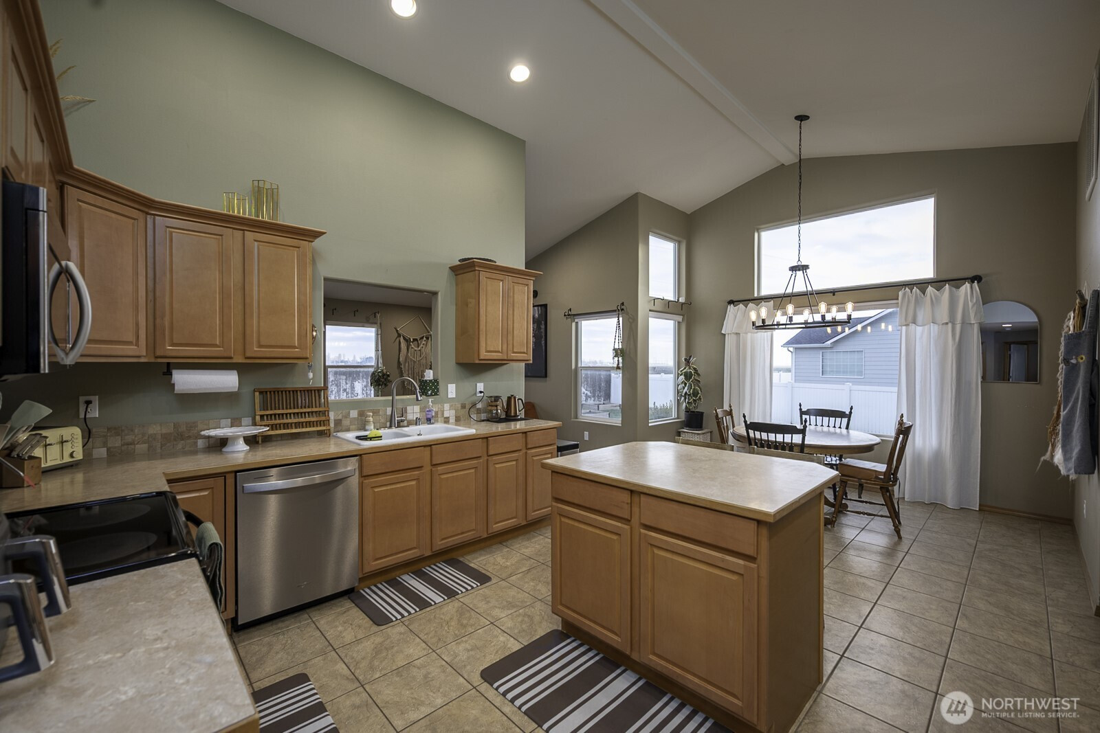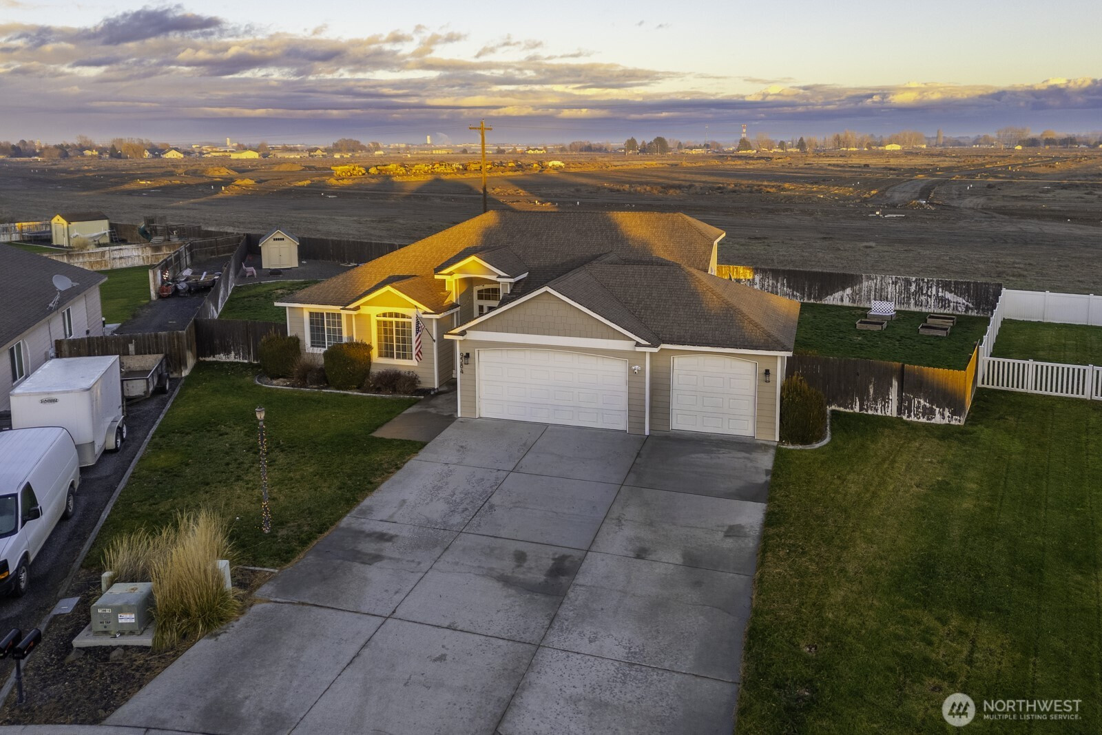 Welcome to this one-level rambler offering 1,636 sqft of comfortable living in a coveted neighborhood. Situated on nearly a 1/3 acre lot, this property features a fully fenced backyard, large patio, & a 10'x12' storage shed. Inside, abundant natural light enhances the airy feel created by vaulted ceilings & open concept living. Living room sliding glass doors lead to the backyard patio. The kitchen is a standout with three walls of cabinetry, stainless steel appliances, & built in desk. Primary suite includes sliding doors to the back patio, walk-in closet, and an ensuite bathroom featuring a jetted tub & standalone shower. Heated, attached 3-car garage. New water heater in 2022. HOA fees include community park and boat launch.