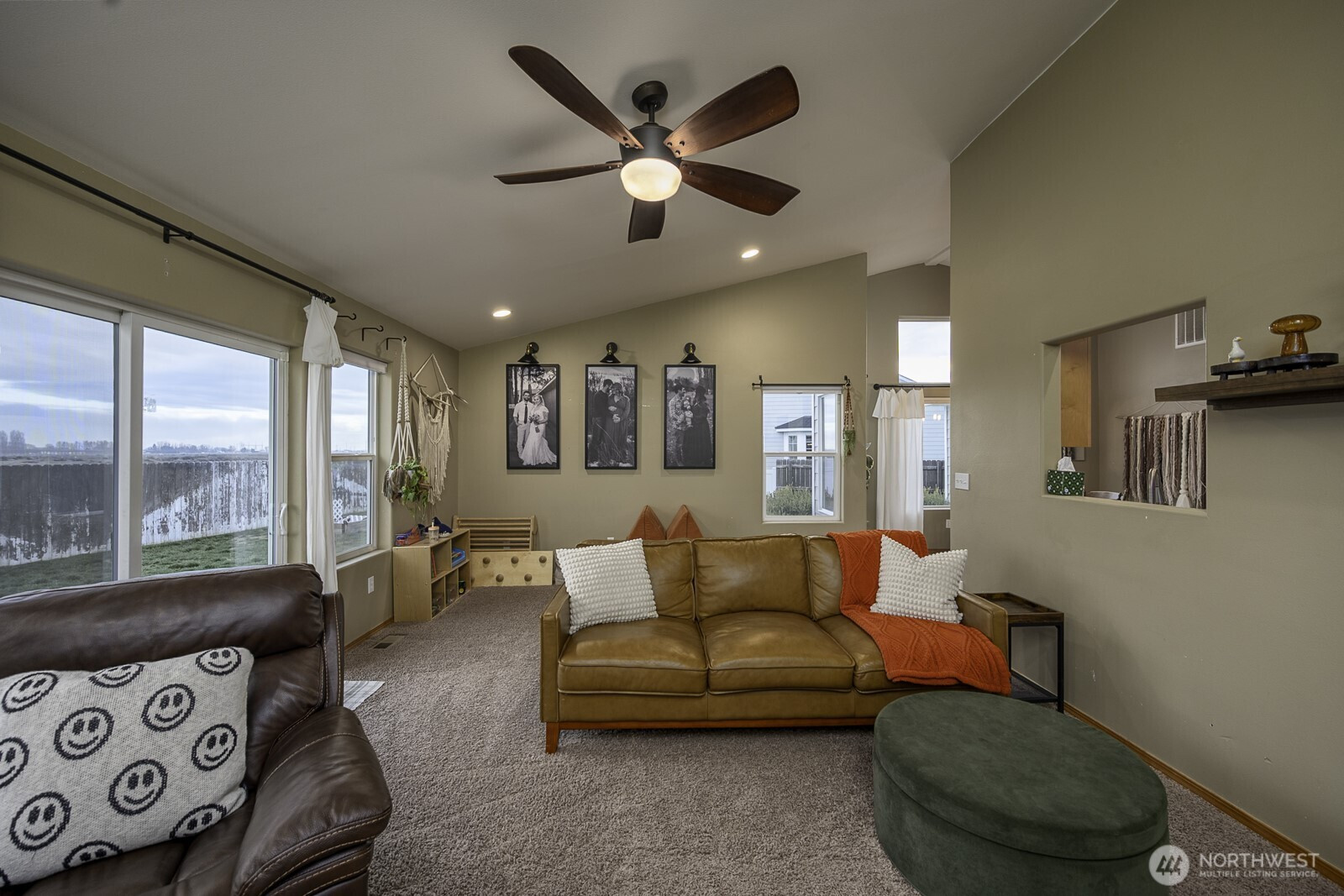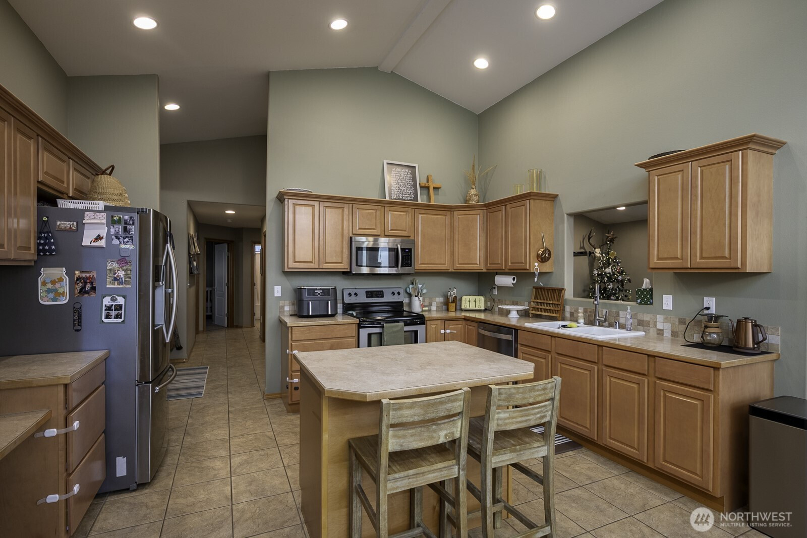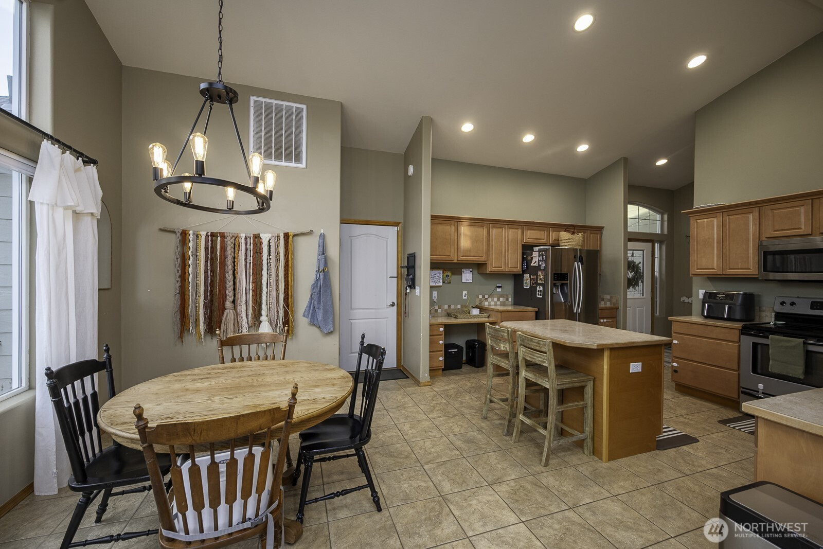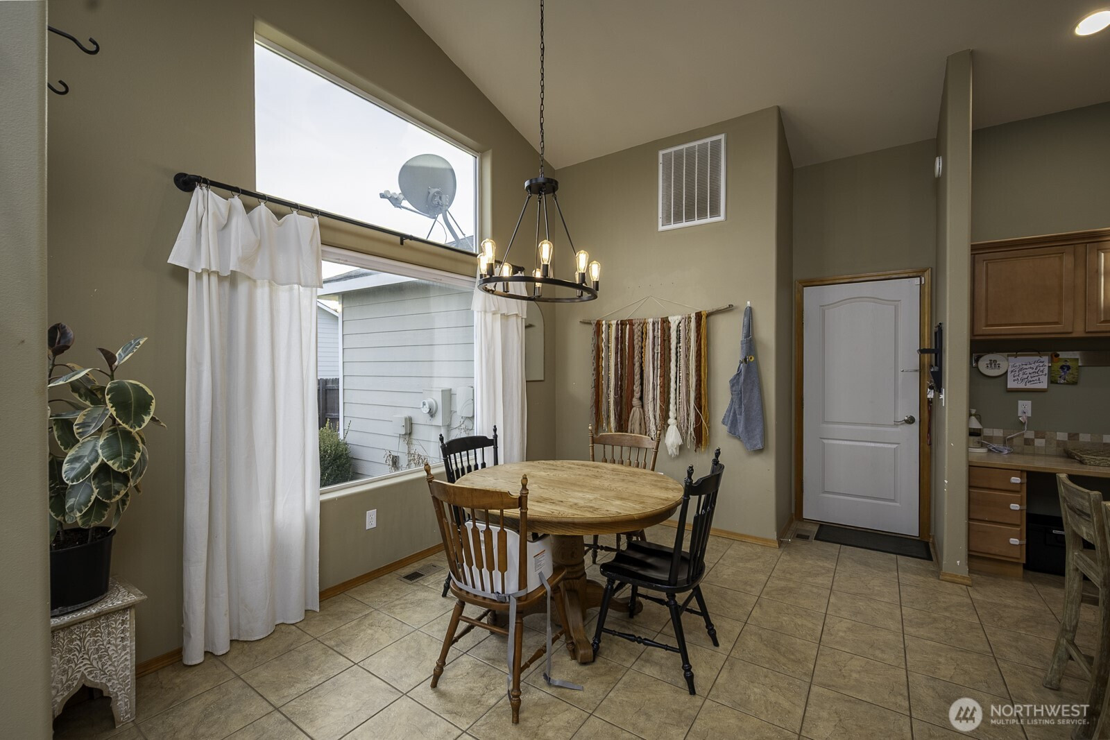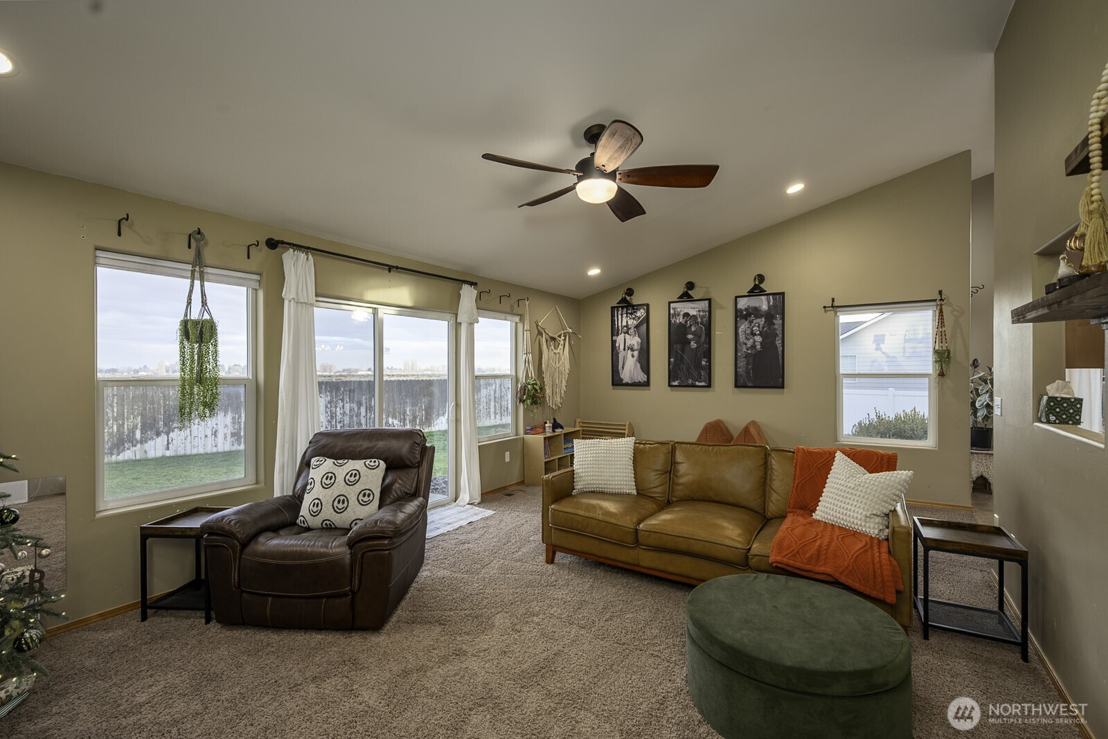 Welcome to this one-level rambler offering 1,636 sqft of comfortable living in a coveted neighborhood. Situated on nearly a 1/3 acre lot, this property features a fully fenced backyard, large patio, & a 10'x12' storage shed. Inside, abundant natural light enhances the airy feel created by vaulted ceilings & open concept living. Living room sliding glass doors lead to the backyard patio. The kitchen is a standout with three walls of cabinetry, stainless steel appliances, & built in desk. Primary suite includes sliding doors to the back patio, walk-in closet, and an ensuite bathroom featuring a jetted tub & standalone shower. Heated, attached 3-car garage. New water heater in 2022. HOA fees include community park and boat launch.