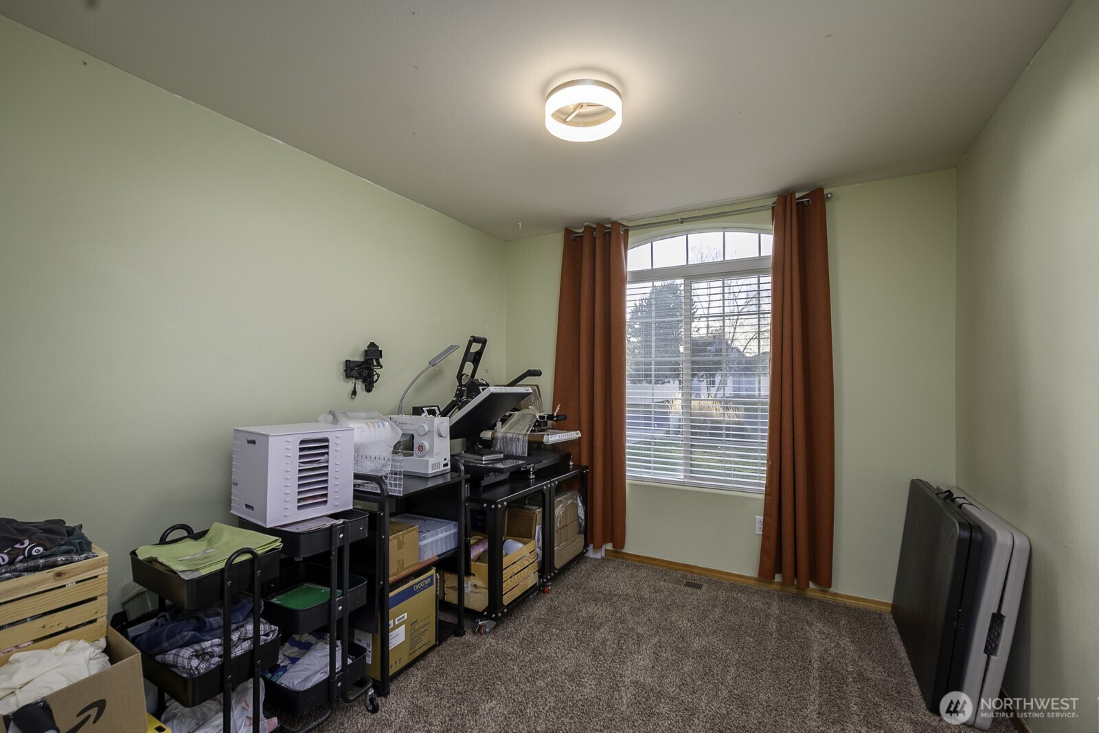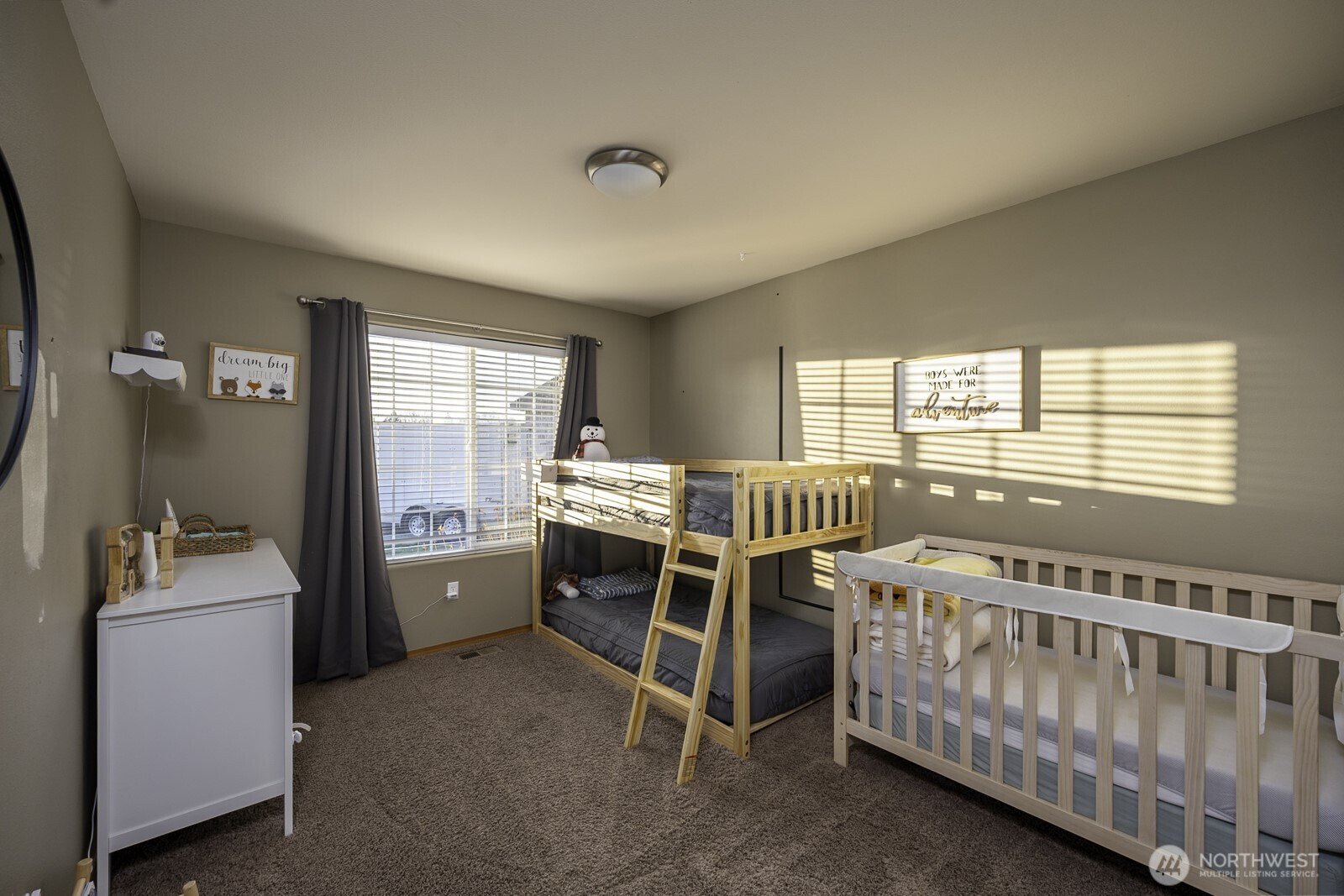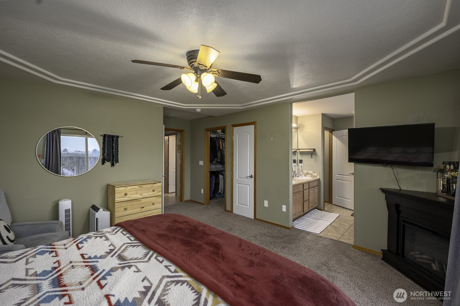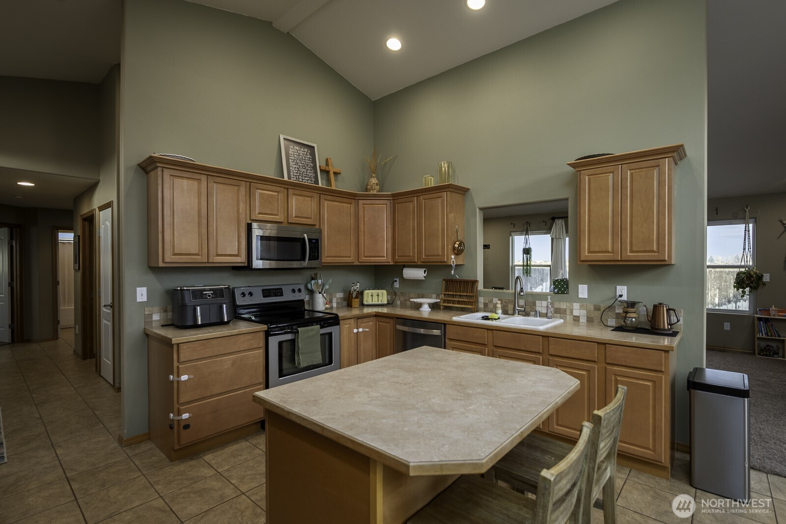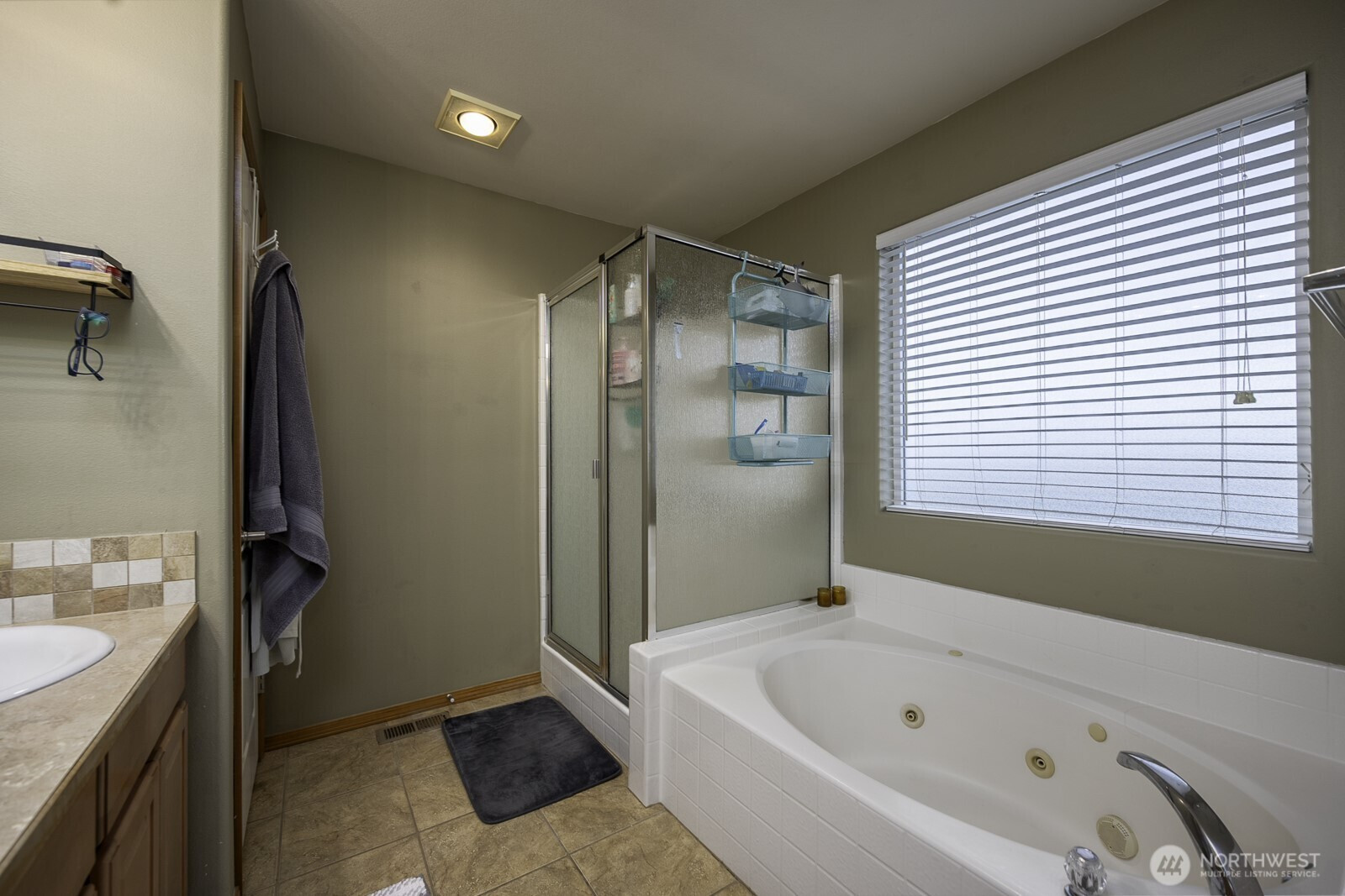 Welcome to this one-level rambler offering 1,636 sqft of comfortable living in a coveted neighborhood. Situated on nearly a 1/3 acre lot, this property features a fully fenced backyard, large patio, & a 10'x12' storage shed. Inside, abundant natural light enhances the airy feel created by vaulted ceilings & open concept living. Living room sliding glass doors lead to the backyard patio. The kitchen is a standout with three walls of cabinetry, stainless steel appliances, & built in desk. Primary suite includes sliding doors to the back patio, walk-in closet, and an ensuite bathroom featuring a jetted tub & standalone shower. Heated, attached 3-car garage. New water heater in 2022. HOA fees include community park and boat launch.