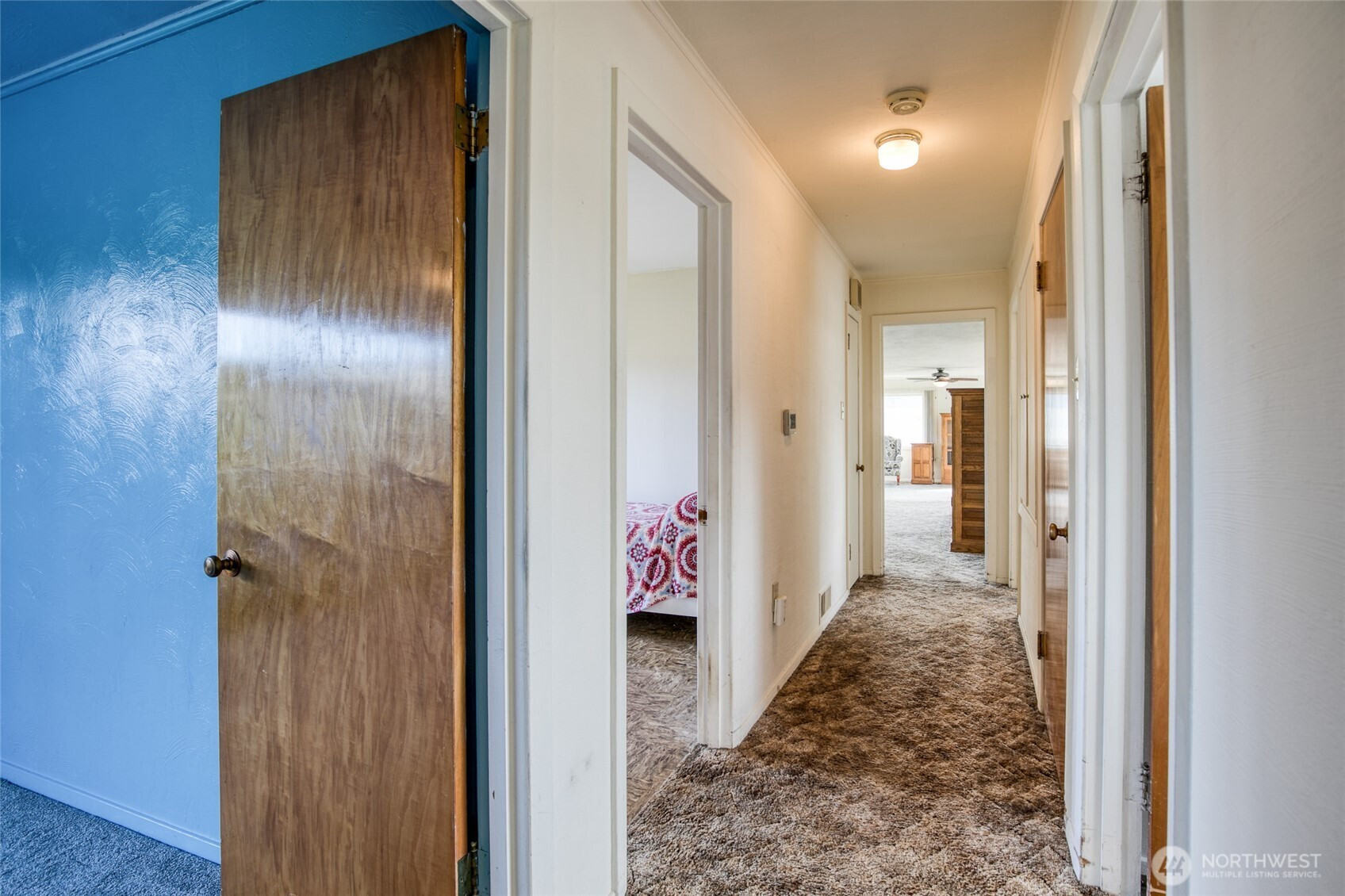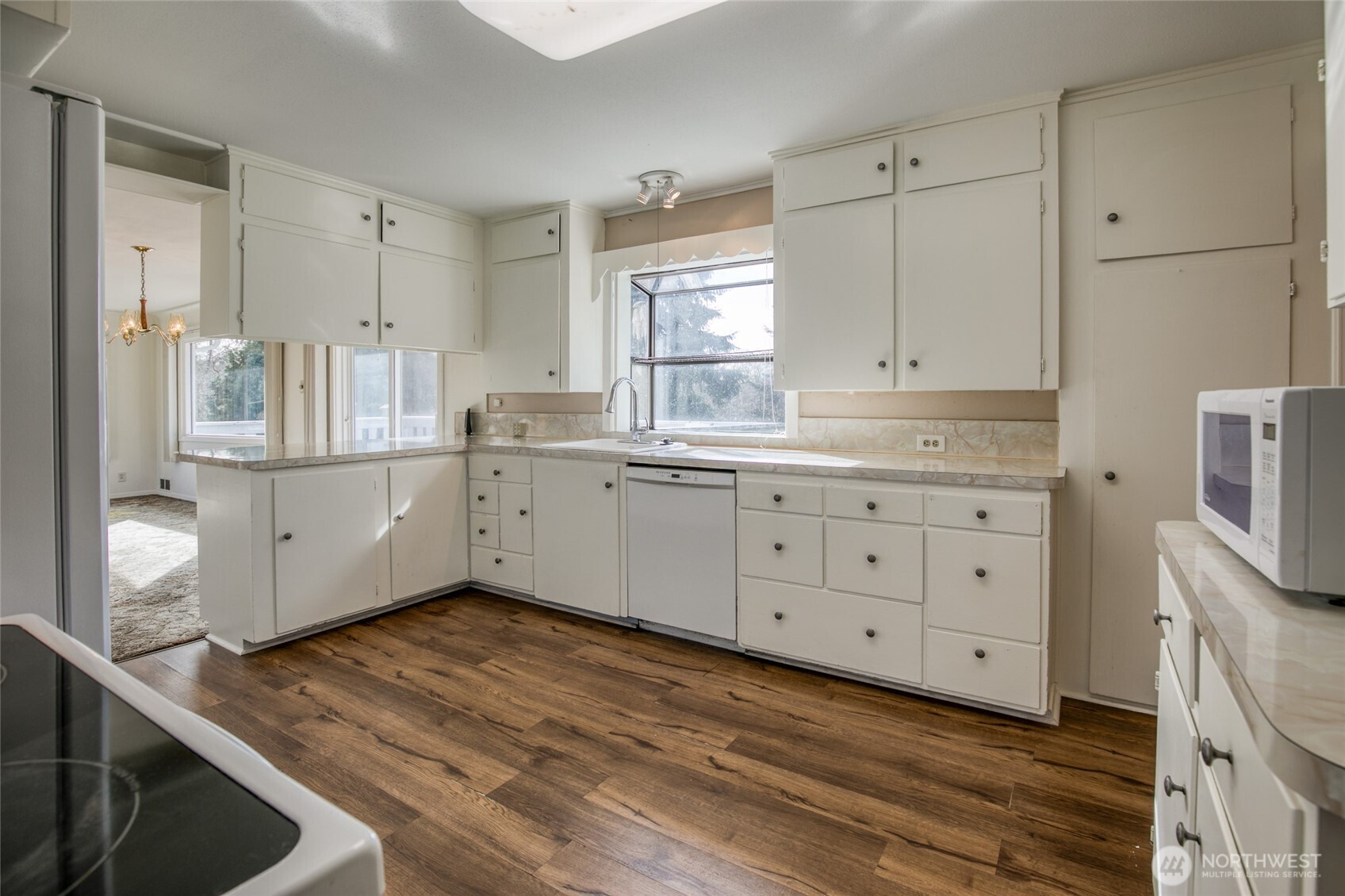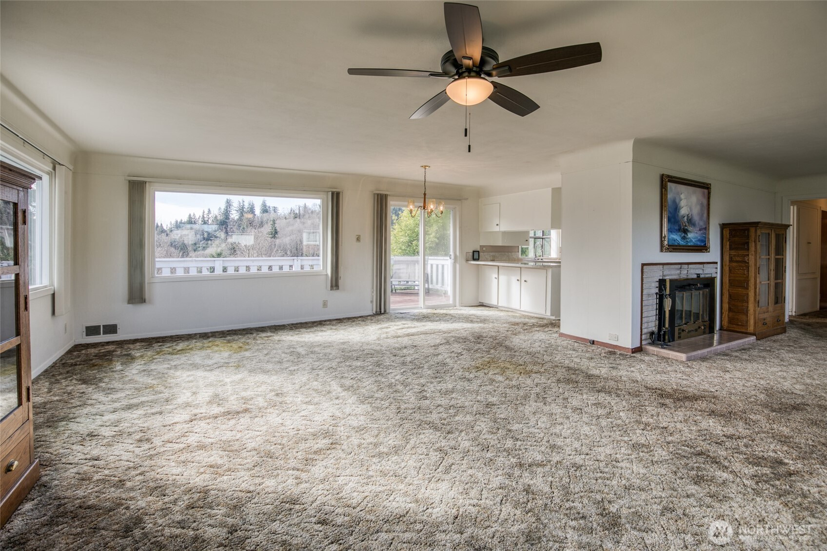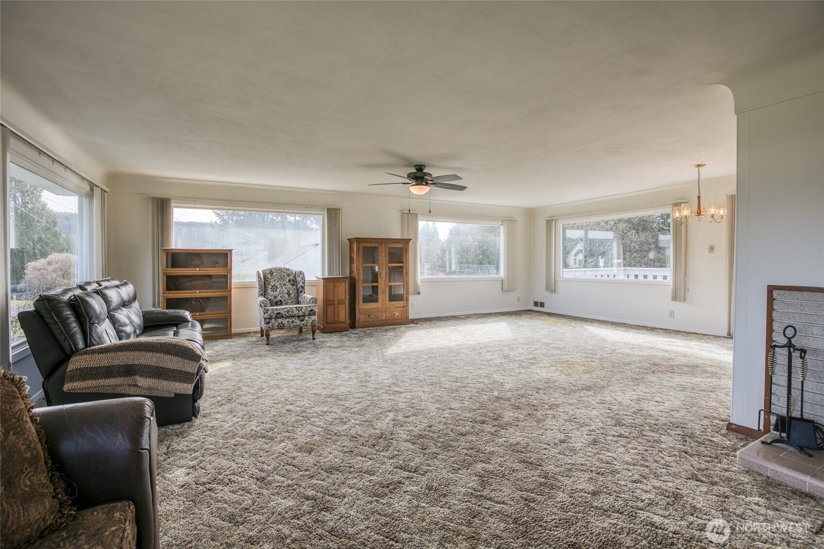 Welcome to the Bench Drive community. With spacious living and dining rooms that are filled with abundant natural light, creating a warm and inviting atmosphere. Step out onto the deck overlooking the backyard to enjoy peaceful territorial views—perfect for relaxing or entertaining. The well-appointed kitchen offers ample workspace and storage. Three generously sized bedrooms and a large full bathroom with a jetted soaking tub complete the main level. Most windows have been upgraded to vinyl-wrapped double pane for improved efficiency and comfort. The daylight basement features a cozy den with fireplace and bar, a utility room, an additional finished room, and abundant storage throughout. Outdoor storage includes sheds for garden tools and firewood, adding convenience and functionality. A wonderful blend of comfort, space, and versatility—this home is ready to be enjoyed.