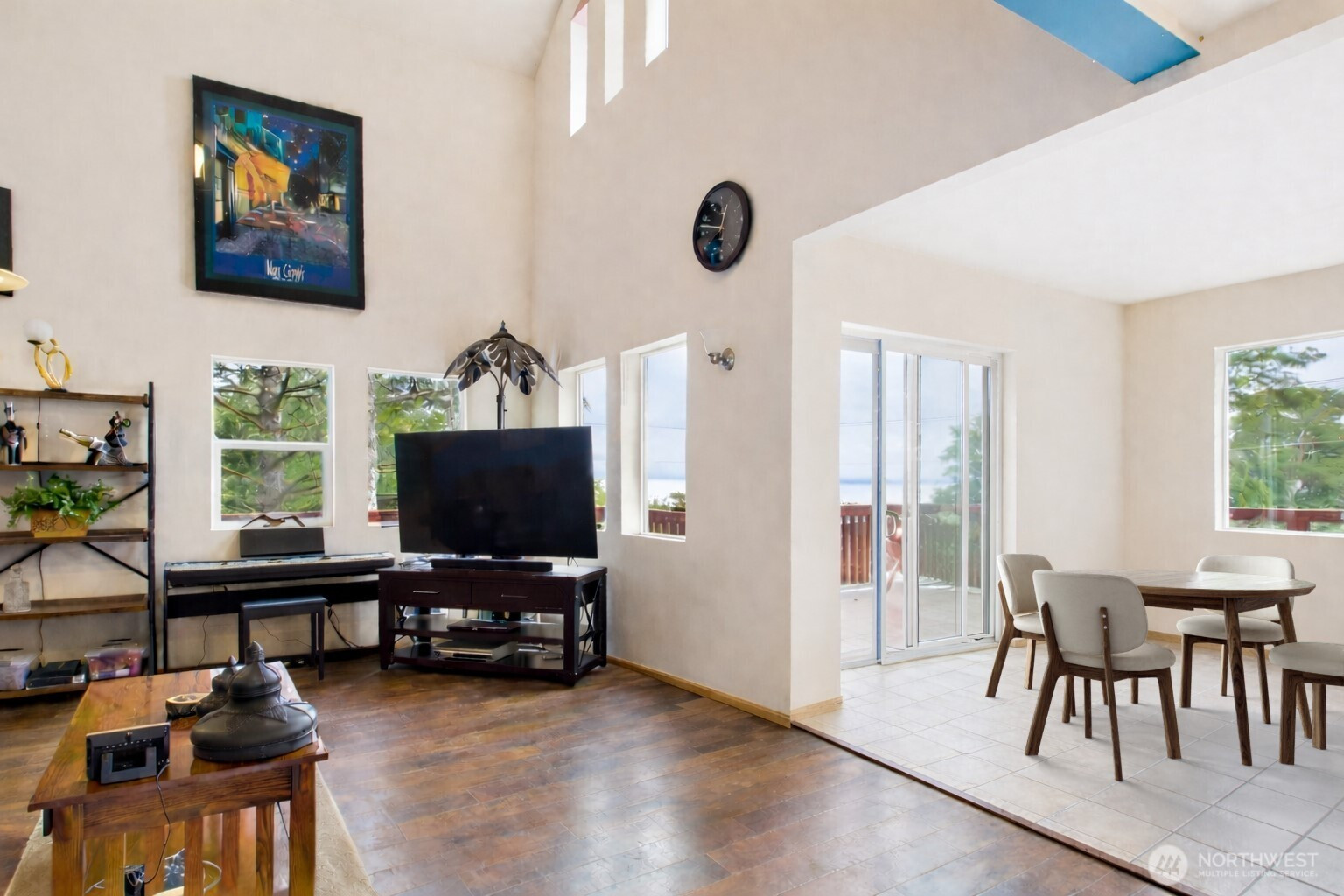 Surrounded by evergreens, this unique custom 3-level home feels like a private treehouse retreat. Spectacular Grays Harbor 180-degree views stretch from the Olympics to Mt. Rainier from the front, with Westport views from the back deck. Inside, vaulted ceilings and large windows connect you to nature. The kitchen offers granite countertops and maple cabinets. Upstairs, the primary suite includes a full bath and a flexible-view room perfect for work, hobbies, or relaxing. The ground floor has a bedroom, bonus space, kitchenette, and private entrance; ideal for guests or rental. Wrap-around deck, fenced yard, 24x28 garage/shop, 220 EV outlet, RV parking. Close to beaches, trails, and Community Club amenities. Seller offering 2% rate buydown.