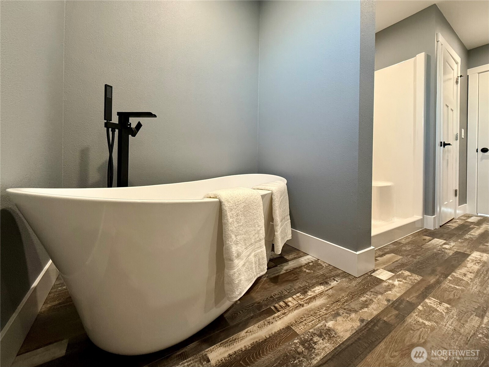 Delightful New Bungalow near a public path to the Pacific Ocean! Listen to the ocean from the beachy side of Ocean Shores, WA. Enter this 1,308 sqft 2BR 2BA residence into the large great room featuring vaulted ceilings, and fireplace with live-edge mantle. Kitchen with Quartz countertops, undermount sink and island/breakfast bar. Dining area with door leading to the deck and fenced back yard. Luxury vinyl plank flooring throughout. Private primary en-suite complete with sliding door leading to the deck, walk-in closet and 4-piece bathroom with double-sink vanity, soaking bathtub, shower w/seat and a separate water closet. Second bedroom and a full bathroom are off of their own hallway on the opposite side of the home. Mid-wall cabling in bedrooms. Back covered deck with gas line for bbq, etc. 1-car finished garage. Front and back hot/cold spigot (perfect for rinsing off after a day at the beach). Full size 7,985 sf parcel. Short distance to dining at Oyhut Bay or canal boat launch into 23 miles of fresh interconnecting lakes and canals winding about the peninsula. Few miles from our 18-hole golf course, parks/pools and town center. 3 hours from both Seattle and Portland.