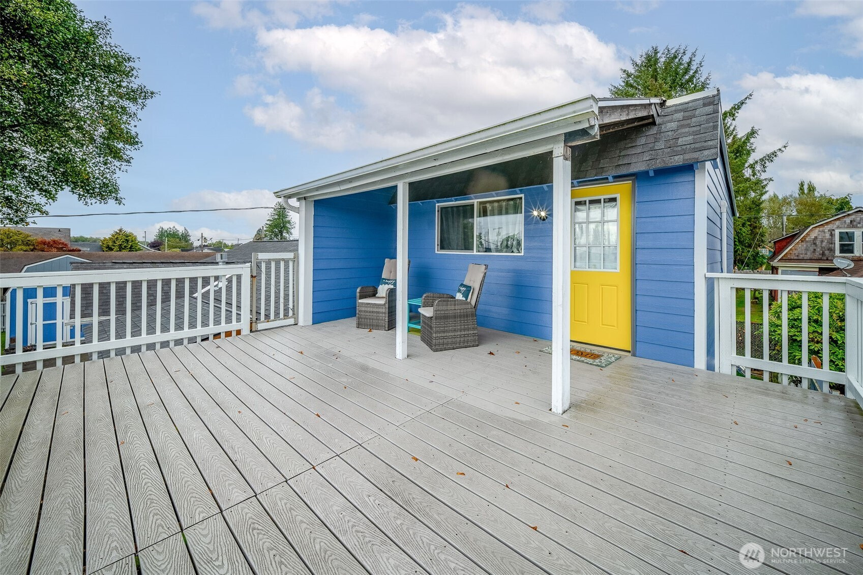 Charming 1916 duplex remodeled from the studs out, offering modern comfort w/ timeless character. The main 1,328 +/- sq ft owner occupied home features two spacious primary bedrooms, including one w/ a beautifully tiled European-style shower/tub combo. Highlights include updated kitchen w/ gas stove, freestanding gas stove for cozy heat, laminate & ceramic tile flooring, and thoughtful upgrades like fire-retardant 5/8” greenboard. The second unit, a 500 sq ft apartment above the garage with an expansive trex decking, includes its own kitchen and laundry—perfect for guests or rental income (currently rented to traveling nurses at $1,500 per month). Rare opportunity for versatile living or investment! All expenses shown are for both units.