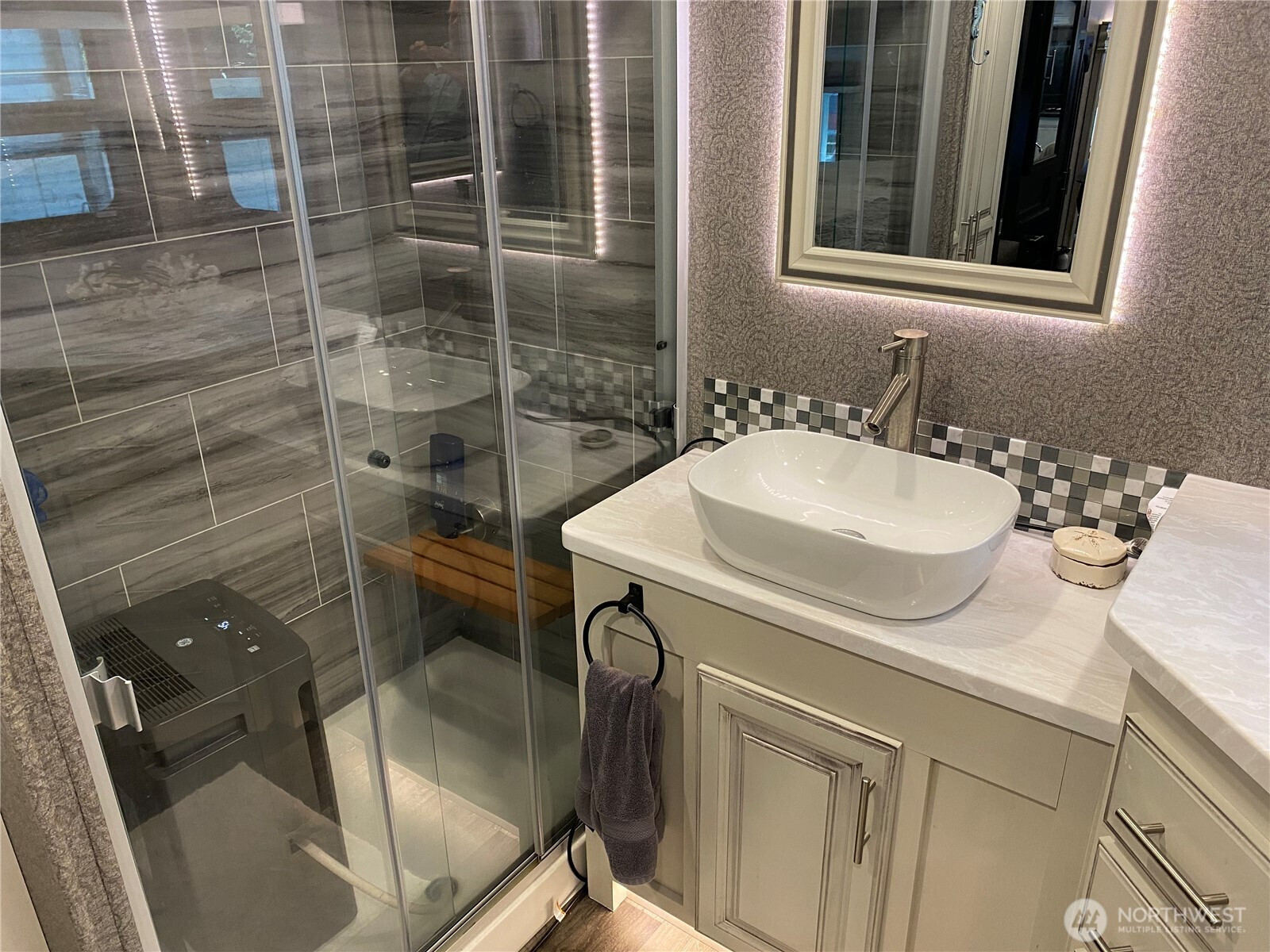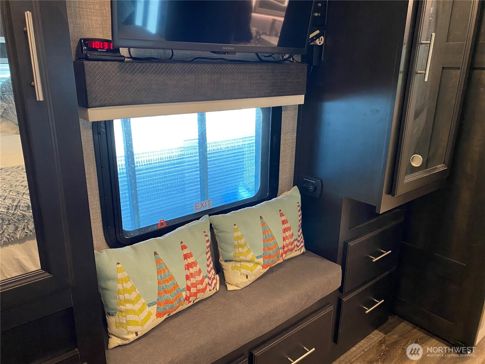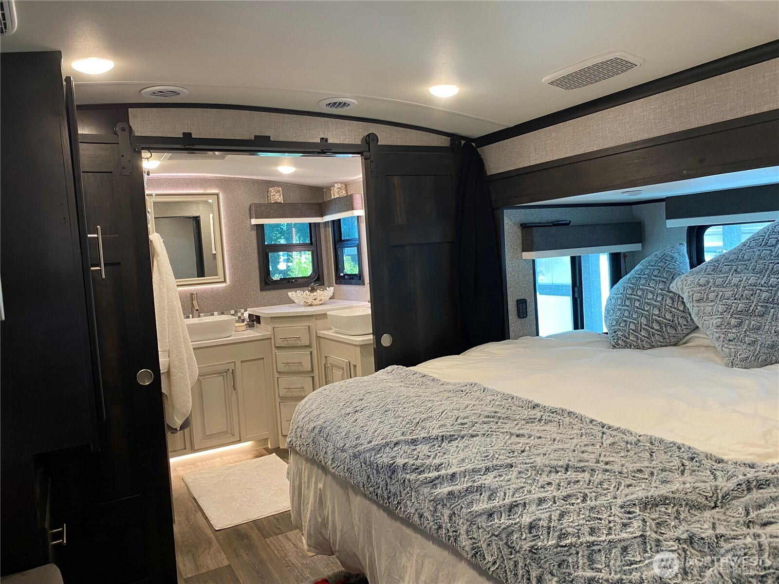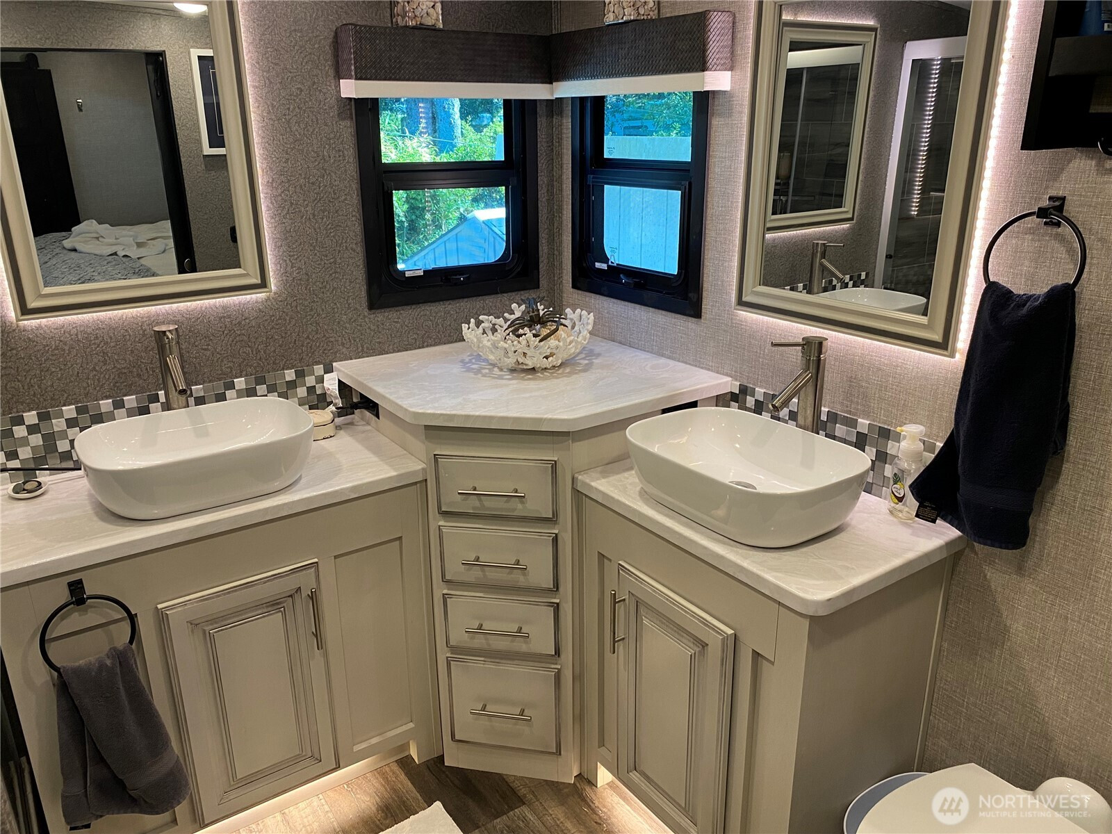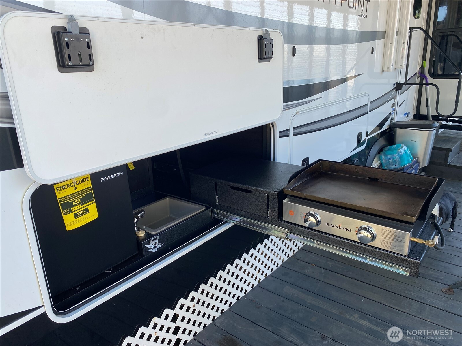 This property is located in the coveted Division 12 of Ocean Shores, where year-round RV camping is allowed. This property is a snow bird's dream as it includes a 45', 490 SF stunning, fully-loaded 2022 Jayco fifth-wheel trailer ready to move into. Includes two 15,000 BTU A/C units, vinyl flooring throughout, 1.5 bathrooms with 2 sinks in the master bathroom as well as a shower so big it includes a seat! Large roomy kitchen with an island. Handcrafted hardwood glazed doors, drawers and trim throughout. Property also includes an accessory unit with working shower, washer/dryer, sink and storage. Spacious decking on both sides all covered under large RV carport.
