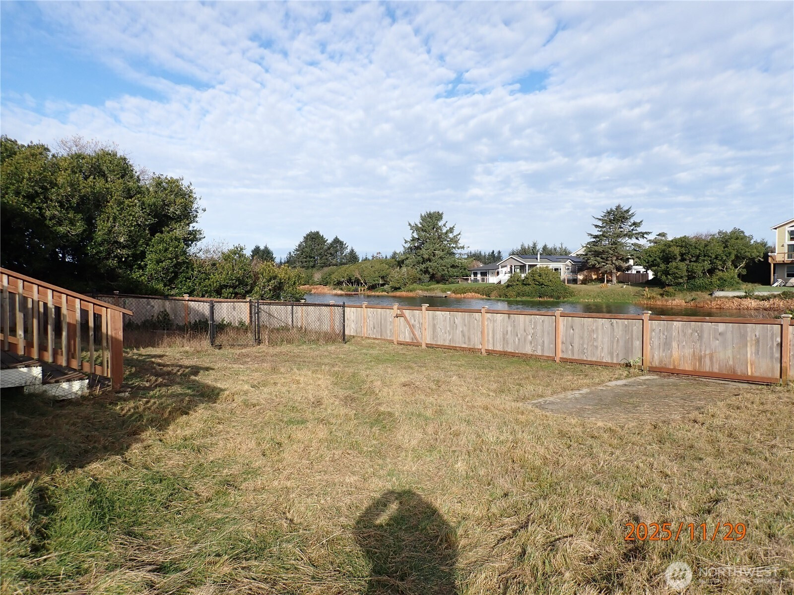 Waterfront property on Lake Minard! Fully fenced lot with dock and 90 ft of water front. Main floor boasts open concept great room, chef's kitchen, laundry, full bath and 2 bdrms. Upstairs features primary bedroom with own 3/4 bath along with a guest bedroom with gas insert fireplace, den and 3/4 bath. Walkin closets. Great room is piped for a gas fireplace. Home hardwired for alarm system. Backyard has a large fenced dog run. 2 car garage. Plenty of parking including RV. Propane gas tank will be needed. Located near Oyhut Bay shops/restaurants and Damon Point State Park. Ocean Beach access is only a short drive. Property is part of the Ocean Shores Communittee Club. Dues $195/yr. This property may qualify for Seller Financing (Vendee).