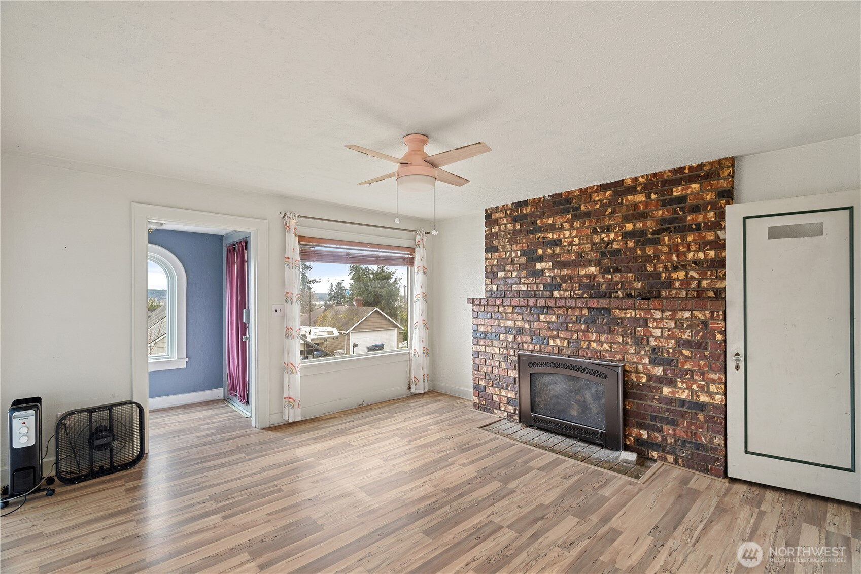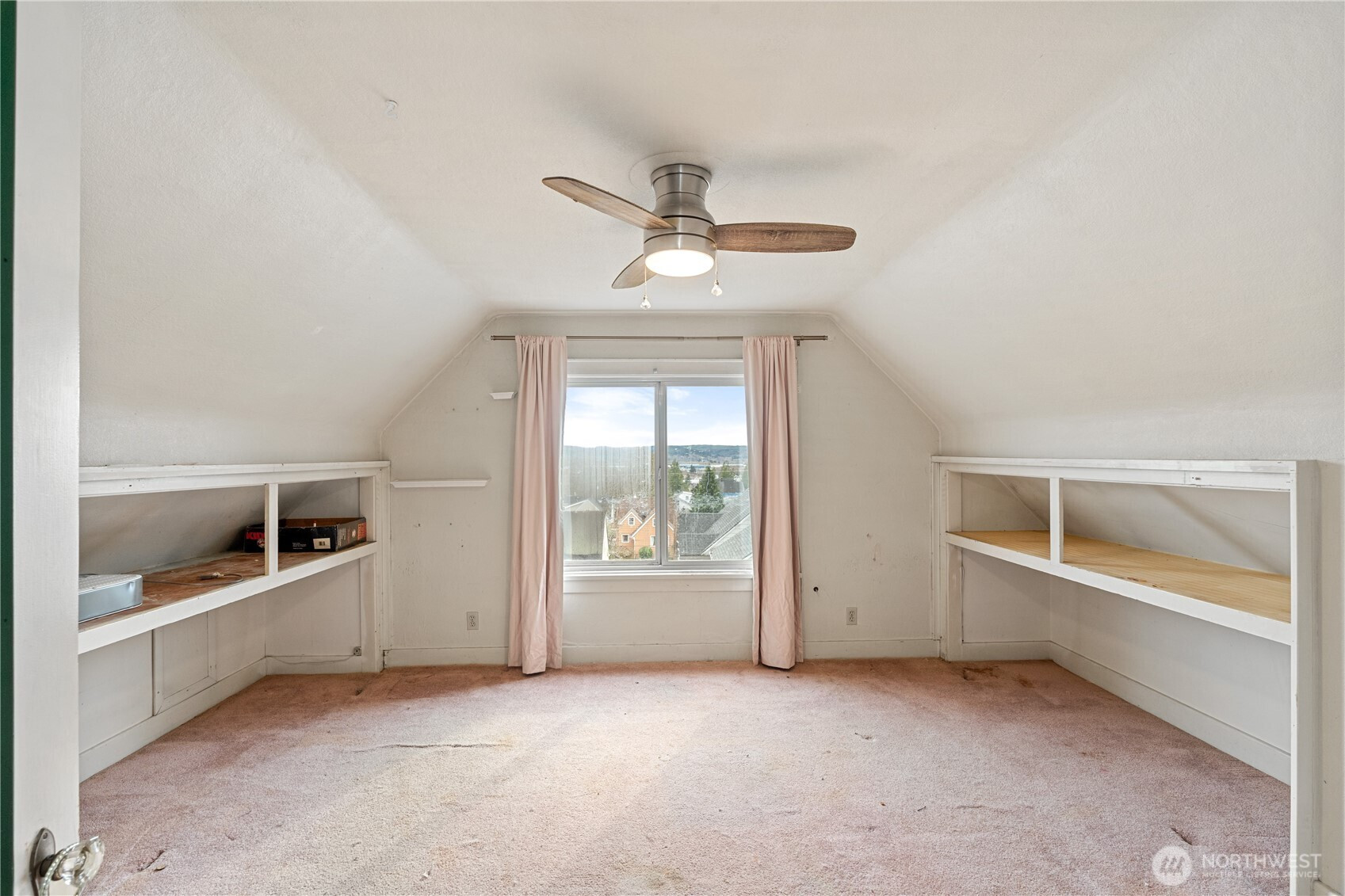 Scammel Hill home with amazing view of the city below, river, and hills in the distance. Three levels of home to spread out in with 4 bedrooms and 2 baths. The main level has the primary bedroom, full bathroom, kitchen with new cabinets & flooring, sitting room with gas fireplace and south facing windows spanning the enormous living room. 2 additional bedrooms upstairs with built-ins. Basement level has a shop area for projects, full laundry room, 3/4 bath, the 4th bedroom & bonus space that can be additional living space. There is outside access to the basement level as well, it could easily be turned into income/rental space. 2 car garage, covered side deck, garden shed, terraced front yard. Home needs some TLC and is being sold As-is. Great opportunity to buy on the hill and make this house your home!