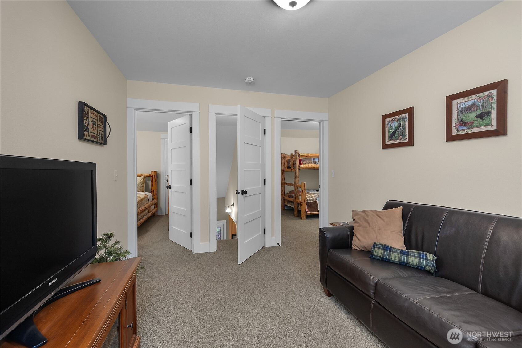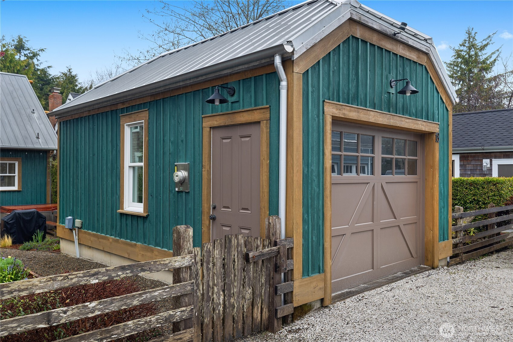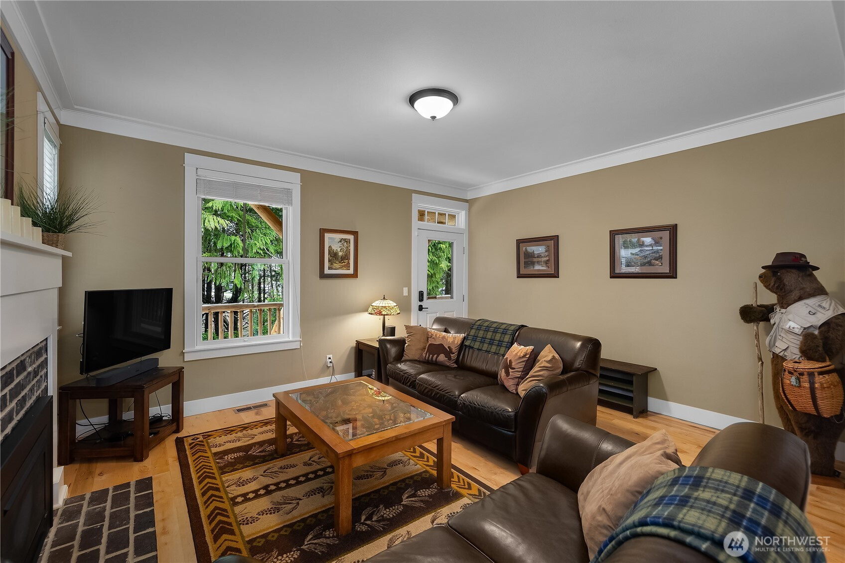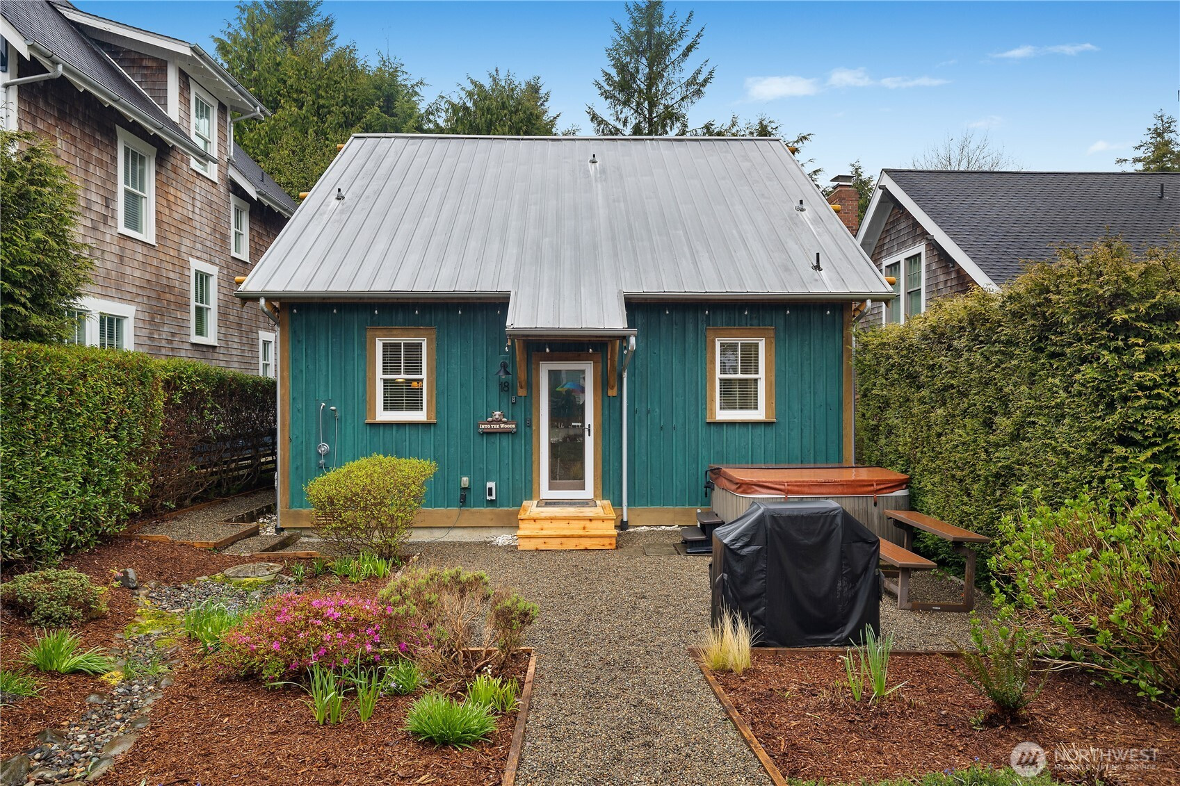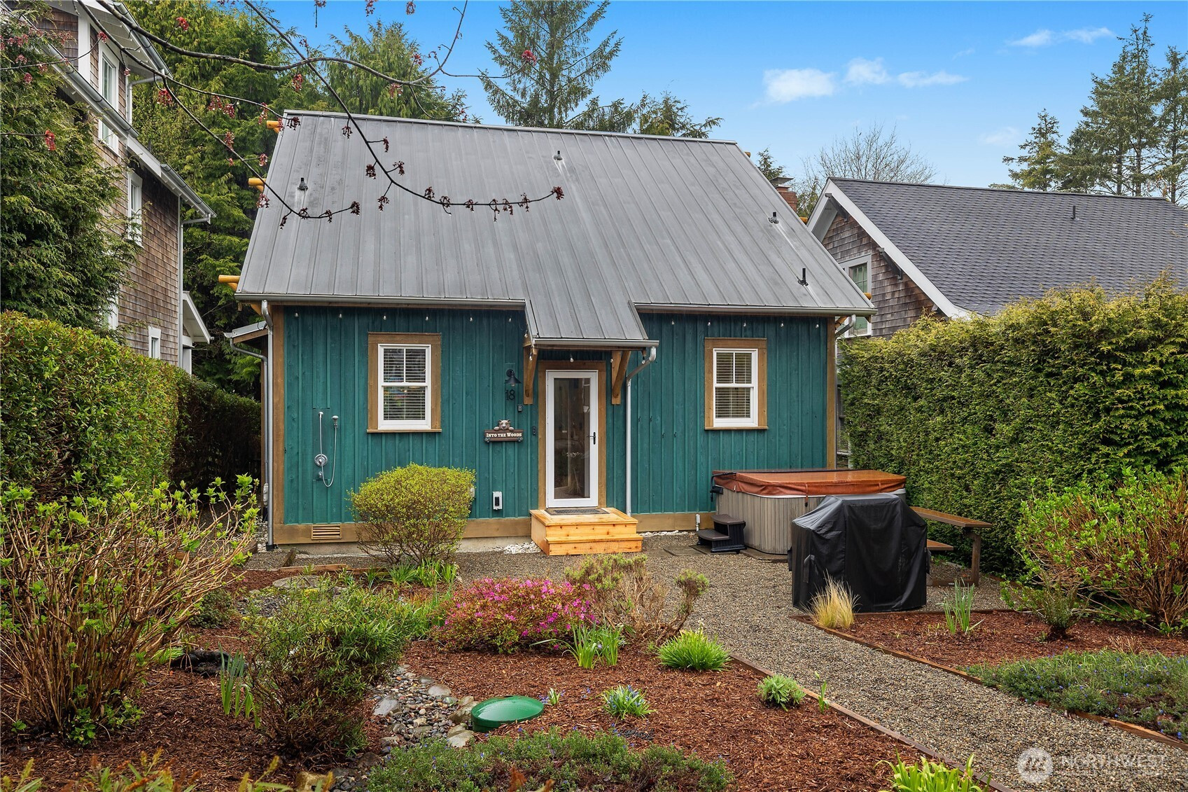 Now is your chance to own Into the Woods, one of the most beloved and iconic homes in all of Seabrook! This stunning property celebrates the best of the Pacific Northwest, offering a cozy and stylish retreat for coastal living throughout the seasons. Into the Woods has an unbeatable location. You're only steps away from Crescent Park and the popular indoor pool. A 2-min. walk gets you to the town center with its boutique shops and eateries. Enjoy residing in the heart of Seabrook while also benefitting from the privacy of living on the Elk Creek Trail. Relax on the impressive log front porch while you enjoy the forested views and chat with passersby. Or take the trail yourself—it leads all the way to the beach in a scenic, 10-min. walk. This well-maintained, and turnkey, one-owner home comes fully furnished and is ready for immediate enjoyment or rental use. Quality features include real maple hardwood floors, a cozy gas fireplace, and beautiful northwest furnishings. The primary bedroom is conveniently located on the main floor. Upstairs features a media room and two additional bedrooms with en-suite full baths. Enjoy the large and fully fenced backyard, filled with seasonal flowers. After a day at the beach, rinse off in the heated outdoor shower and take a soak in your private hot tub. A detached garage provides secure parking and storage, a highly sought-after feature in Seabrook. Into the Woods is your perfect coastal retreat!