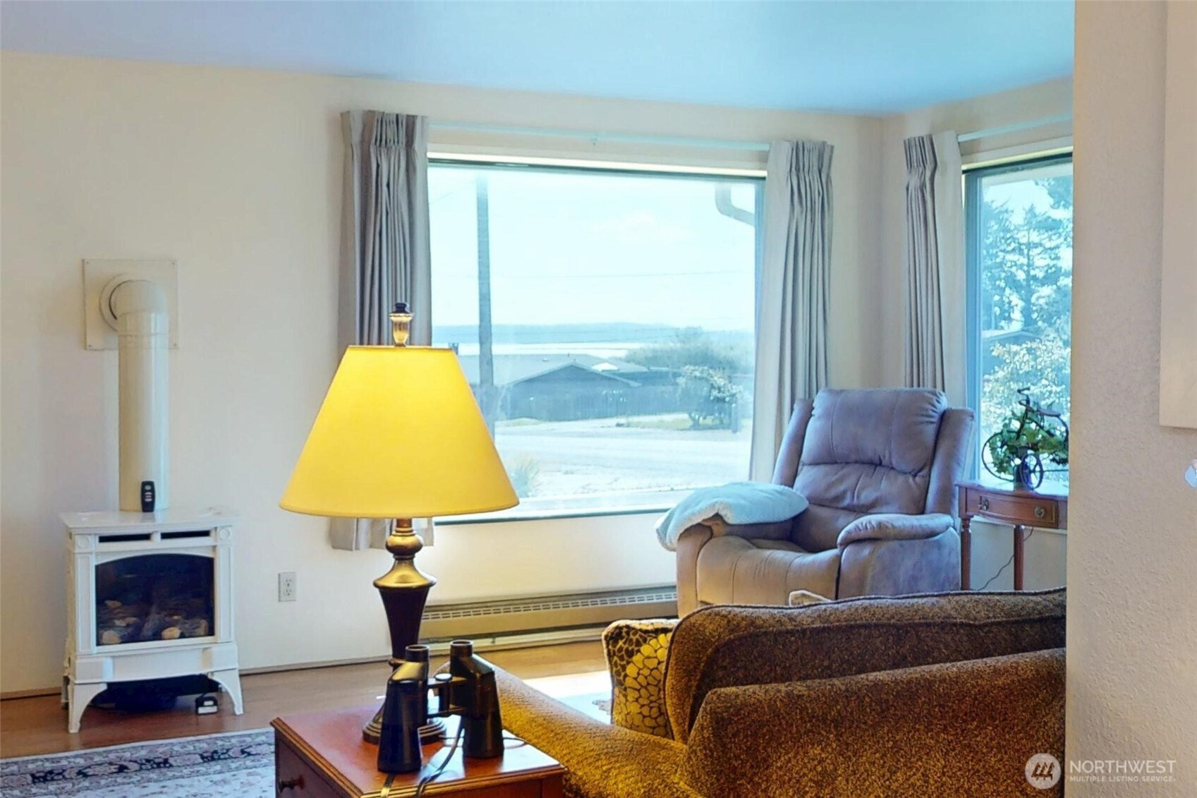 Unobstructed bay views from the living room are a defining feature of this move-in ready Westport home. You have to come see the bay views in person! Located in a quiet residential neighborhood, this home offers coastal views, flexible living space, and practical functionality for everyday life. Minutes from beaches, marina access, and town amenities while still offering privacy. The home is move-in ready with a new hot water heater, new hardwood flooring throughout the upper level, and new carpeting in the bedrooms.The lower level adds flexibility with a bedroom, 3/4 bath, and kitchenette, creating a separate living space ideal for a mother in law suite, guest suite, or extended living. Two attached garages include a heated workshop space with 240V power, plus an external RV hookup. Outdoor features include a large greenhouse and a fully fenced corner lot offering privacy and usable space. The home is offered fully furnished if the buyer chooses, with high quality furnishings for an easy transition. Homes with this combination of view, flexibility, and function in residential Westport neighborhoods are rare.